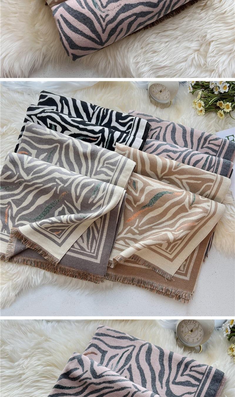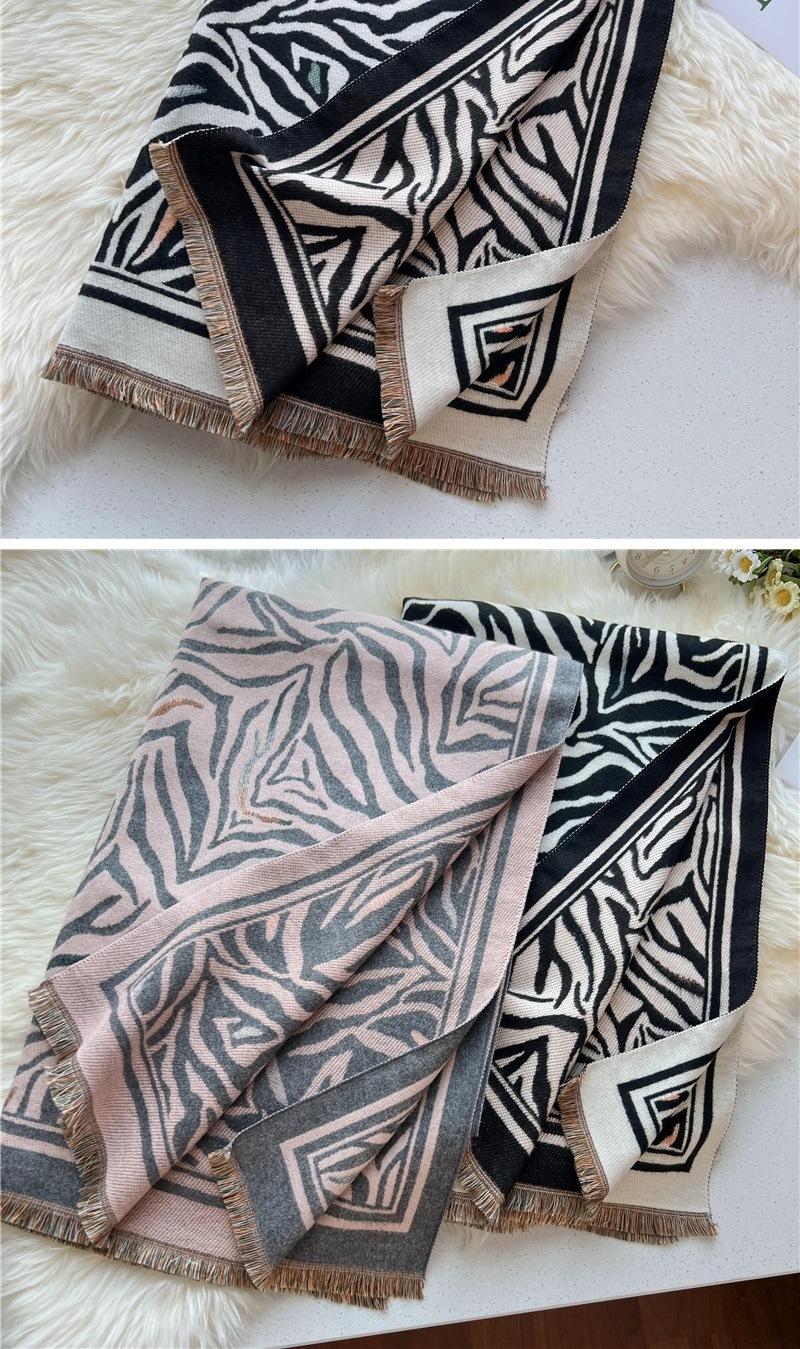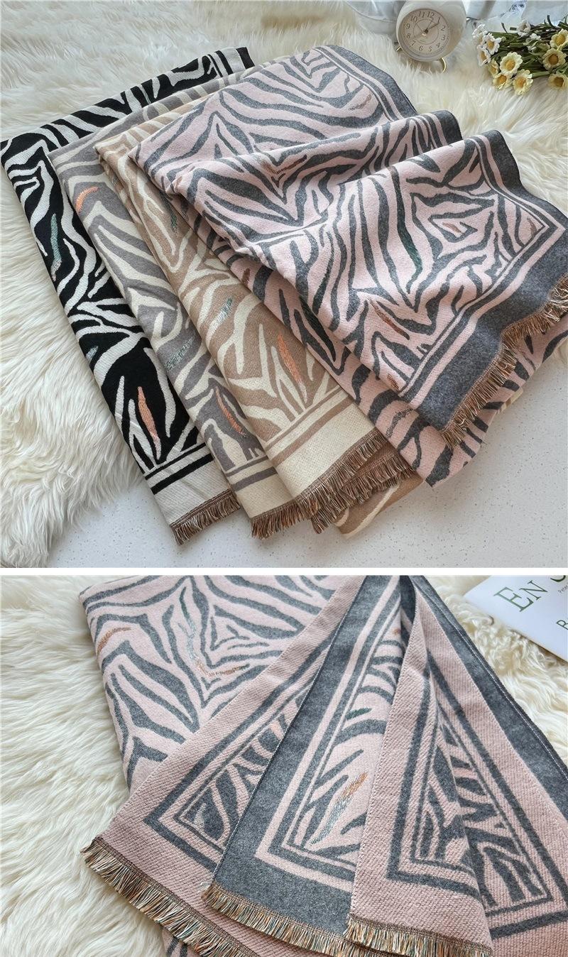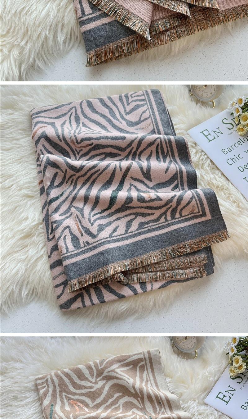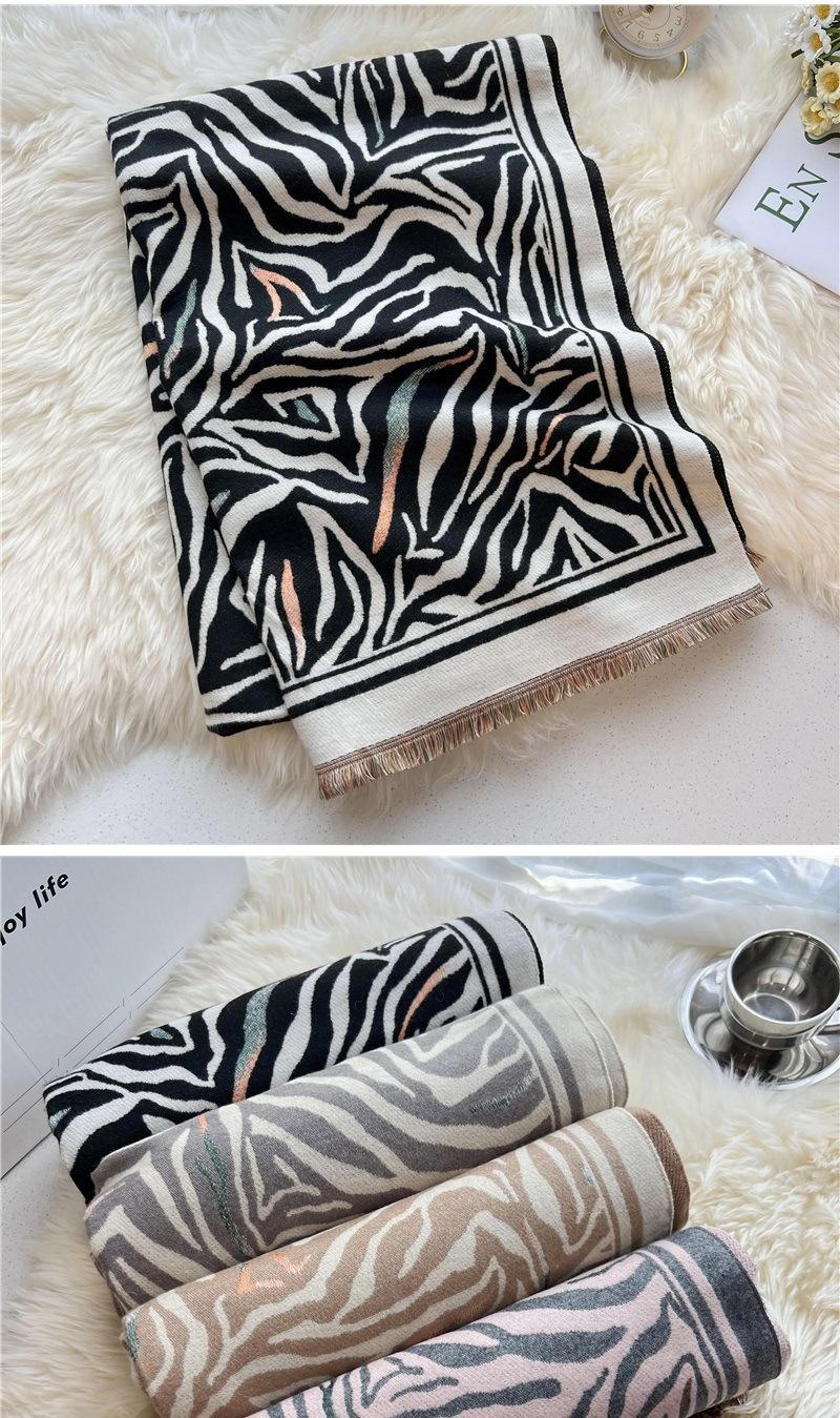 Bufanda de cachemira con estampado de cebra, sencilla y combinable, cálida y de moda para otoño e invierno, de doble cara y gruesa.