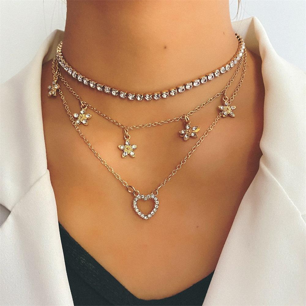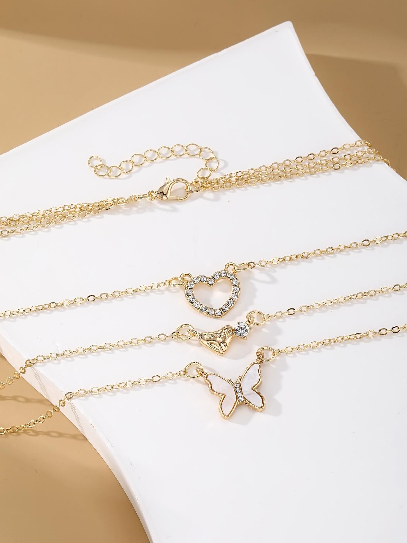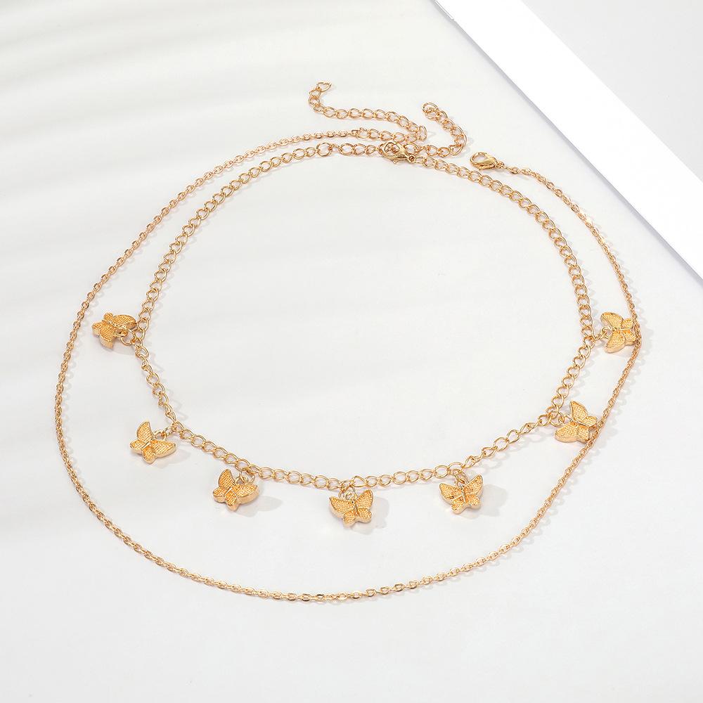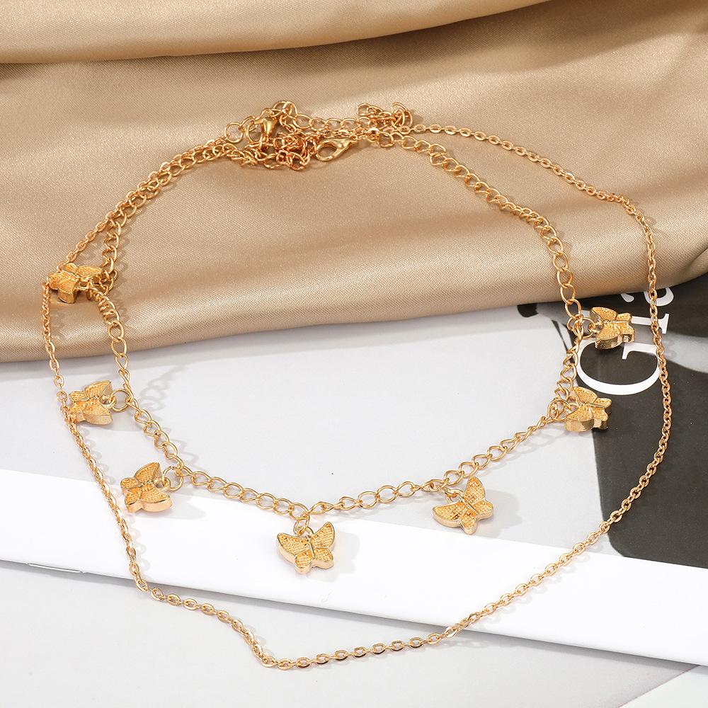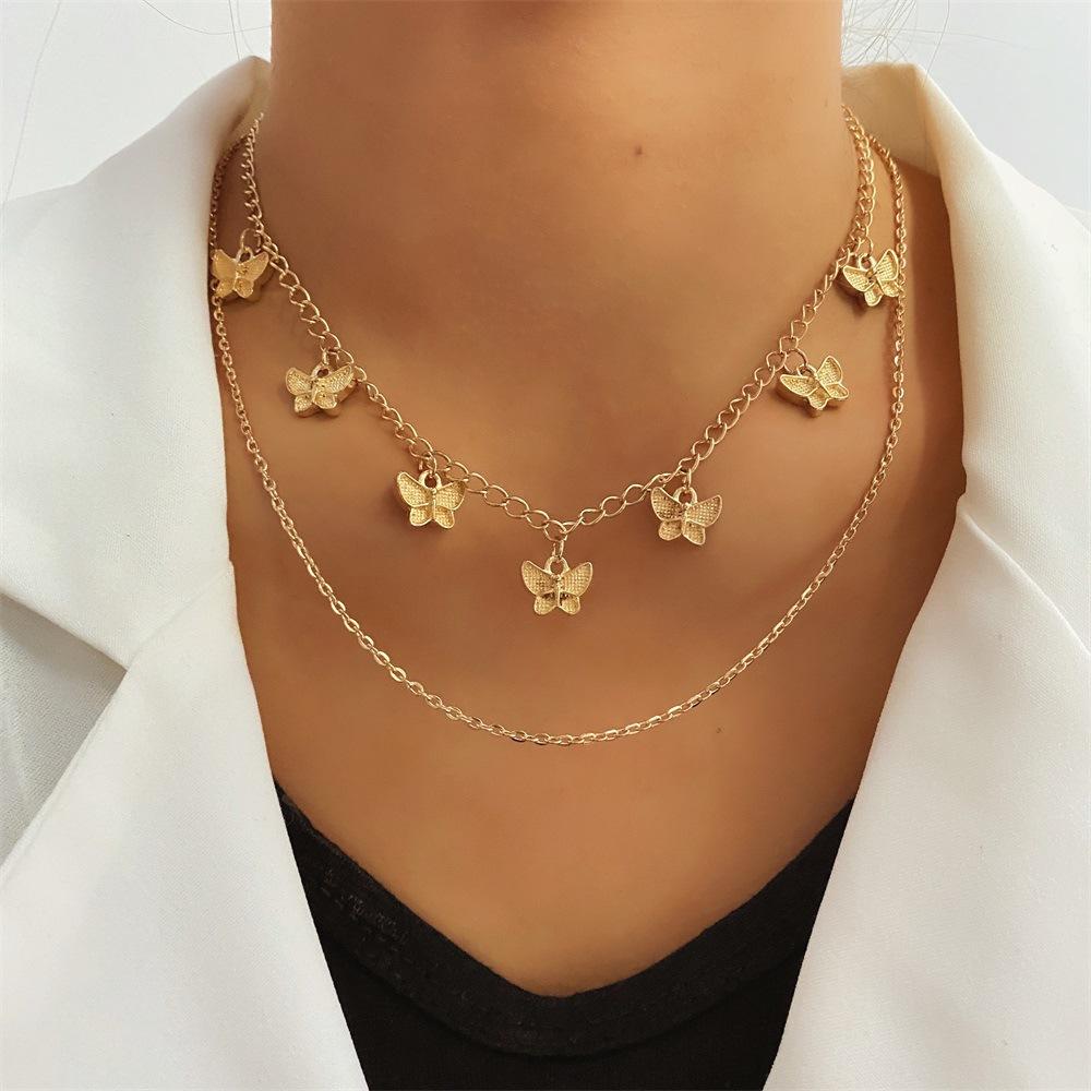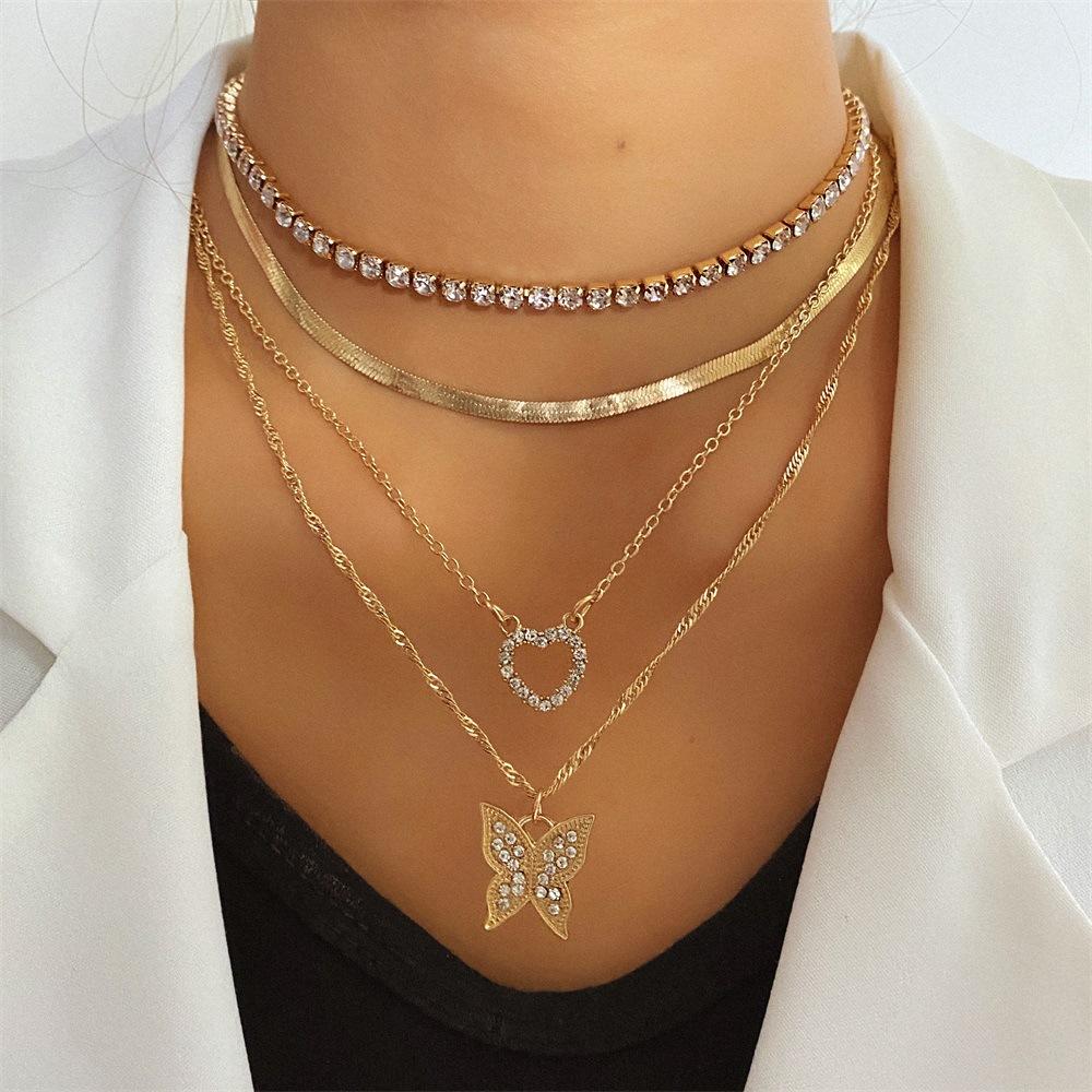 Moda retro europea y americana transfronteriza multicapa diamante oro mariposa amor largo multicapa collar de belleza de hadas joyería borla