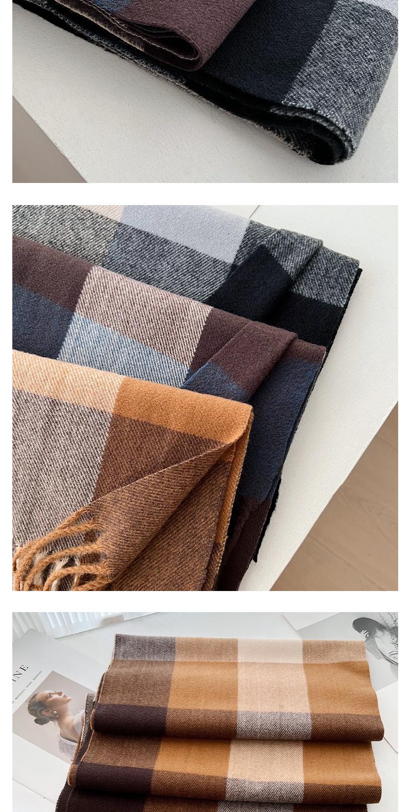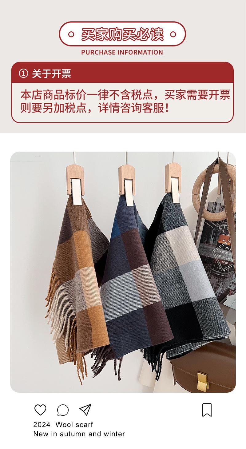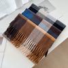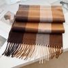 Bufanda Cálida de Invierno Nueva 2025 Color Maillard Bufanda a Cuadros Cachemira Imitación para Mujer Bufanda Gruesa con Flecos