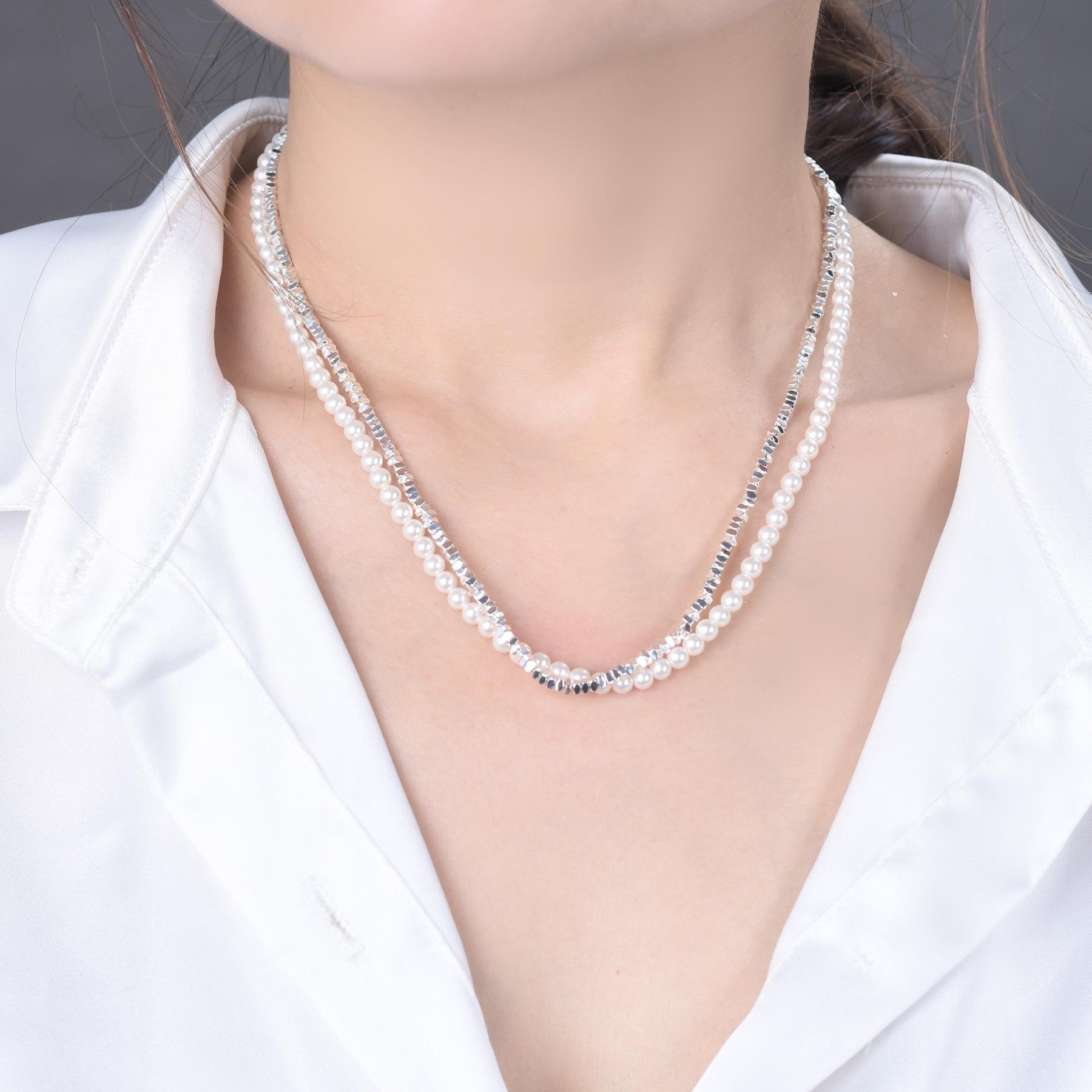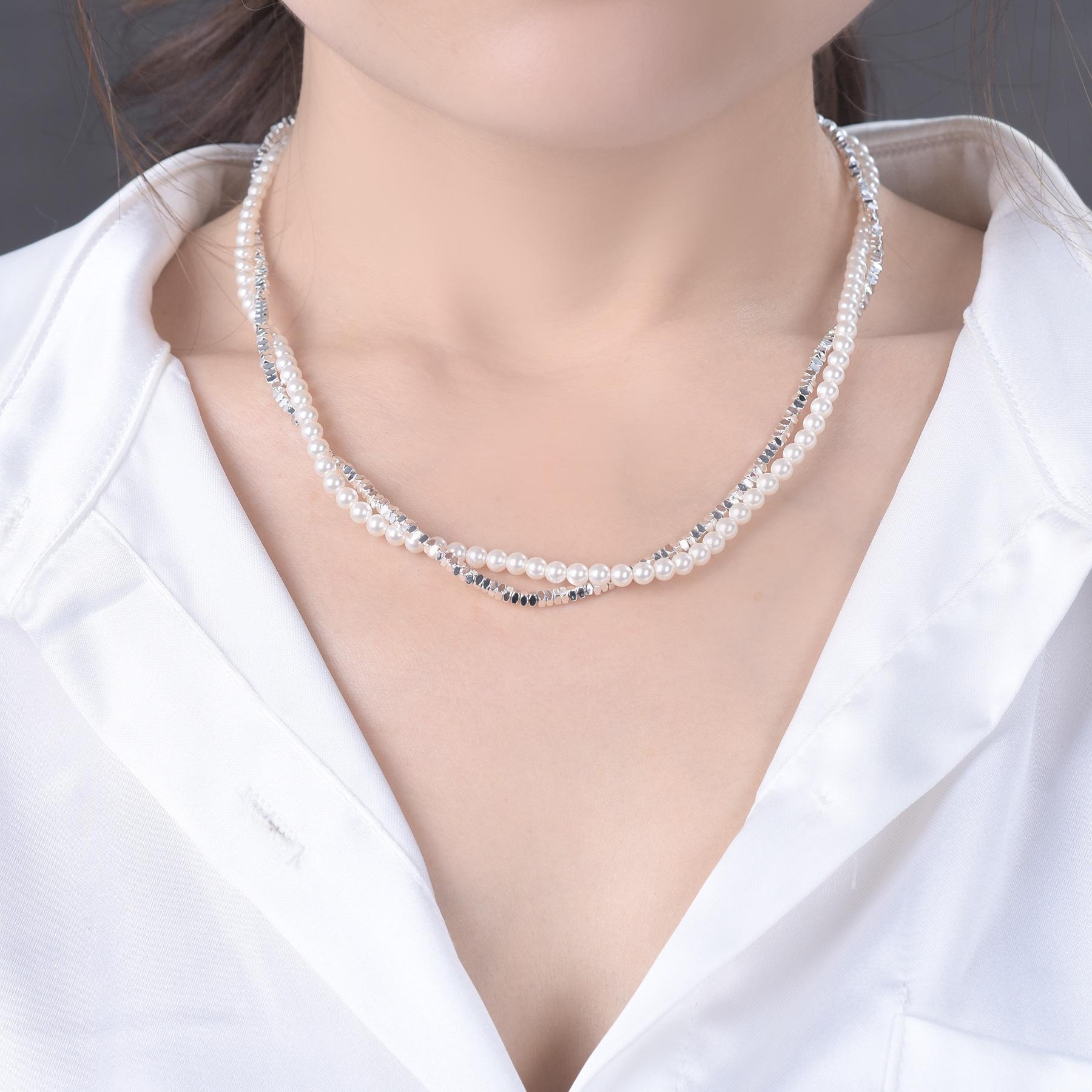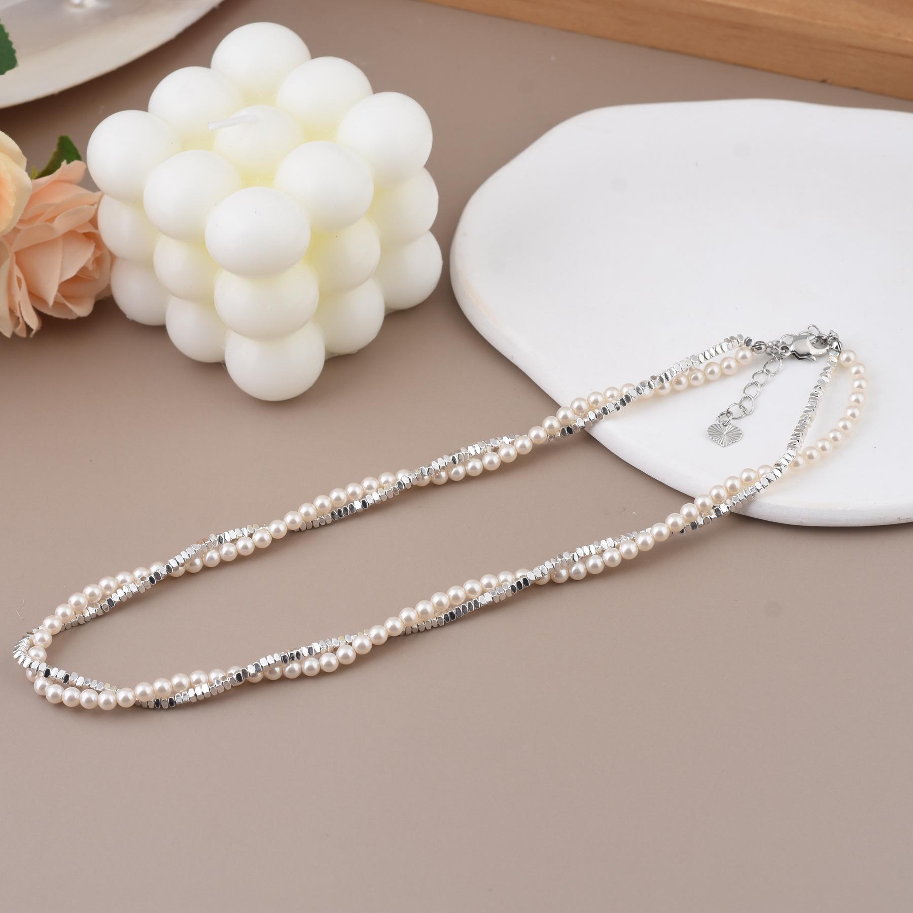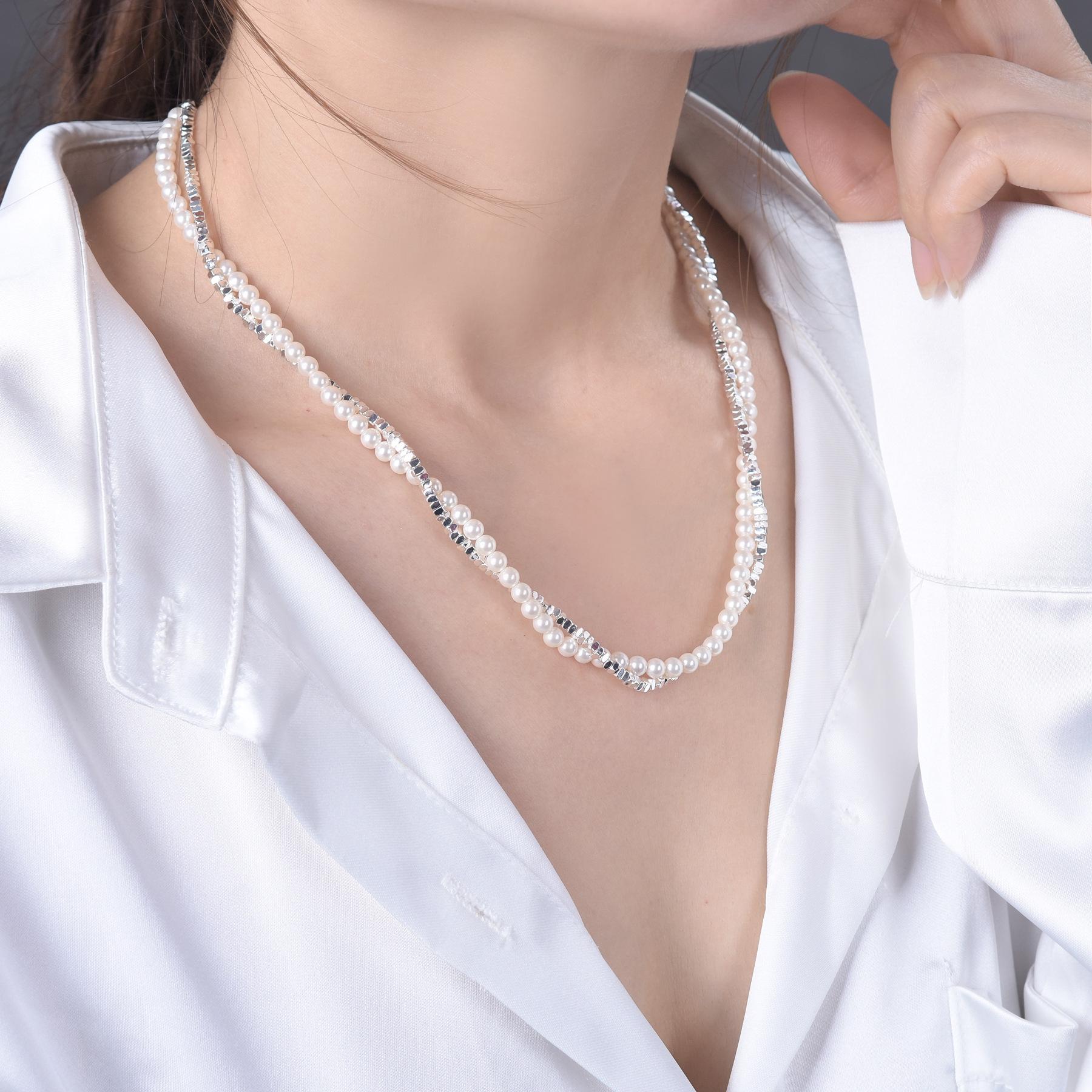 Collar de Perla Plateada Rota Envuelto de Doble Capa para Mujer, Primavera y Otoño, Nicho de Gama Alta Lujoso Ligero Gargantilla Cadena para Suéter Accesorio