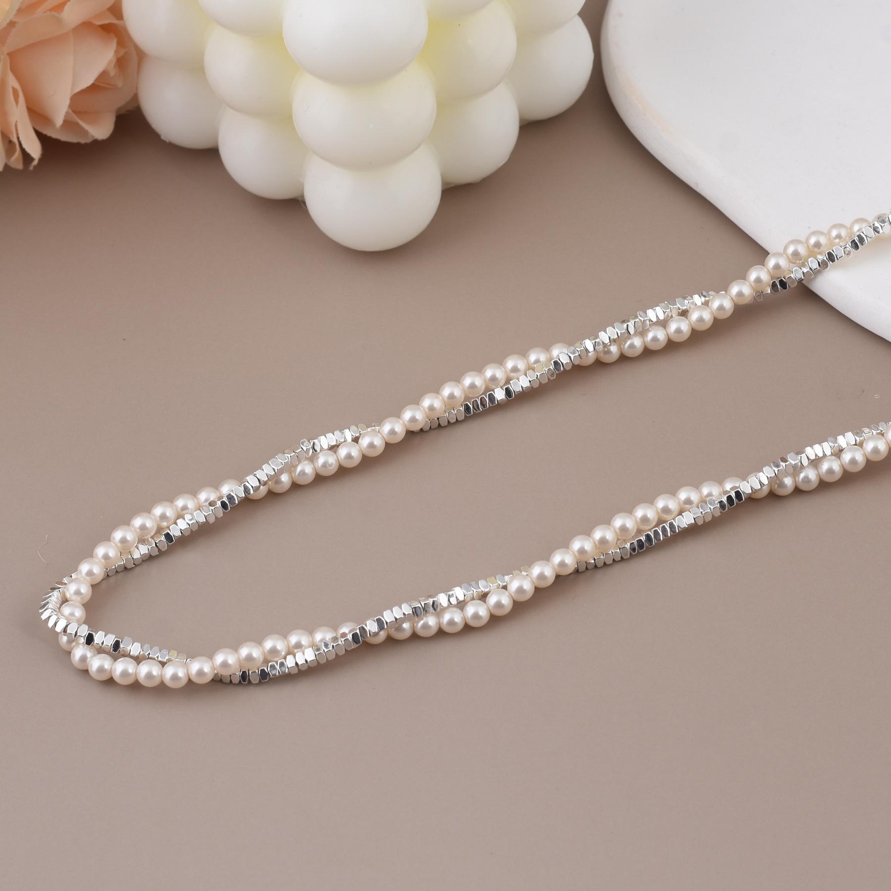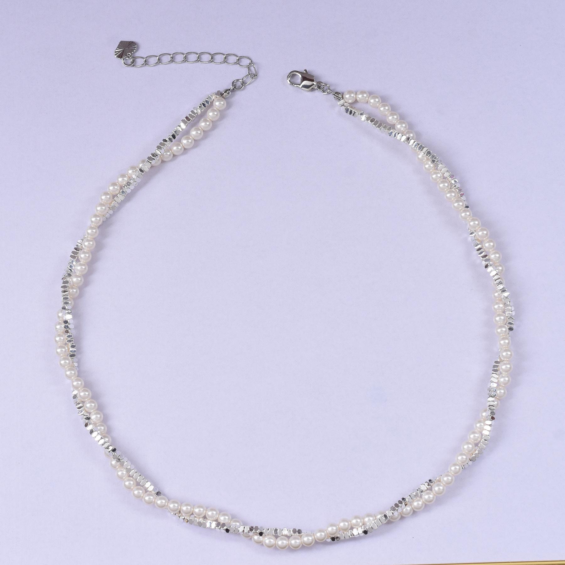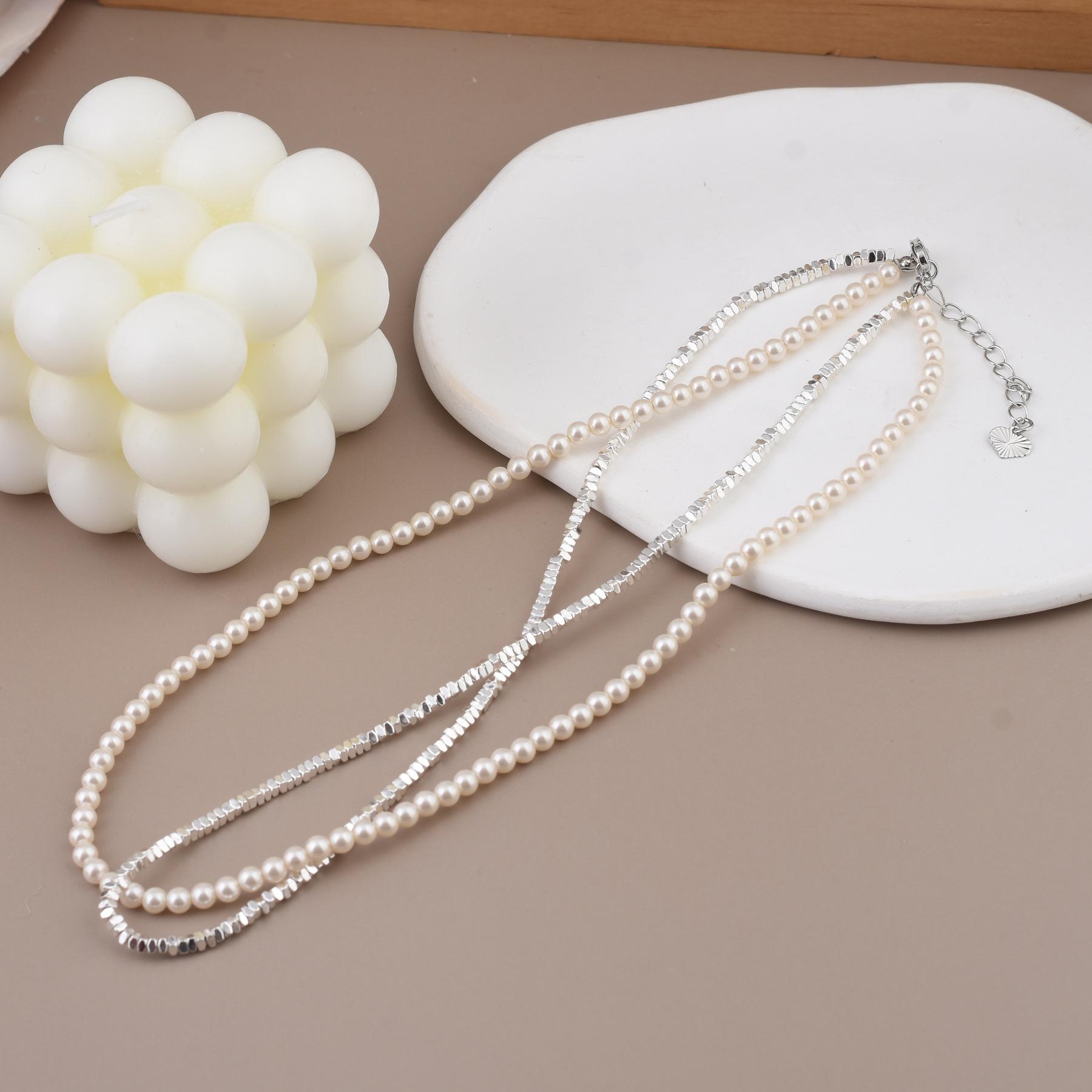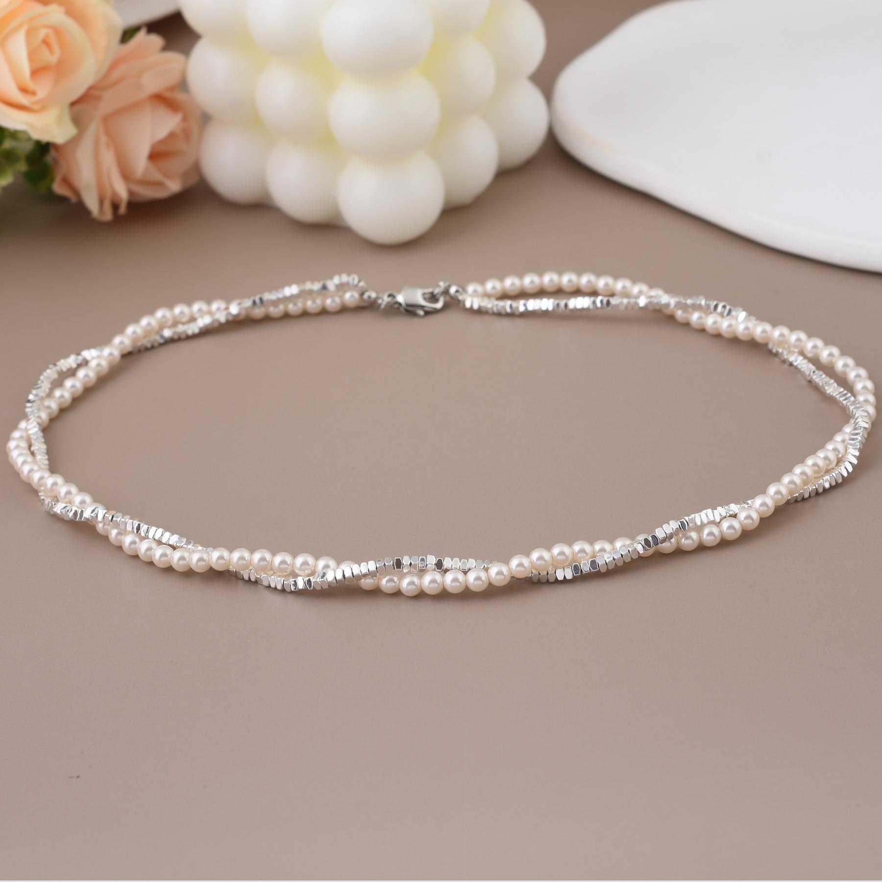 Collar de Perla Plateada Rota Envuelto de Doble Capa para Mujer, Primavera y Otoño, Nicho de Gama Alta Lujoso Ligero Gargantilla Cadena para Suéter Accesorio
