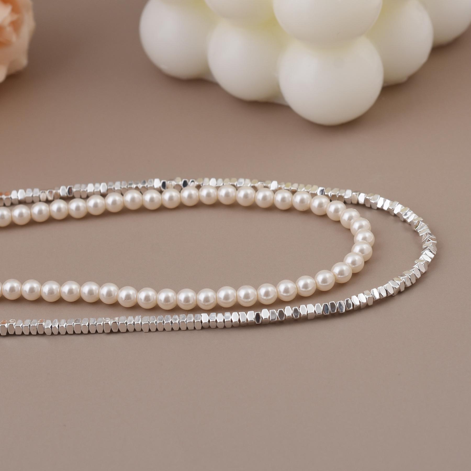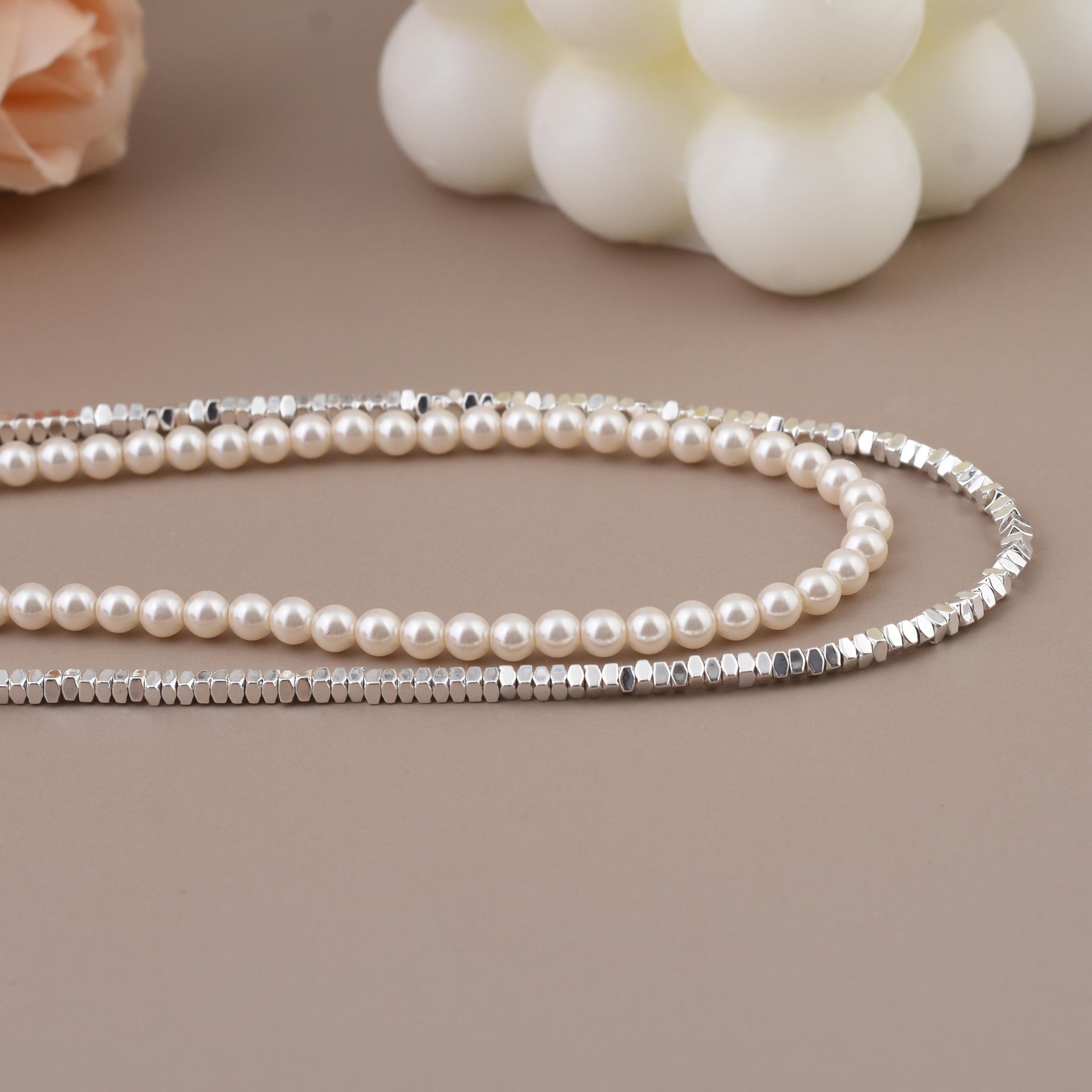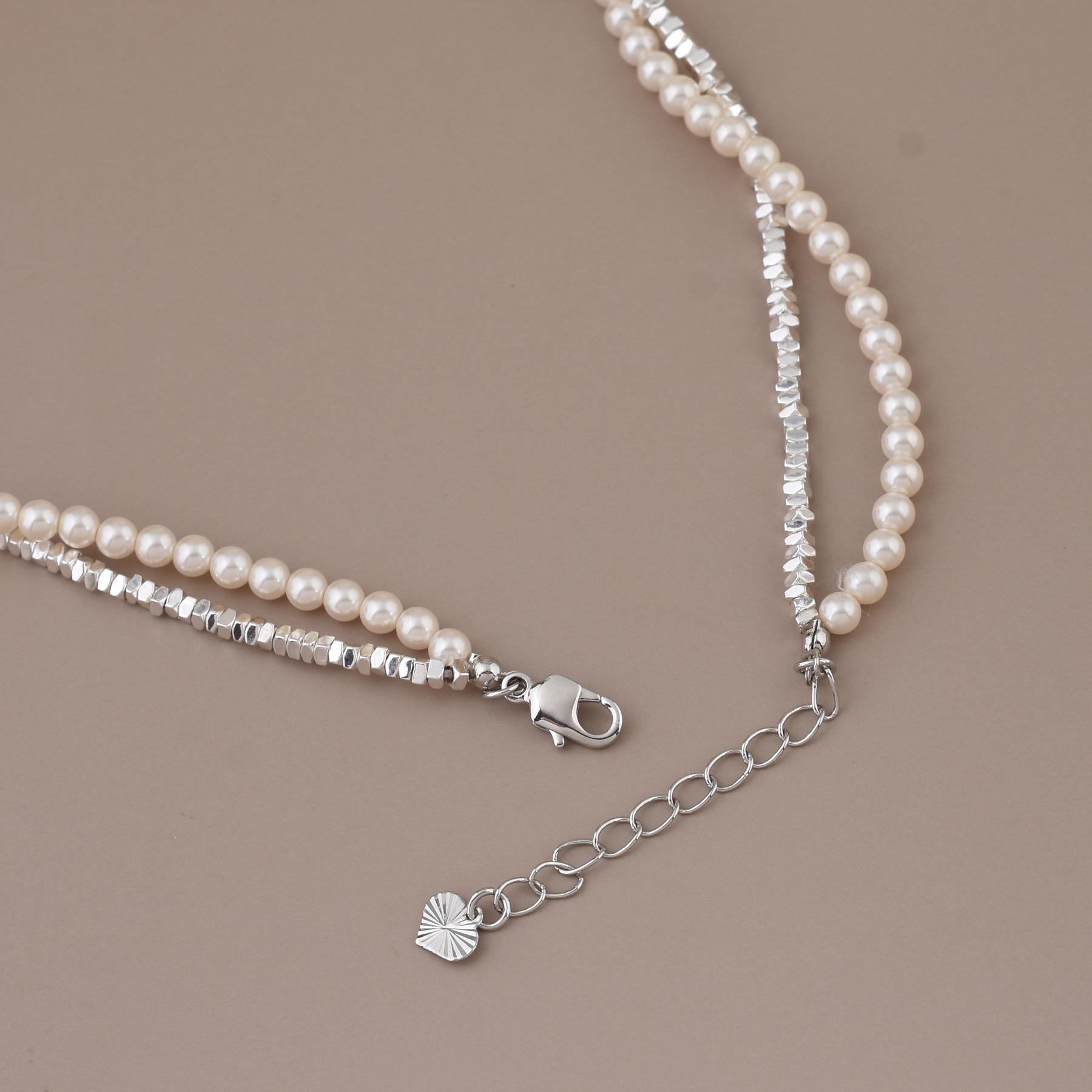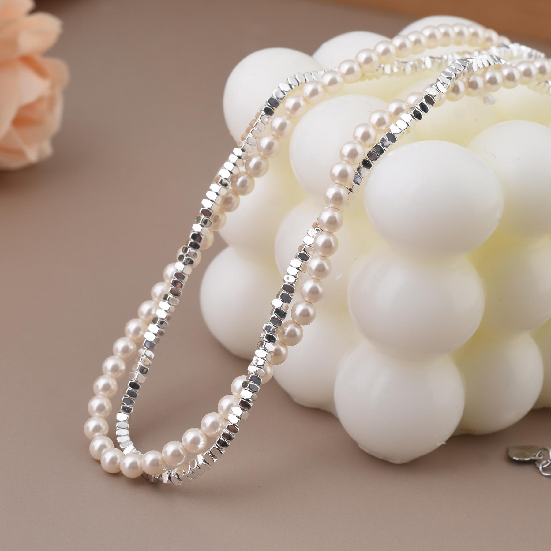 Collar de Perla Plateada Rota Envuelto de Doble Capa para Mujer, Primavera y Otoño, Nicho de Gama Alta Lujoso Ligero Gargantilla Cadena para Suéter Accesorio