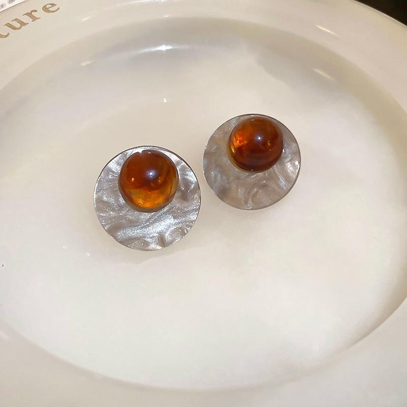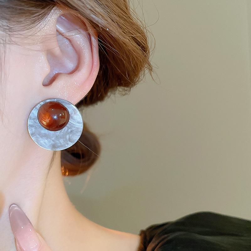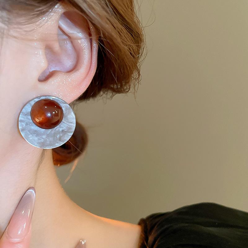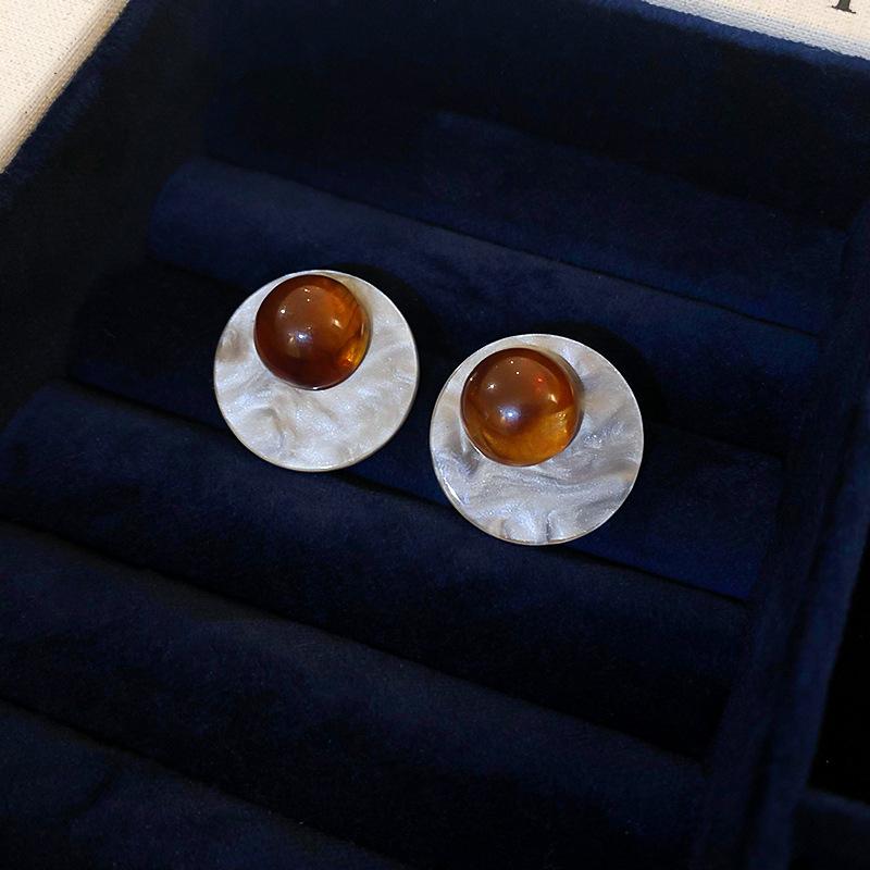 Pendientes de resina con forma de huevo vertido redondo de color contrastante vintage, de plata, sencillos y elegantes, con diseño geométrico de alta gama para mujer.