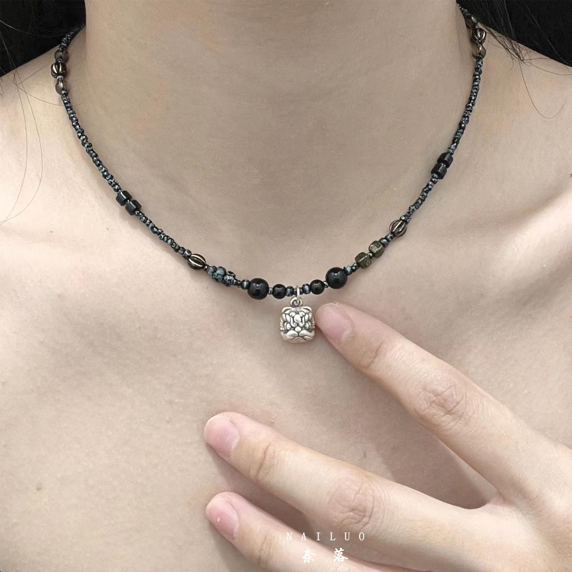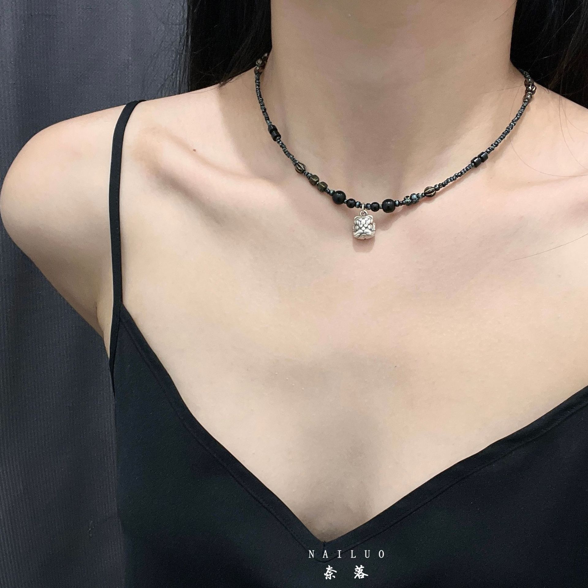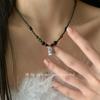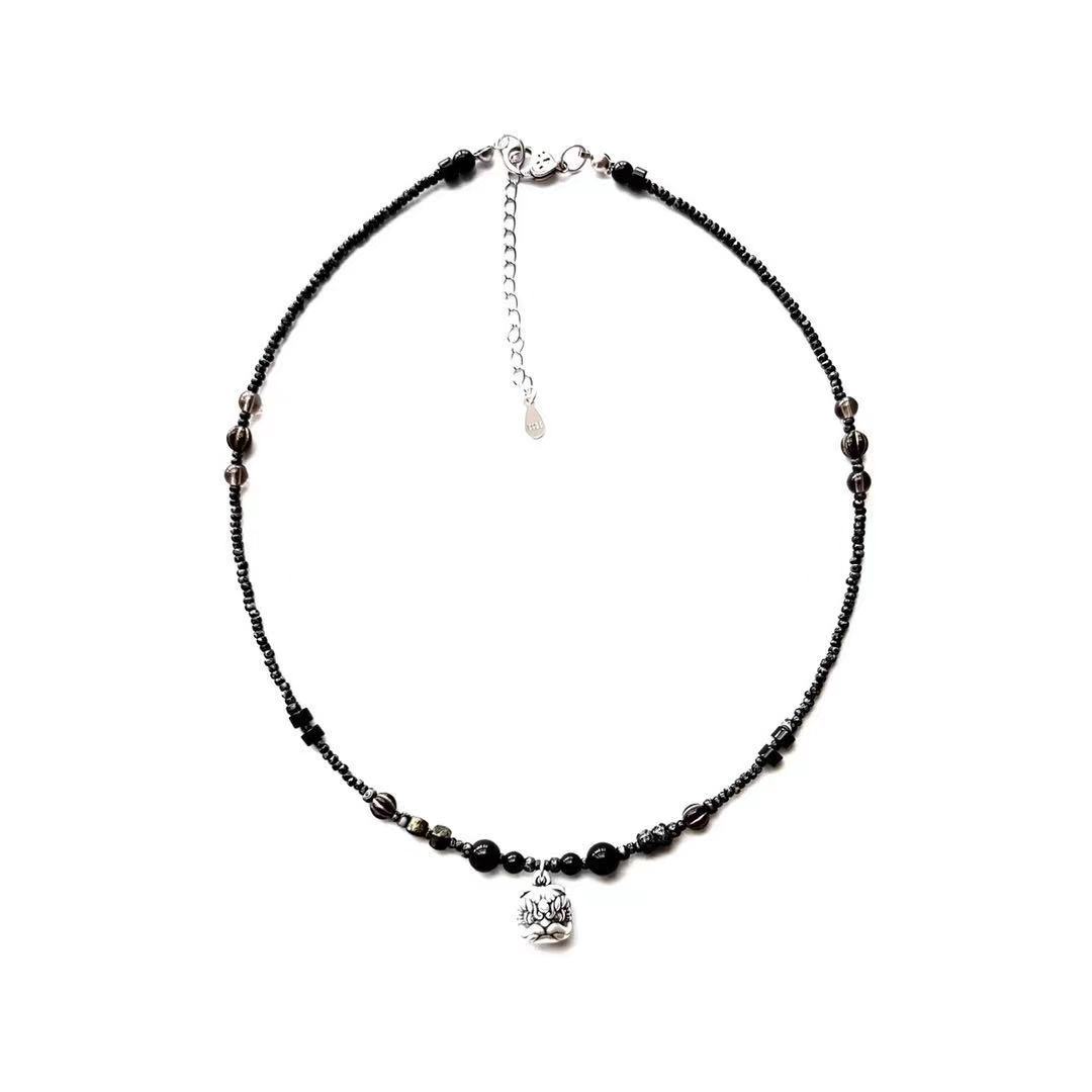 | Collar de cuentas de arroz integral de piedra natural con etiqueta de girasol de metal retro con cadena de clavícula de estilo étnico coreano |