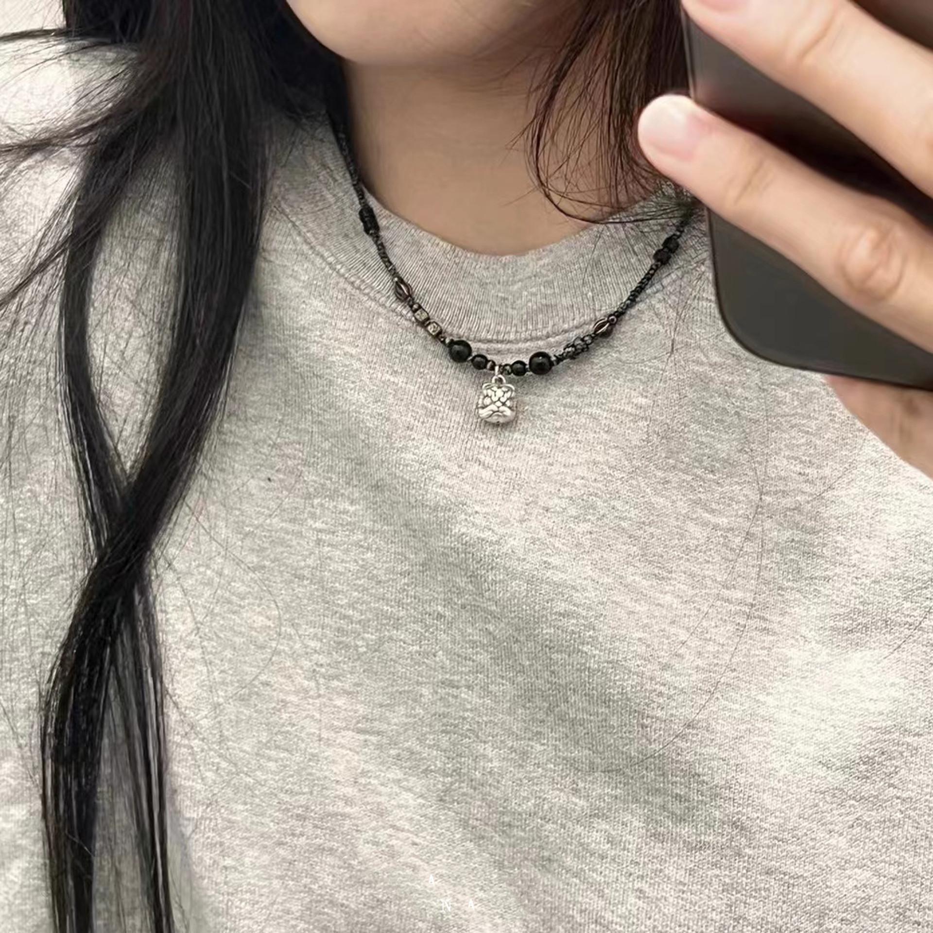 | Collar de doble capa con diseño de galaxia humana, nicho de alta gama, 2023, nuevo y popular collar de clavícula con perla de plata rota. |