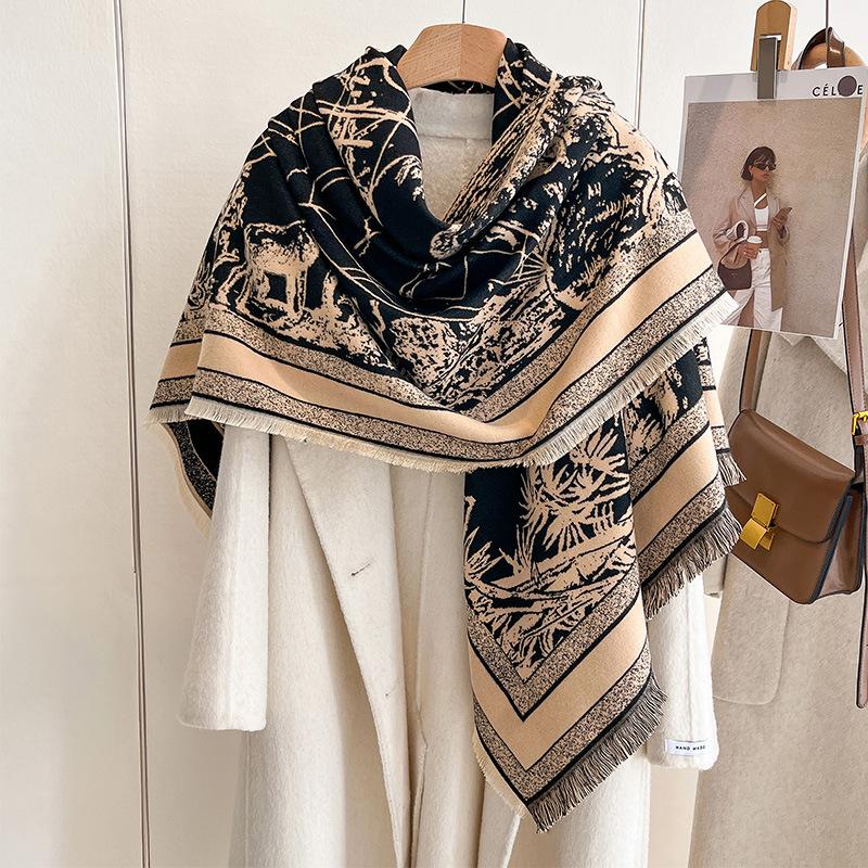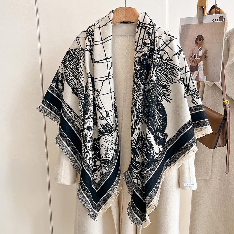 Bufanda cuadrada grande de moda de estilo coreano 2024, de doble cara, de cachemira, gruesa y cálida, para viaje, tipo poncho, para mujer
