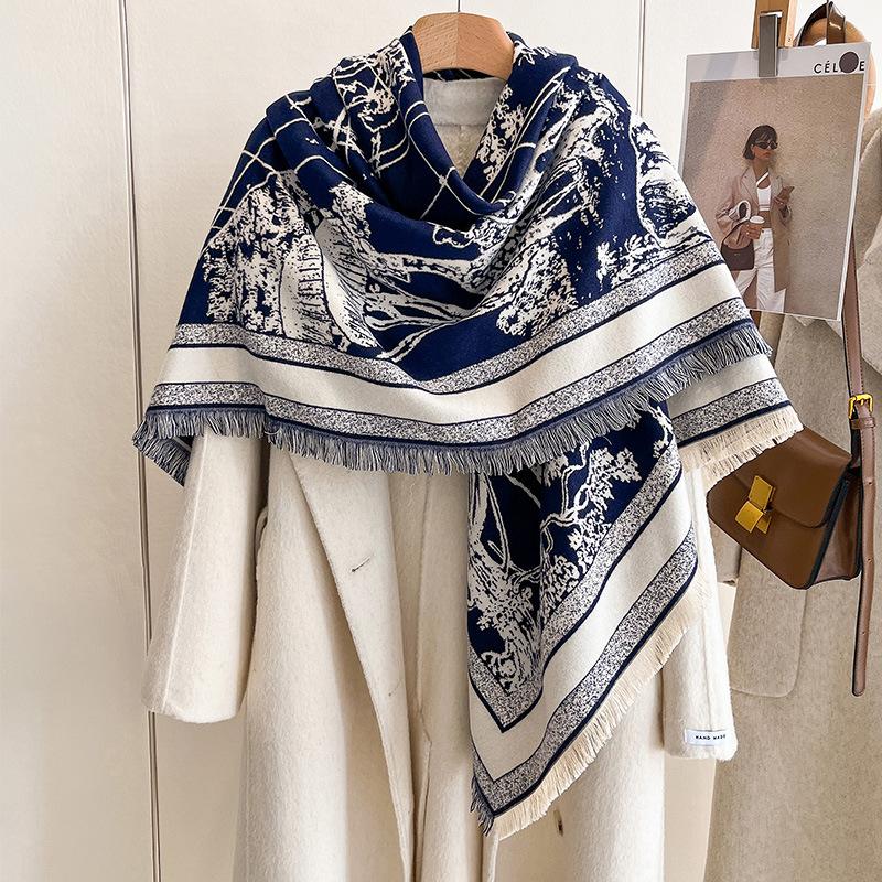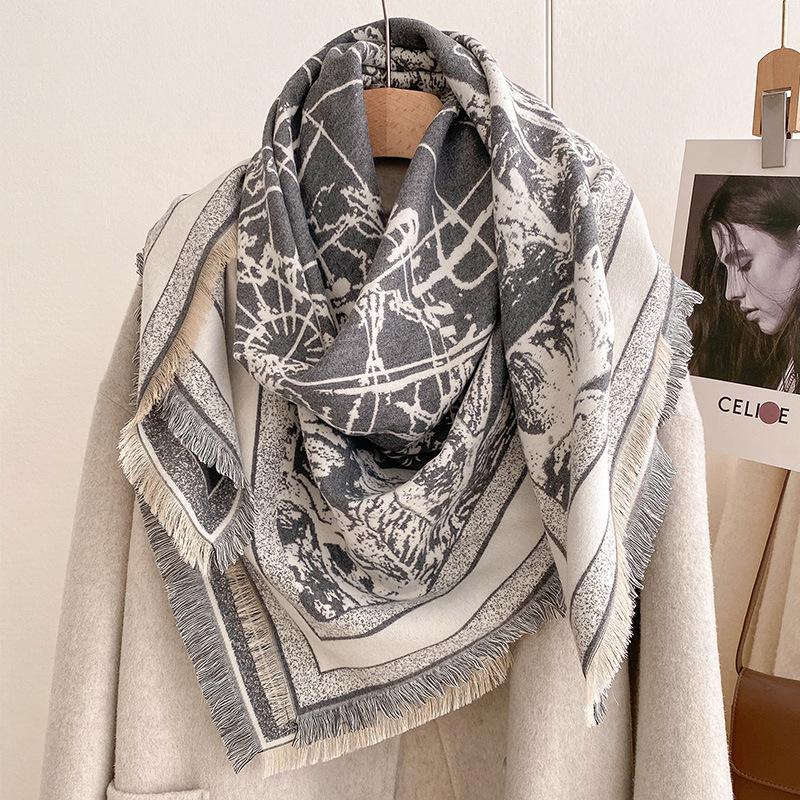 Compra Bufanda cuadrada grande de moda de estilo coreano 2024, de doble cara, de cachemira, gruesa y cálida, para viaje, tipo poncho, para mujer al por mayor en Joom.pro