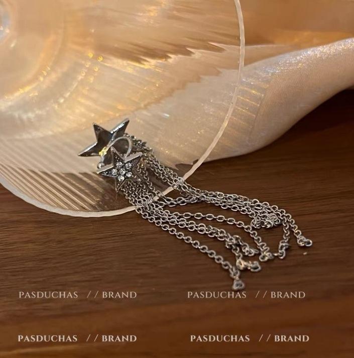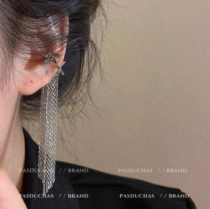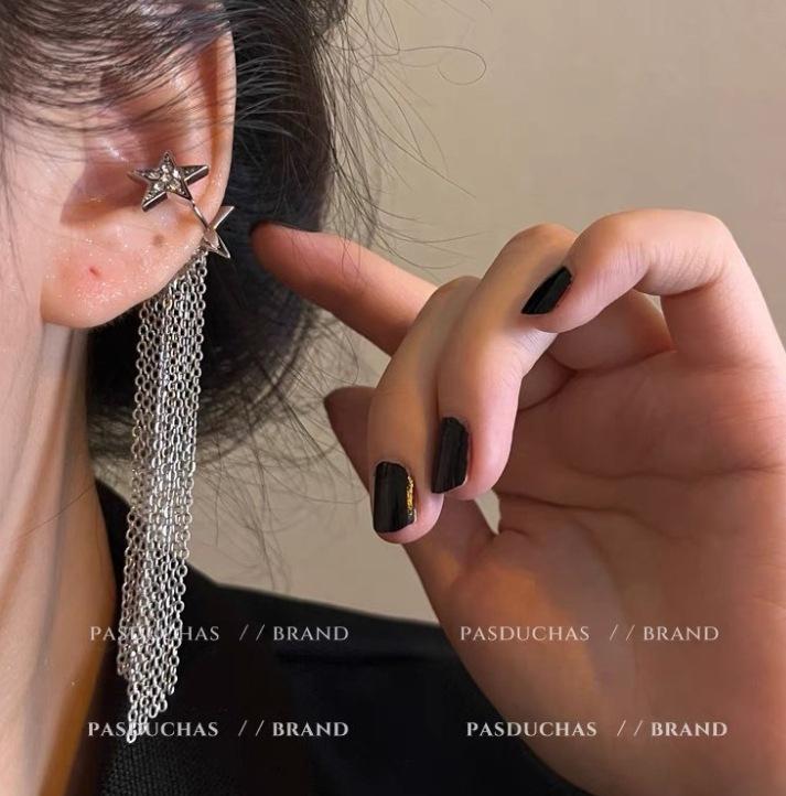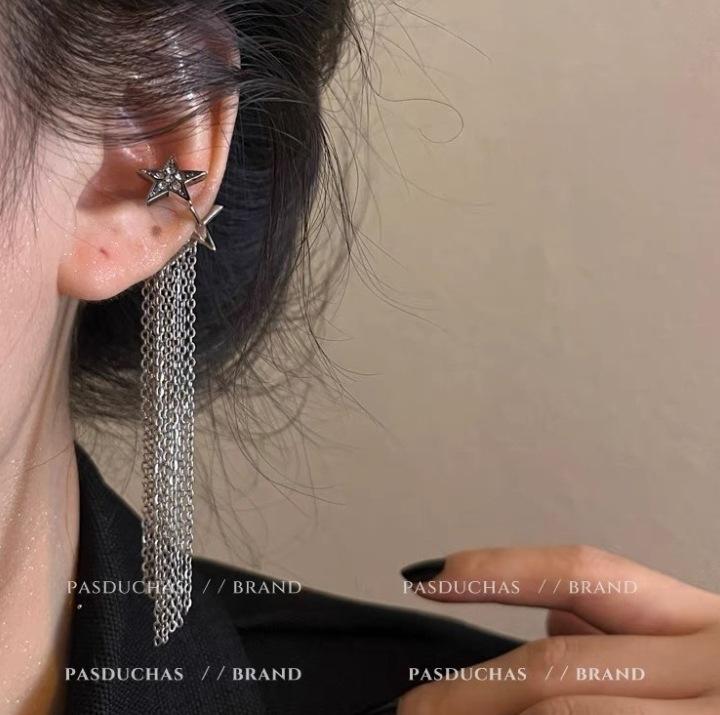Moda exquisito clip para la oreja de estrella con borla sin agujero para la oreja para mujer, nuevo diseño con temperamento, lujo ligero de alta gama