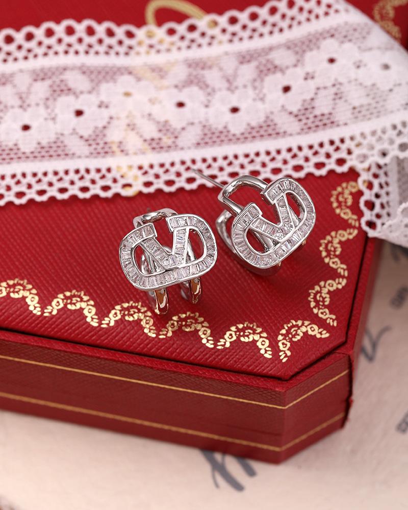 Pendientes de circonita con forma de V, nuevos y elegantes pendientes para mujer, de alta gama, ligeros y exagerados, joyas de lujo para celebridades de Internet.