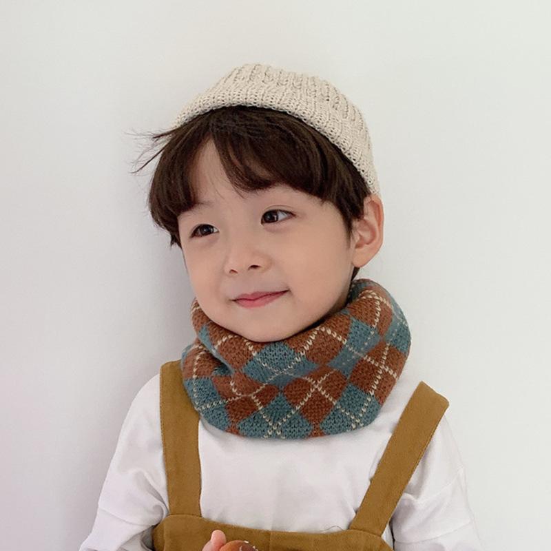Bufanda para niños, otoño e invierno, estilo coreano, estilo británico, a cuadros, de punto, para niños y niñas, conjunto de cuello de lana, bufanda para bebé