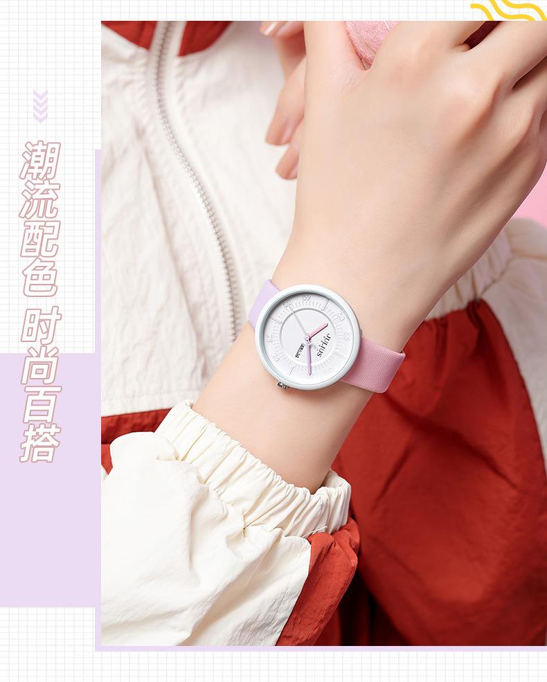Relojes Poly tienda insignia oficial para mujer color macarrón redondo cuarzo resistente al agua reloj de mujer 1492
