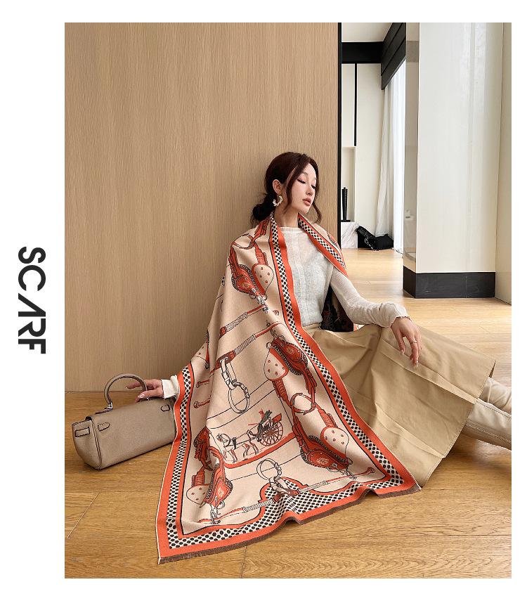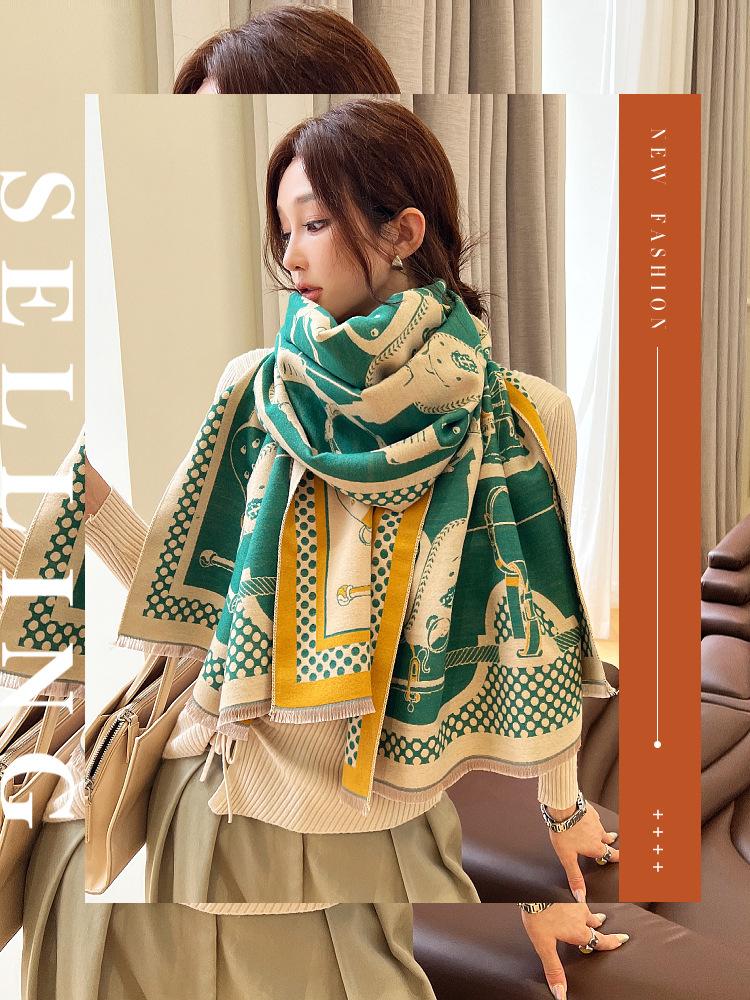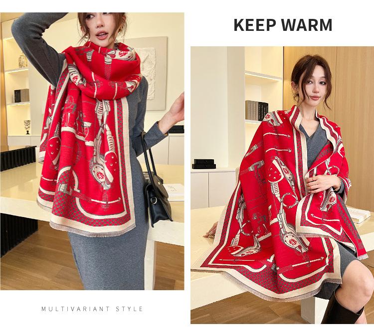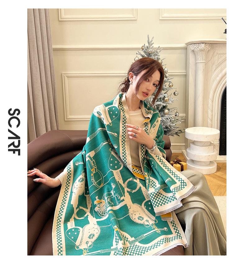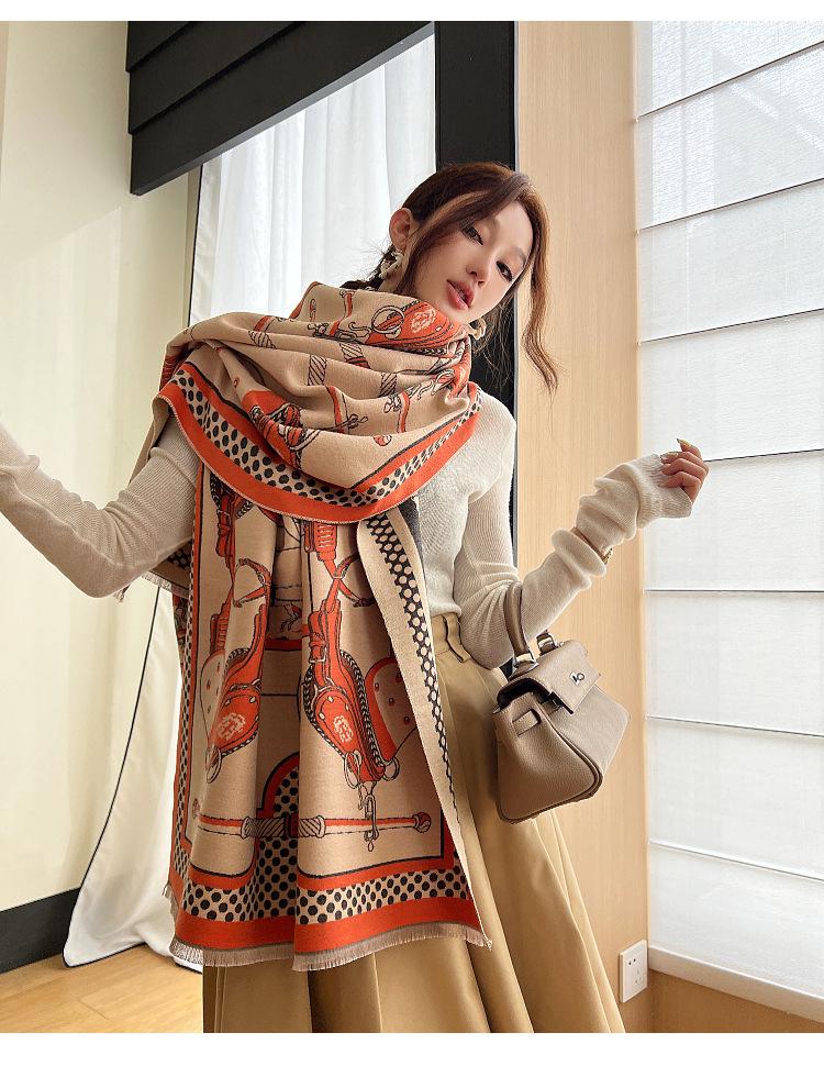 Bufanda de cachemira ligera de lujo de invierno de estilo coreano para mujer, nueva bufanda de jacquard de doble cara, chal moderno con forro polar cálido y combinable.