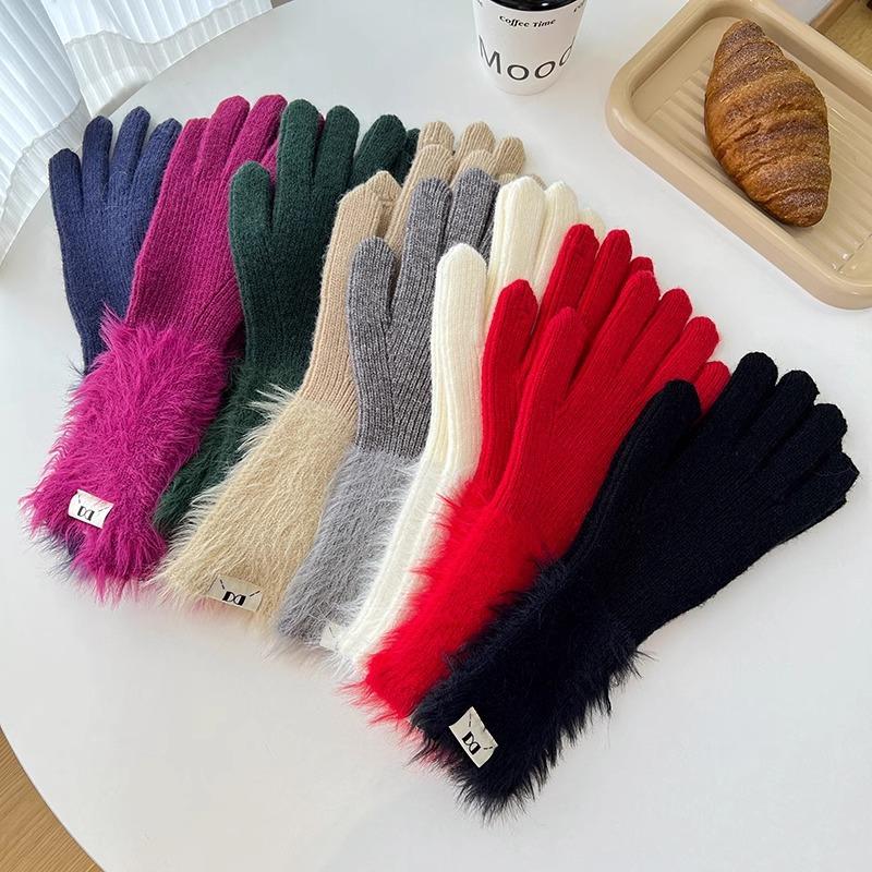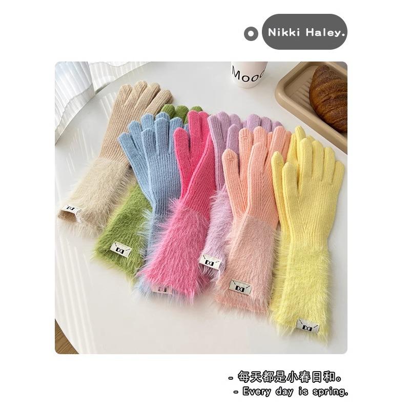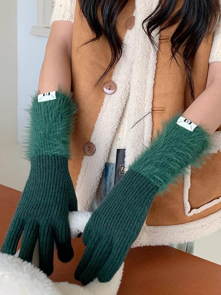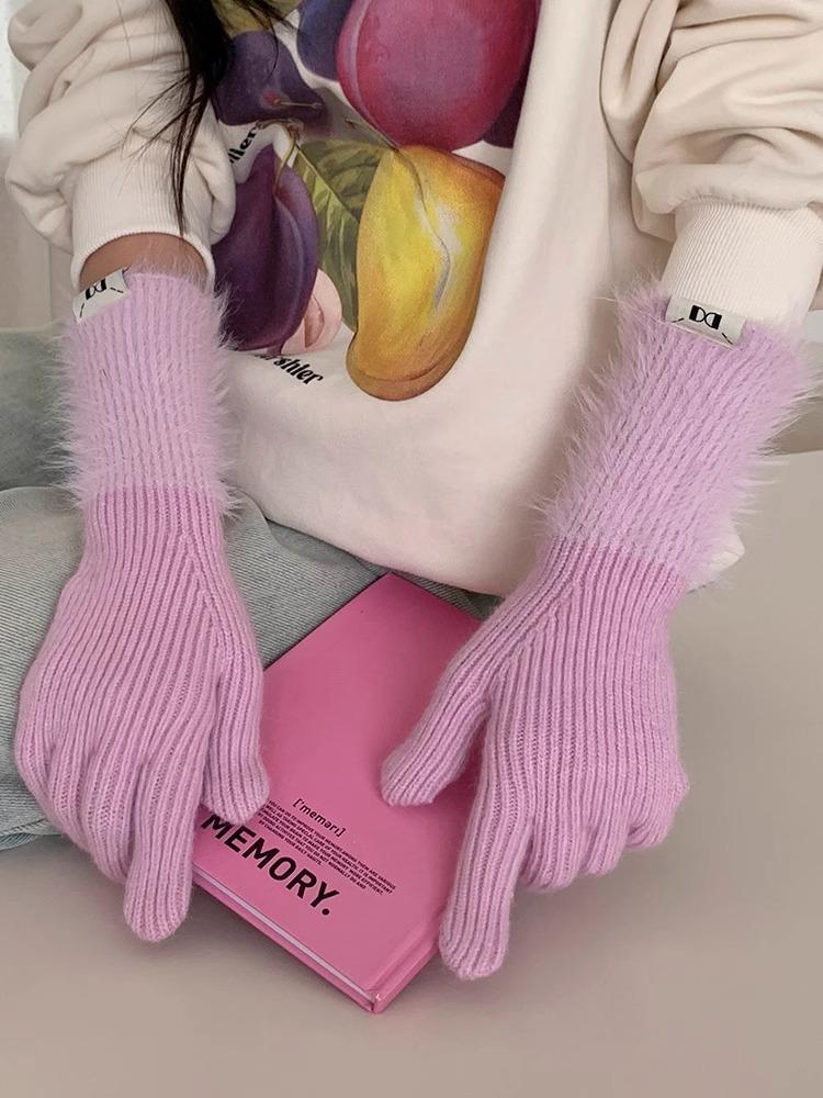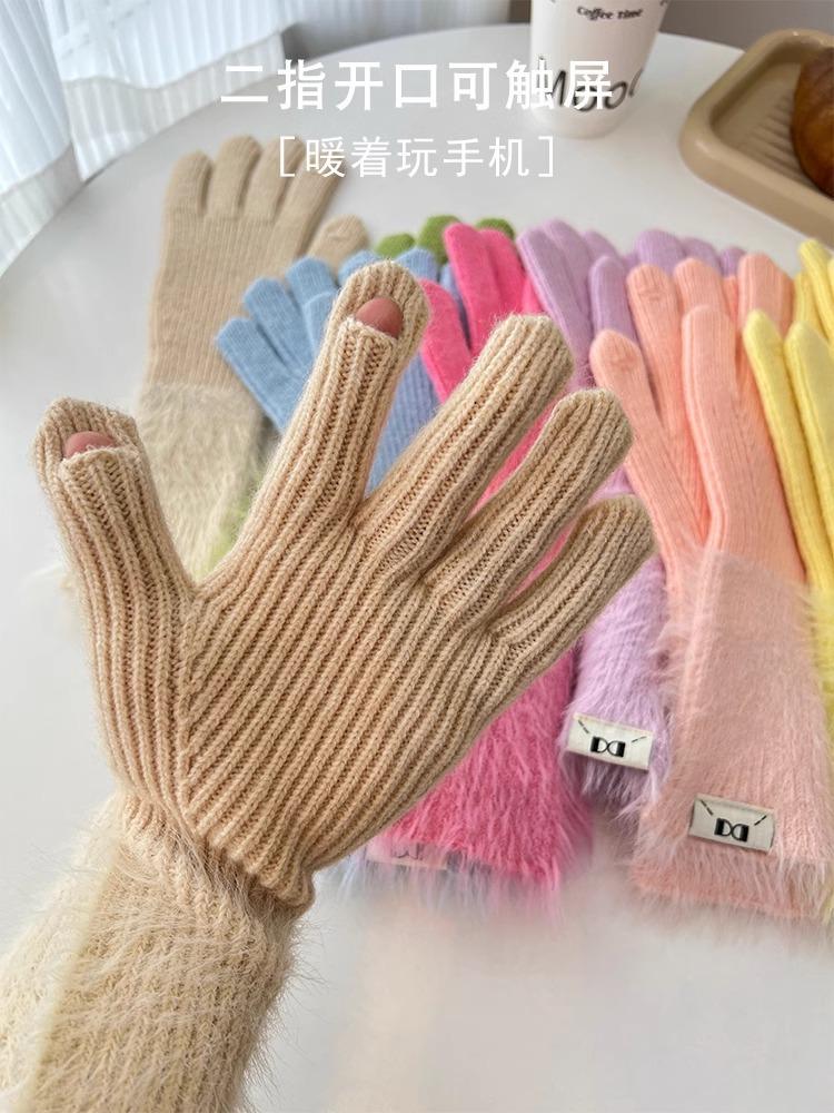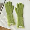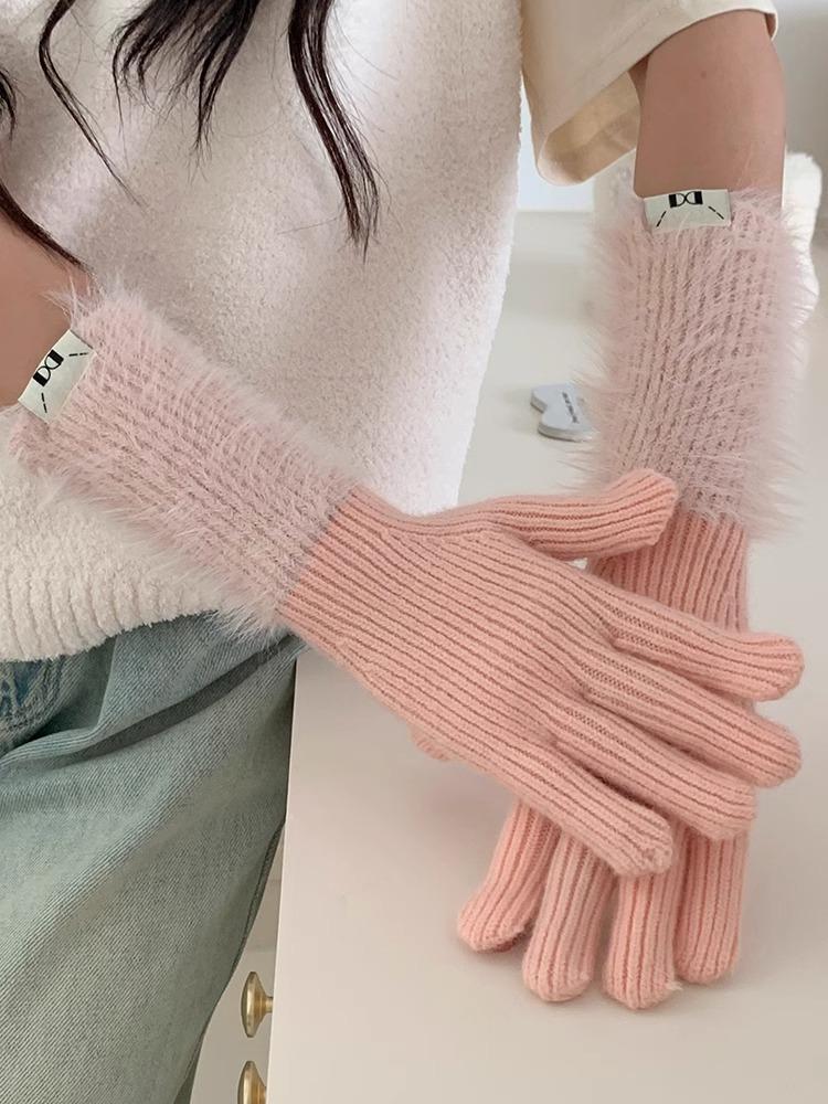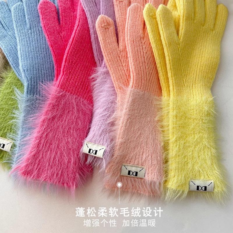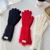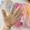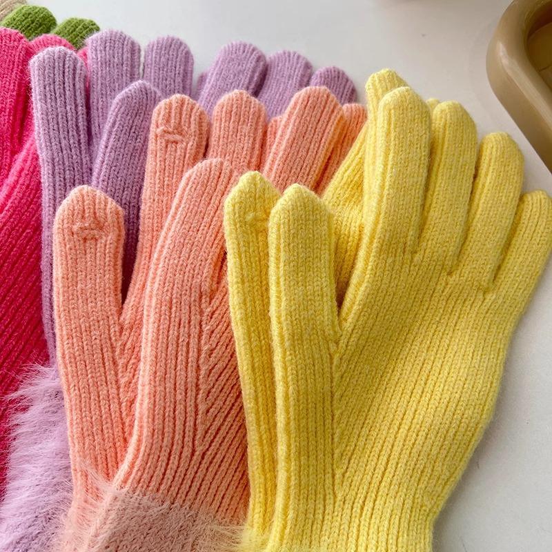 Guantes de cinco dedos cálidos de color sólido Dopamine de otoño e invierno, de punto a juego, bonitos guantes de ciclismo de manga larga para mujer.