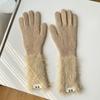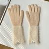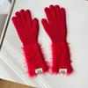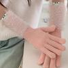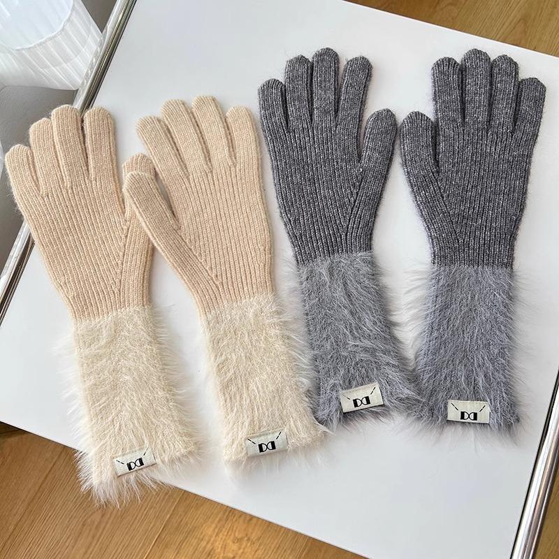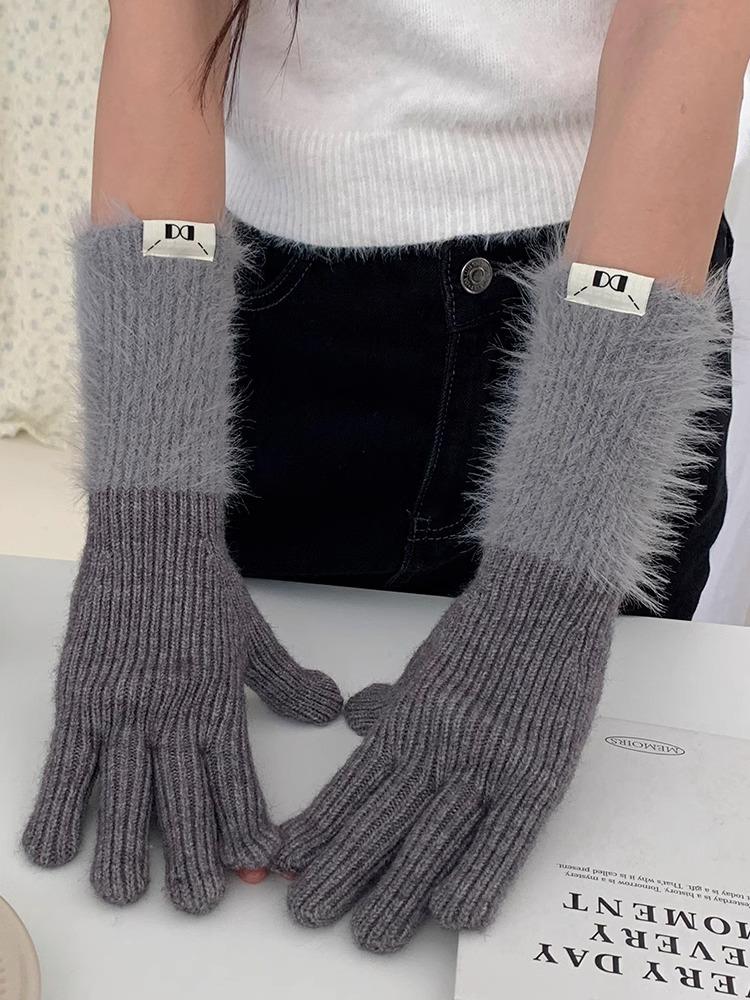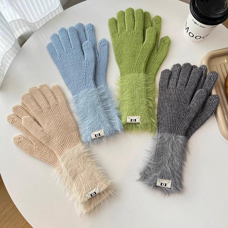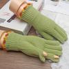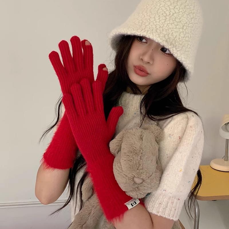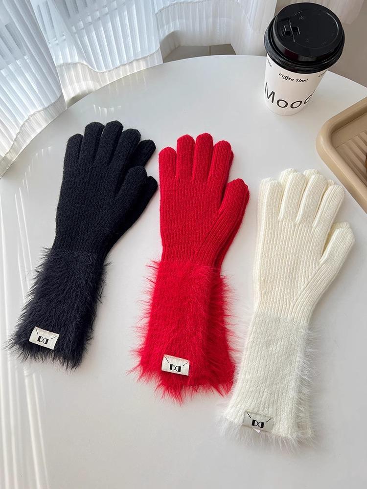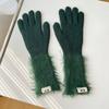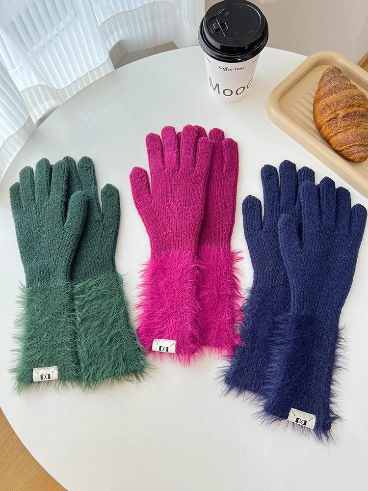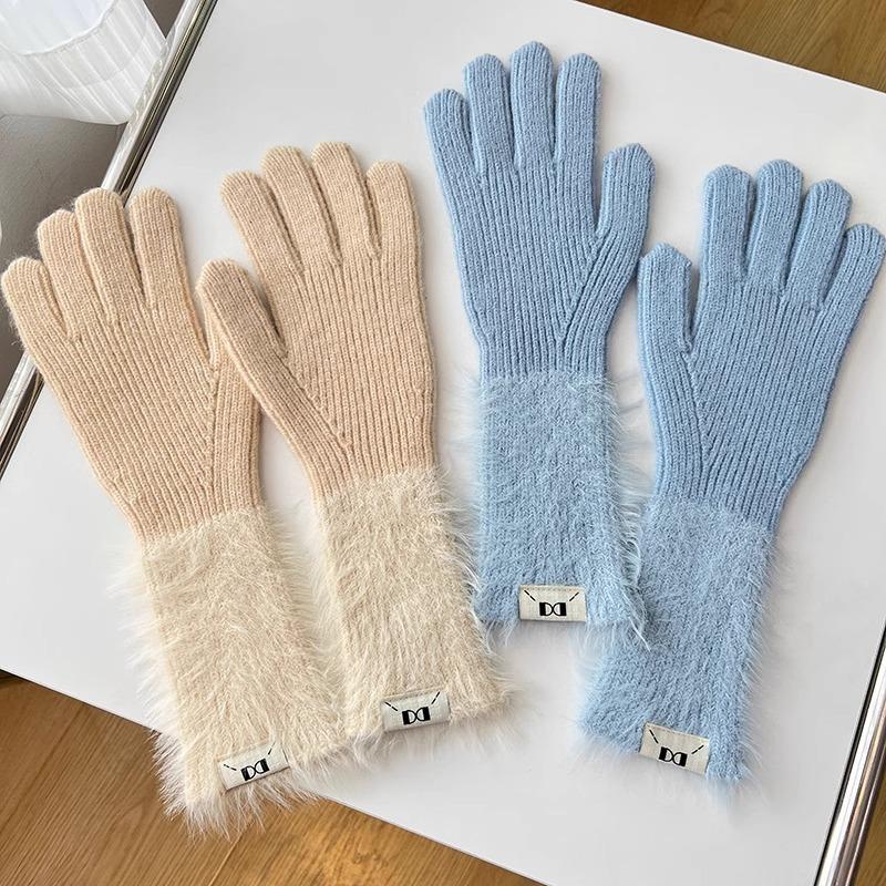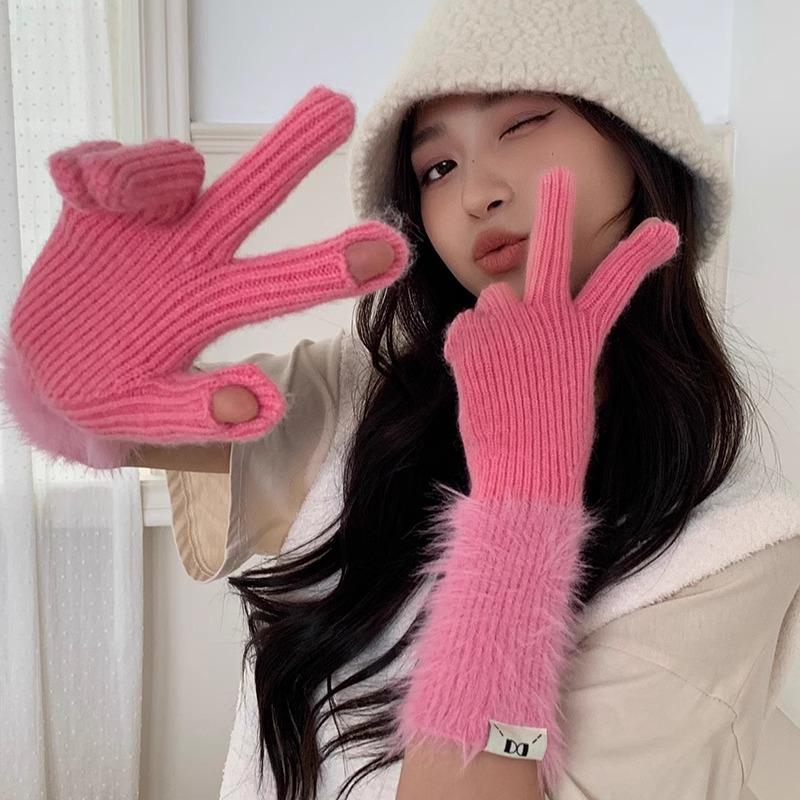 Guantes de cinco dedos cálidos de color sólido Dopamine de otoño e invierno, de punto a juego, bonitos guantes de ciclismo de manga larga para mujer.