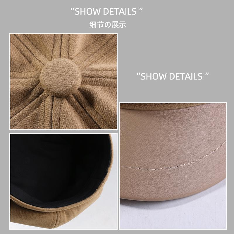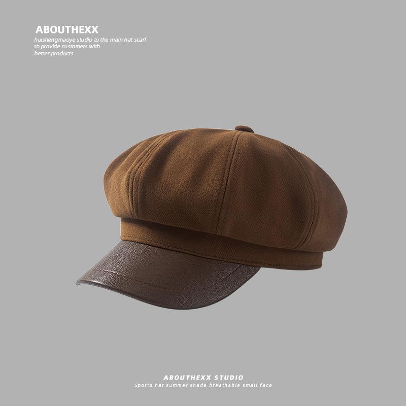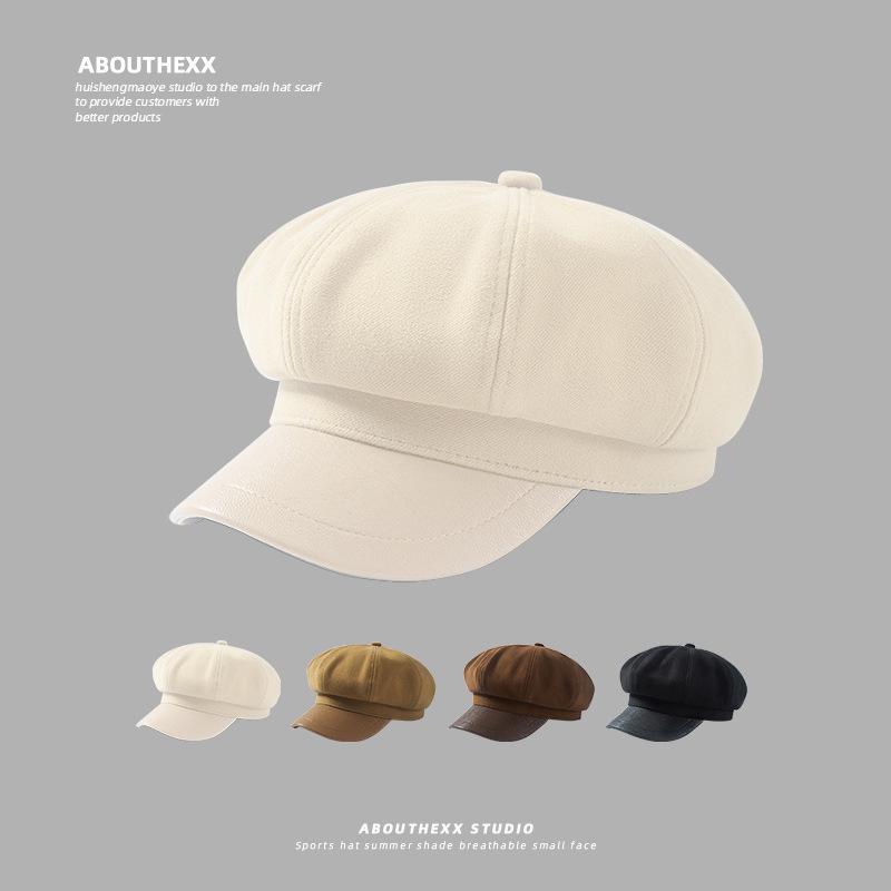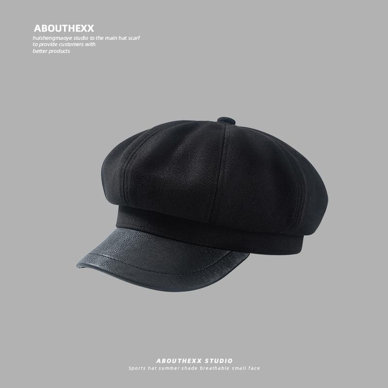 Sombrero de lana para mujer, gorro octogonal combinable, boina retro artística de otoño e invierno, estilo japonés, gorro informal de calle británico para vendedor de periódicos.