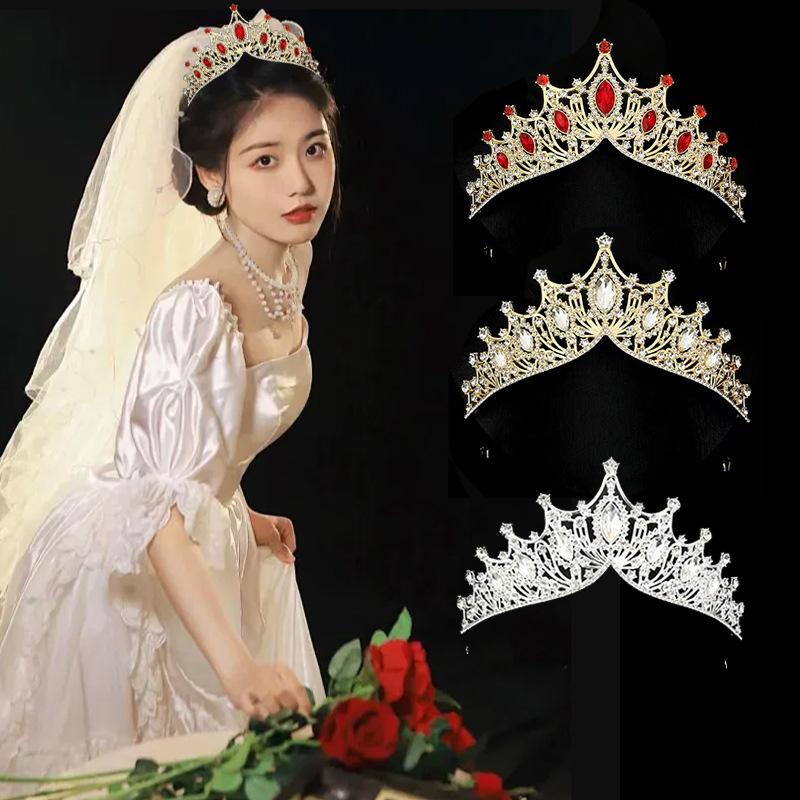 Accesorios para el cabello con corona pequeña para novias europeas y americanas, tocado de corona de princesa de boda con diamantes de imitación de aleación barroca, accesorios de estudio para el cabello