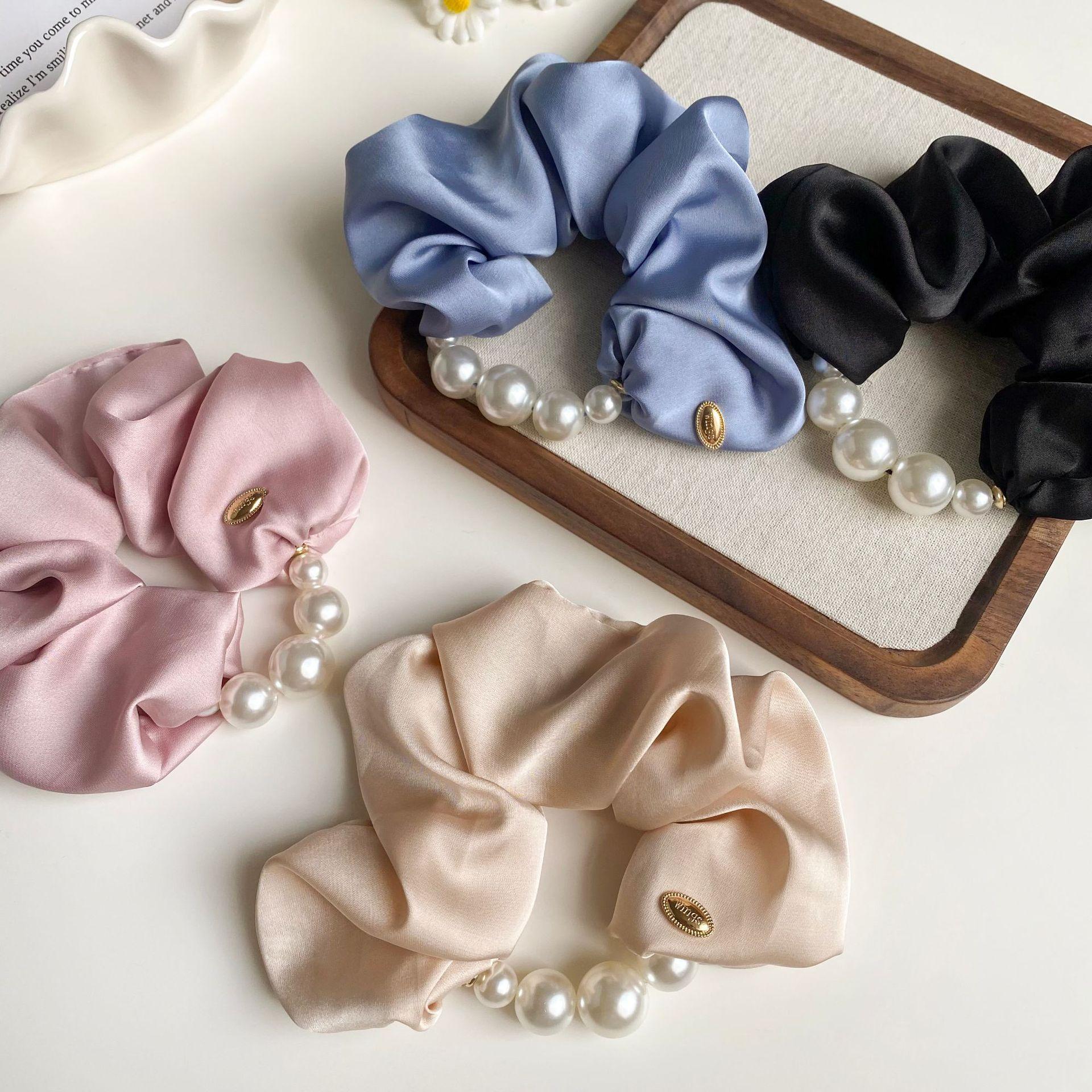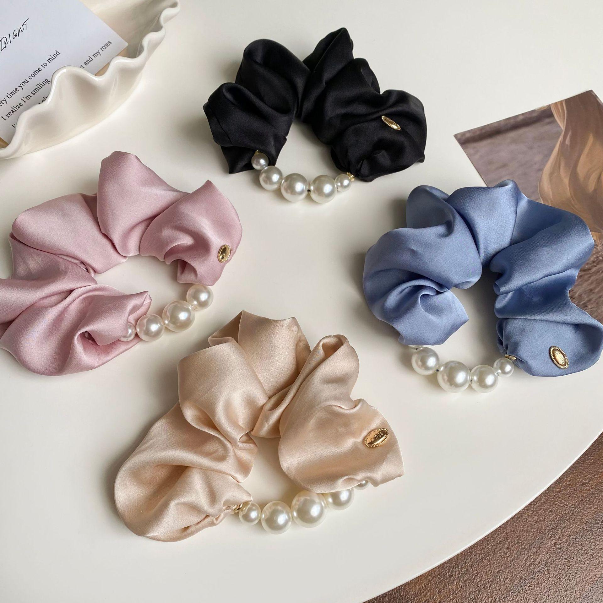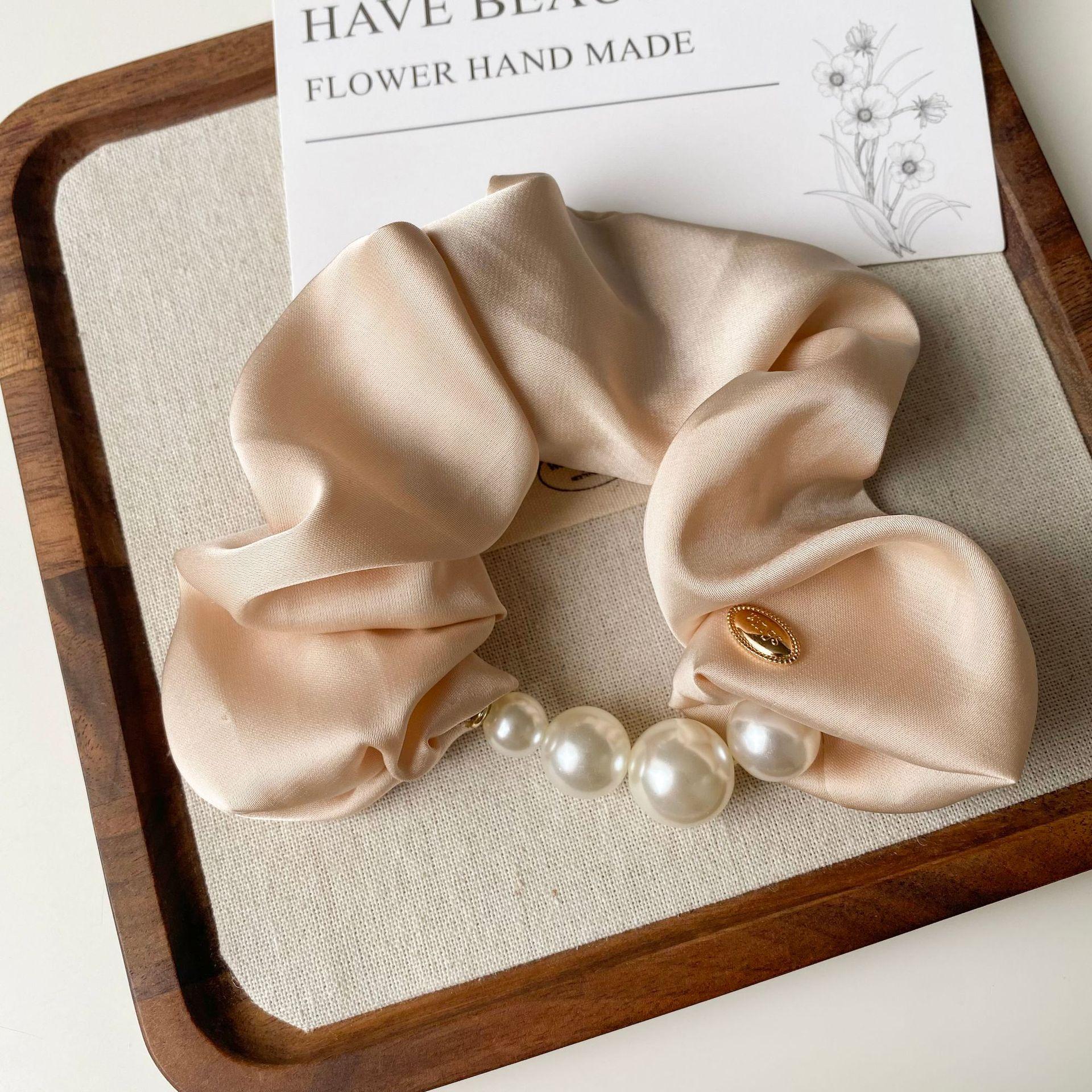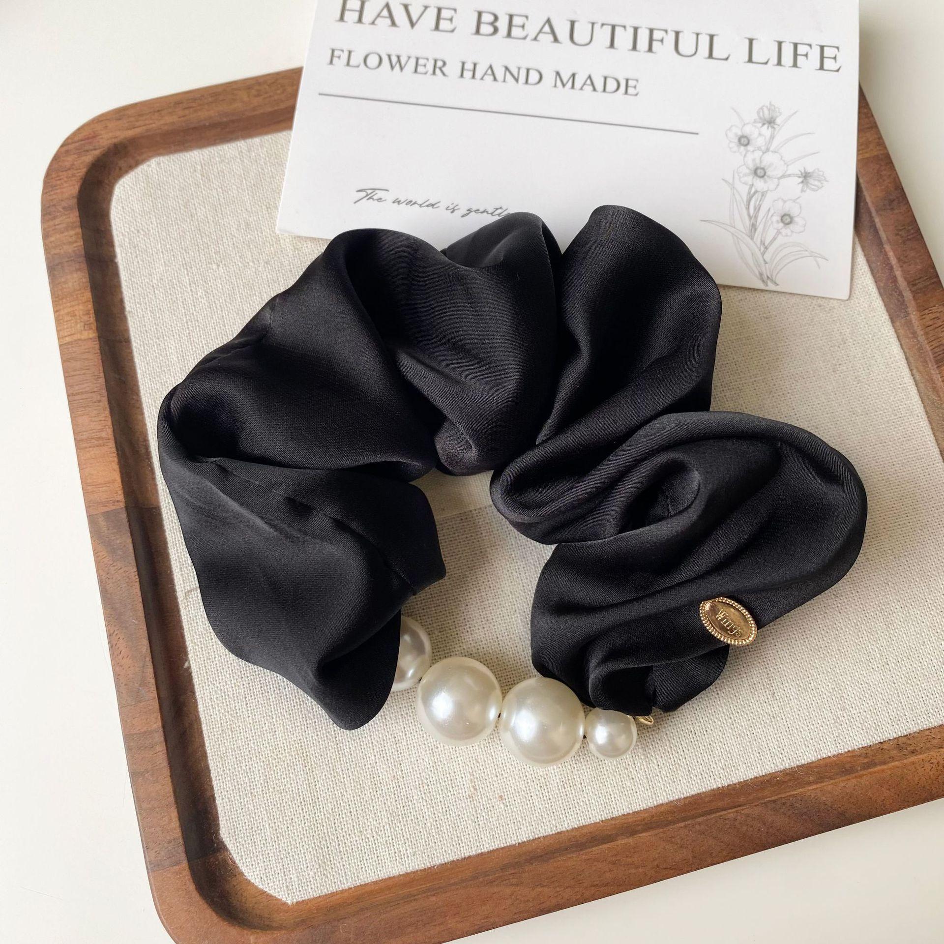 Elegante Lazo para el Cabello de Intestino Grueso con Perlas de Nuevo Estilo Francés Simple y Versátil Estilo Hepburn Lazo para el Cabello de Alta Gama Accesorio para el Cabello