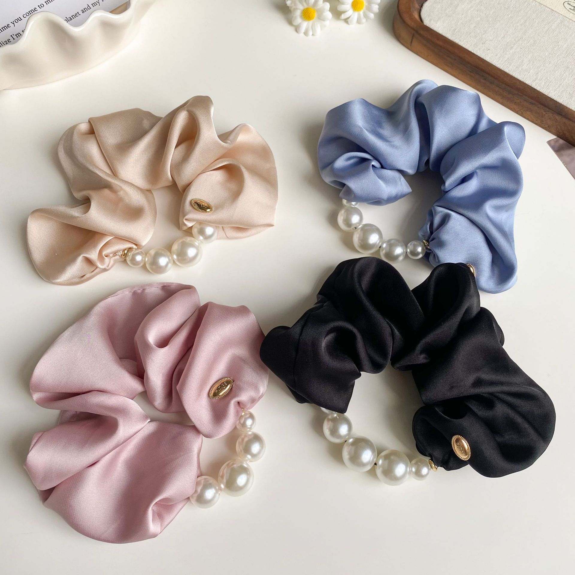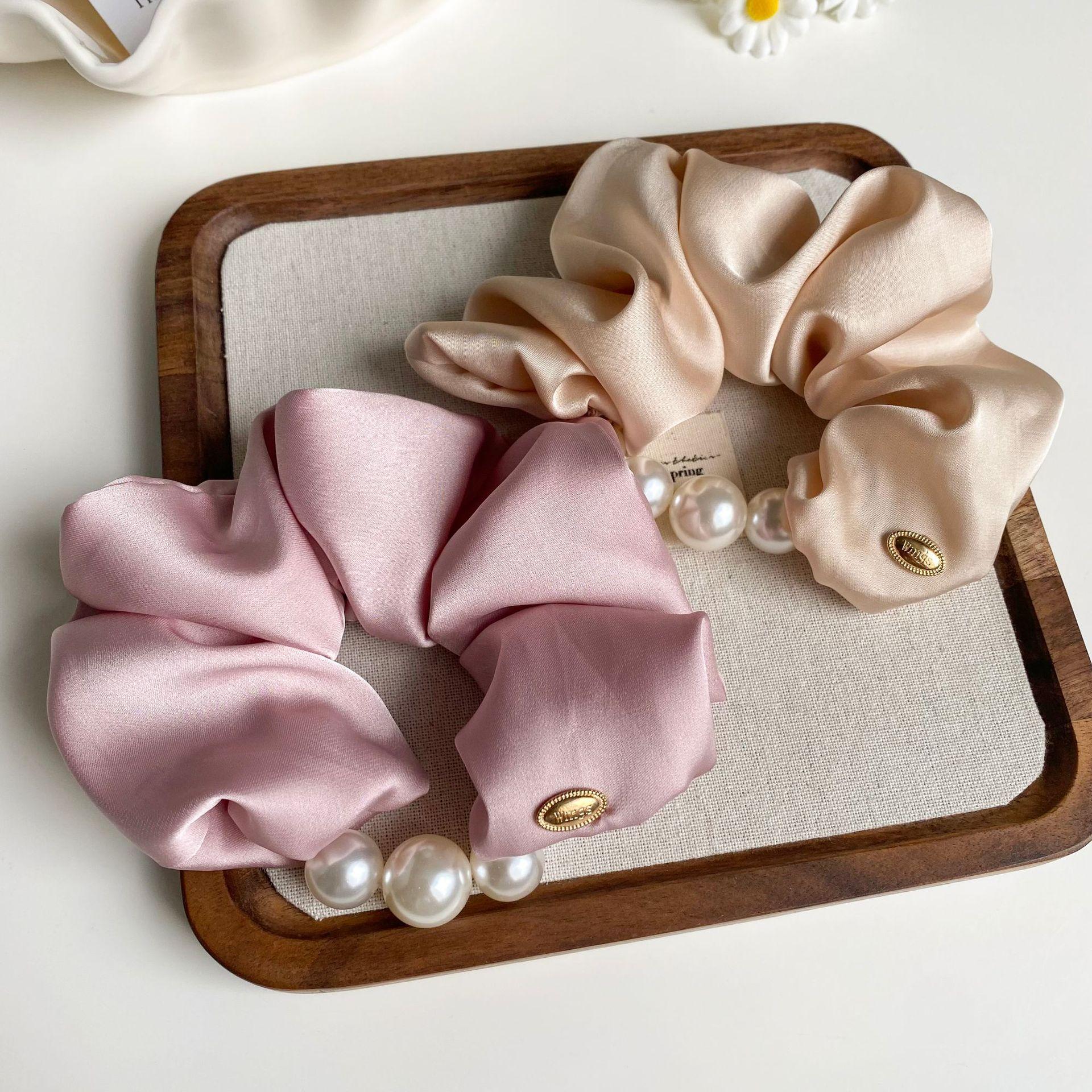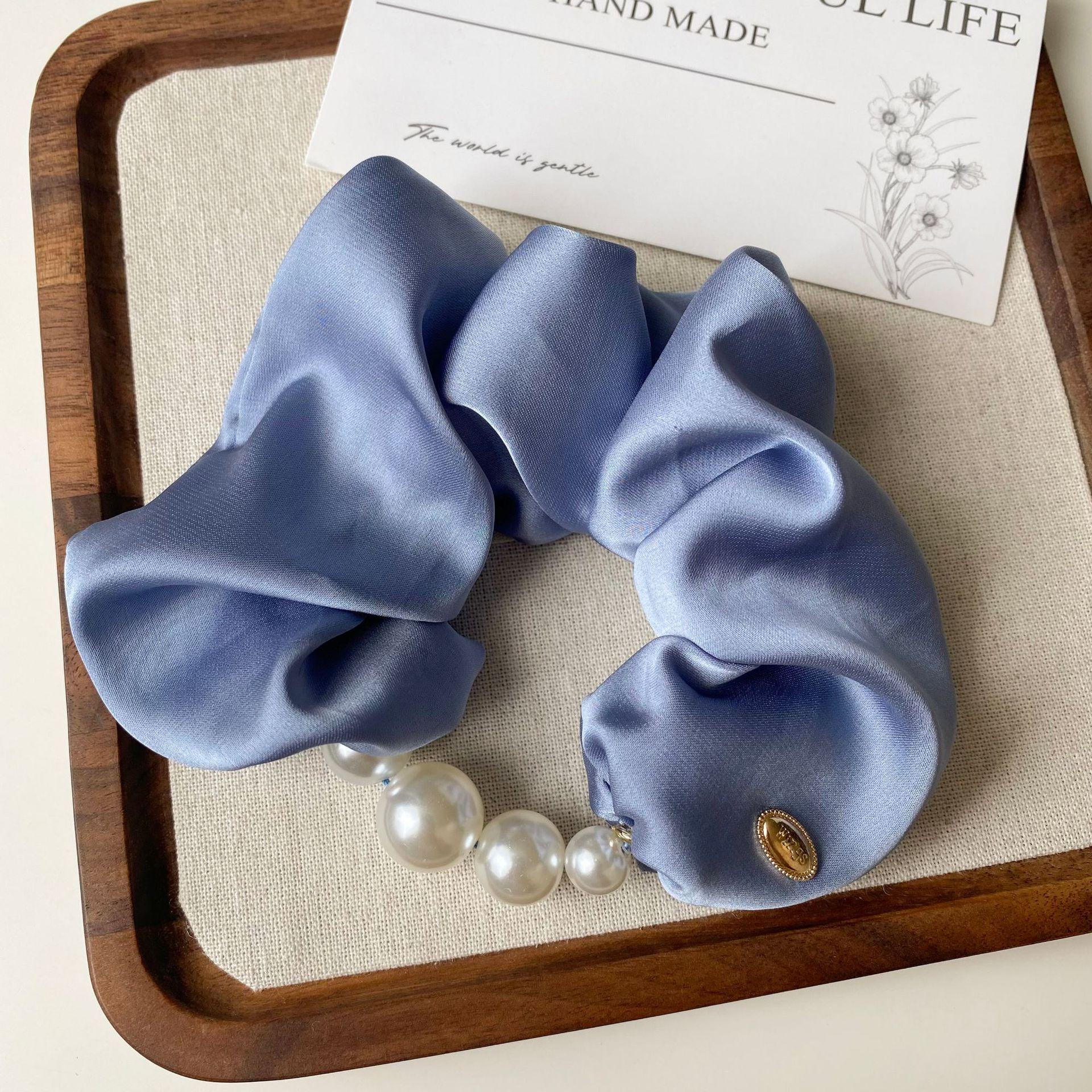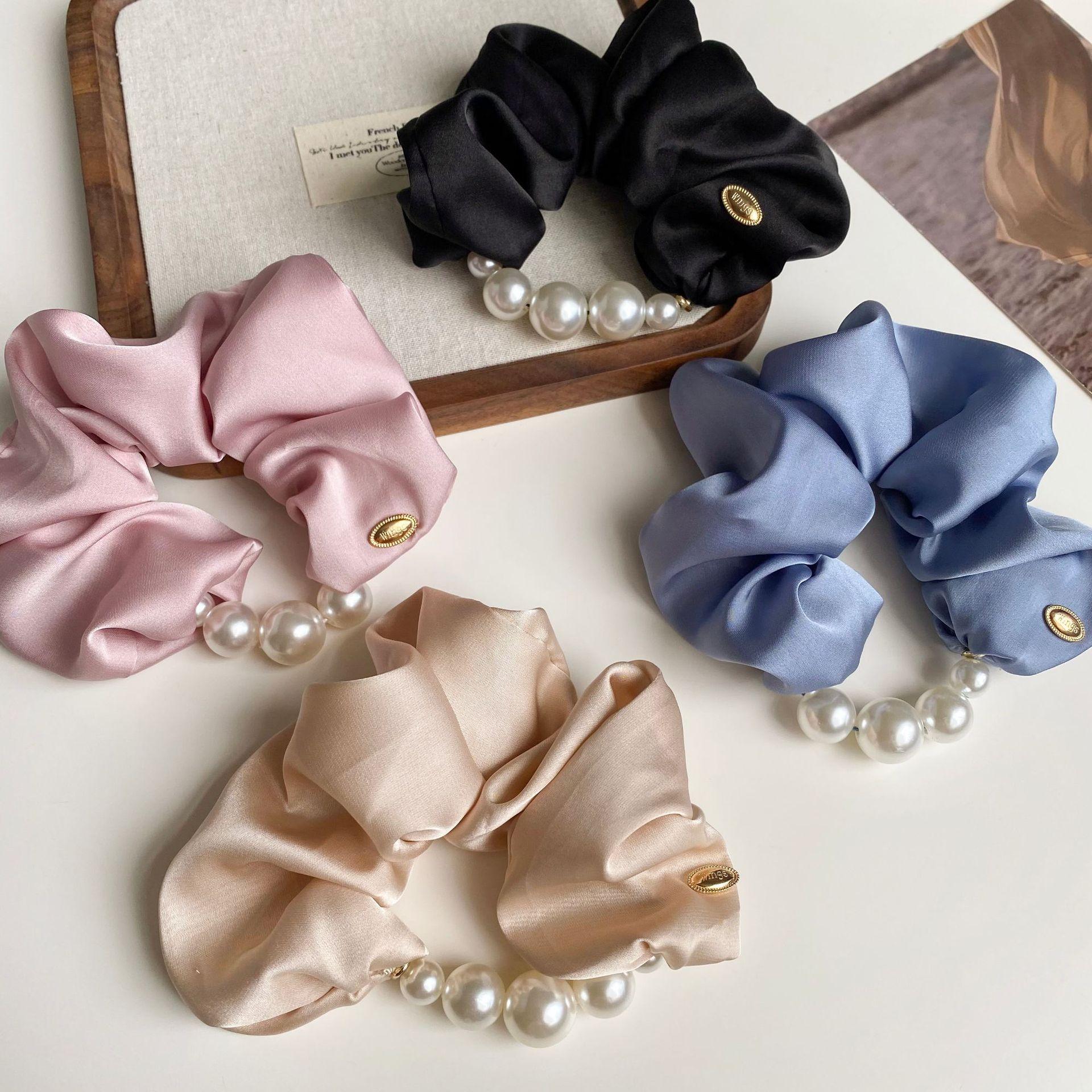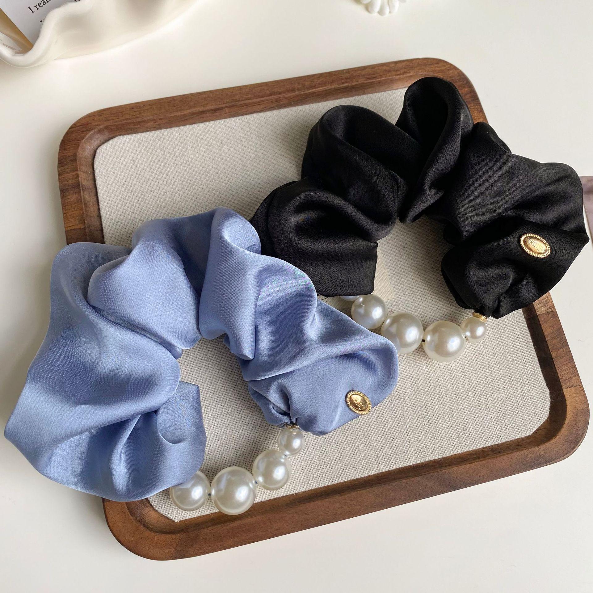 Elegante Lazo para el Cabello de Intestino Grueso con Perlas de Nuevo Estilo Francés Simple y Versátil Estilo Hepburn Lazo para el Cabello de Alta Gama Accesorio para el Cabello