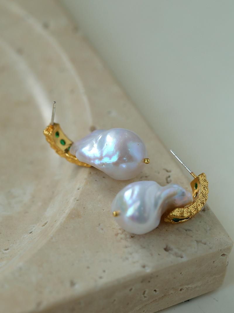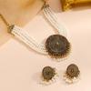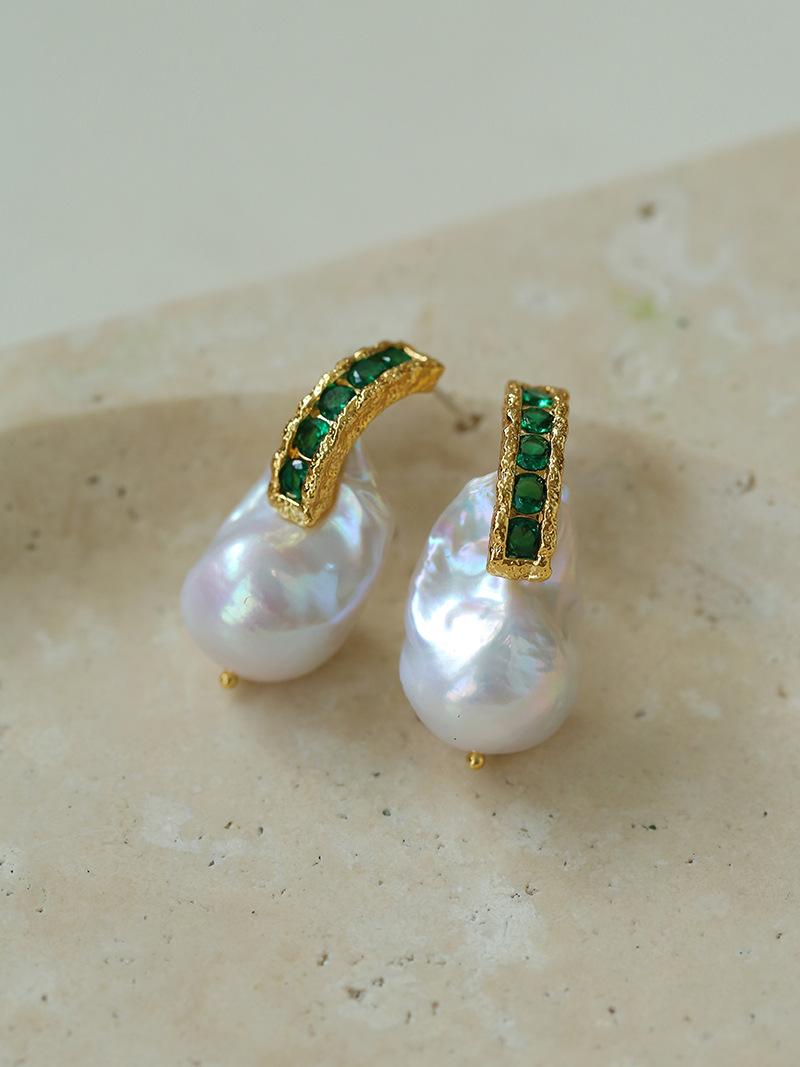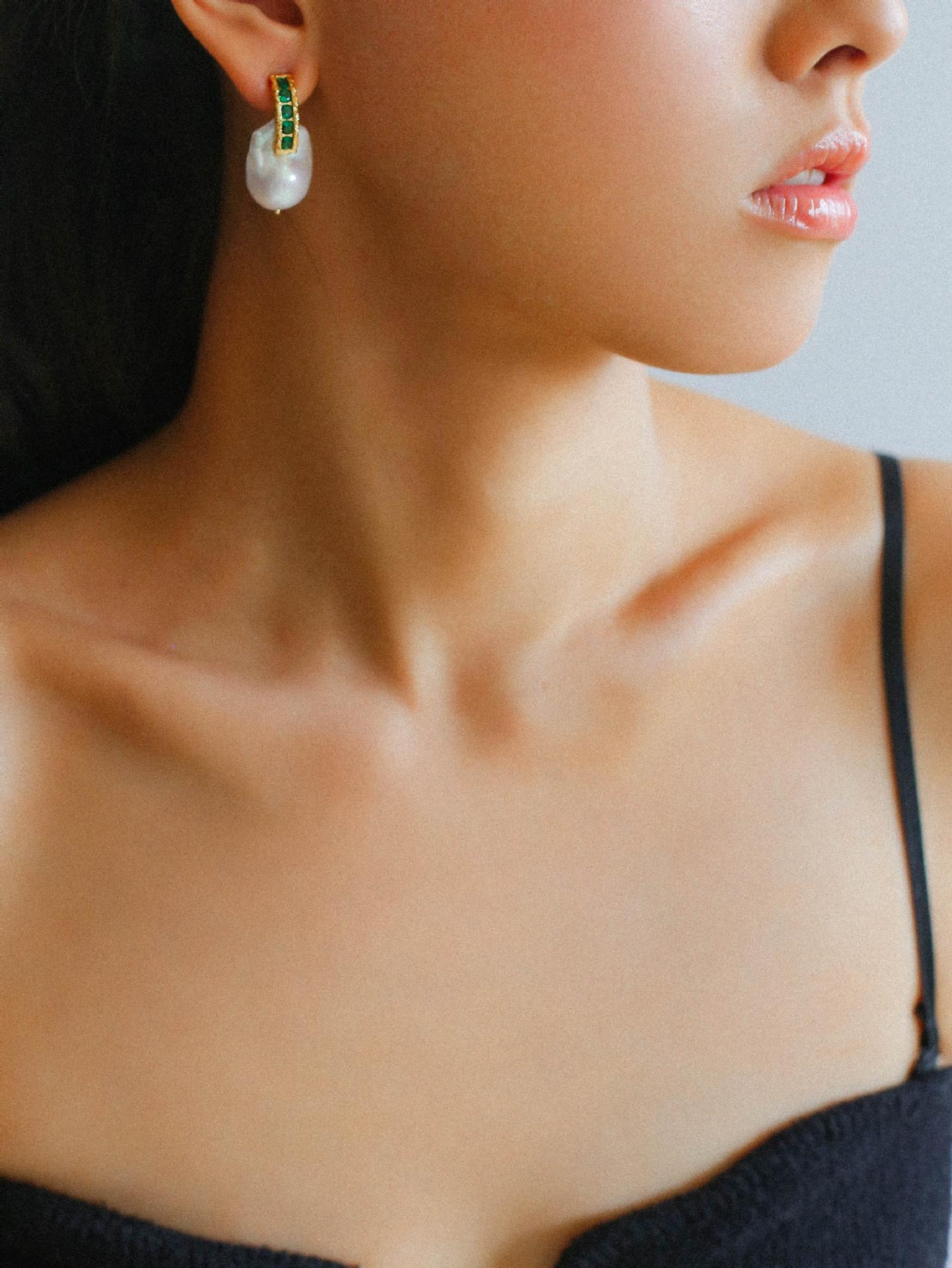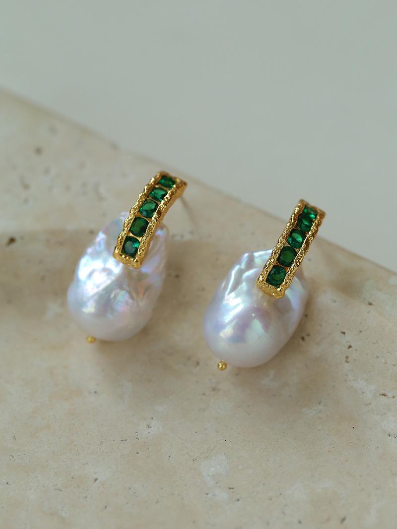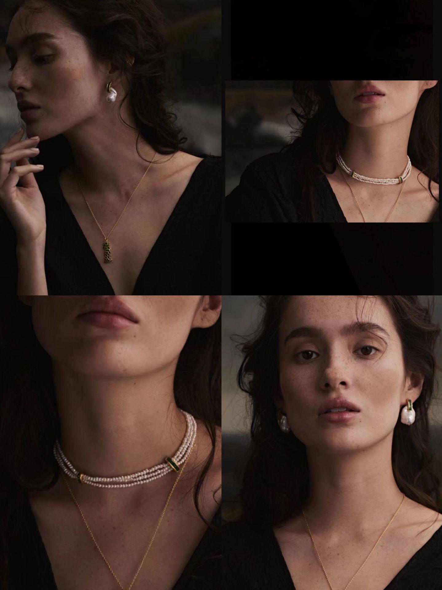 Collar de Perlas de Mijo de Tres Capas Cadena Clavicular de Zircón Verde Aretes Barrocos Collar de Perlas de Moda Transfronterizo