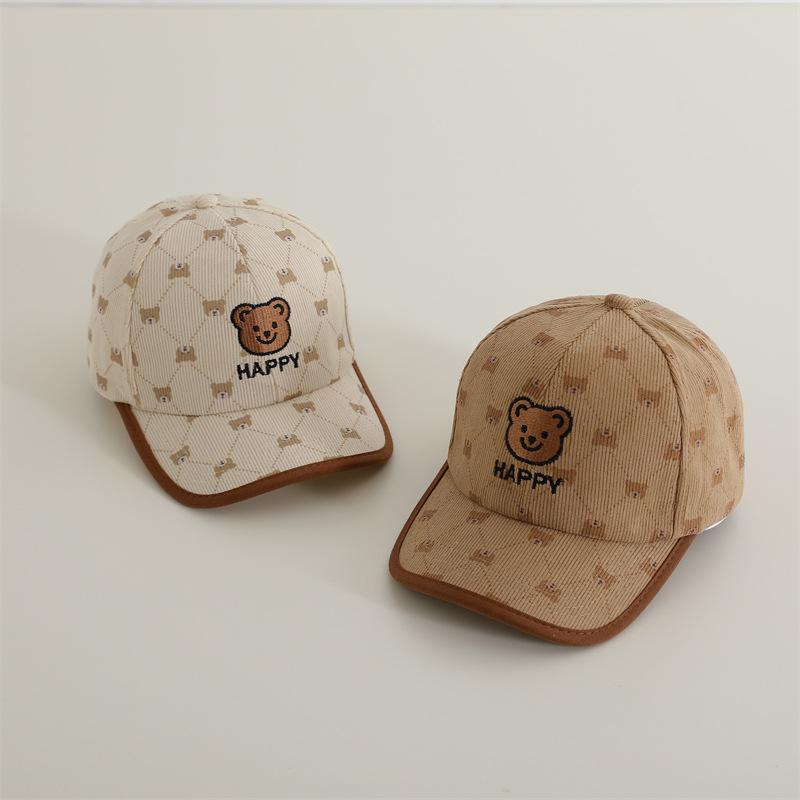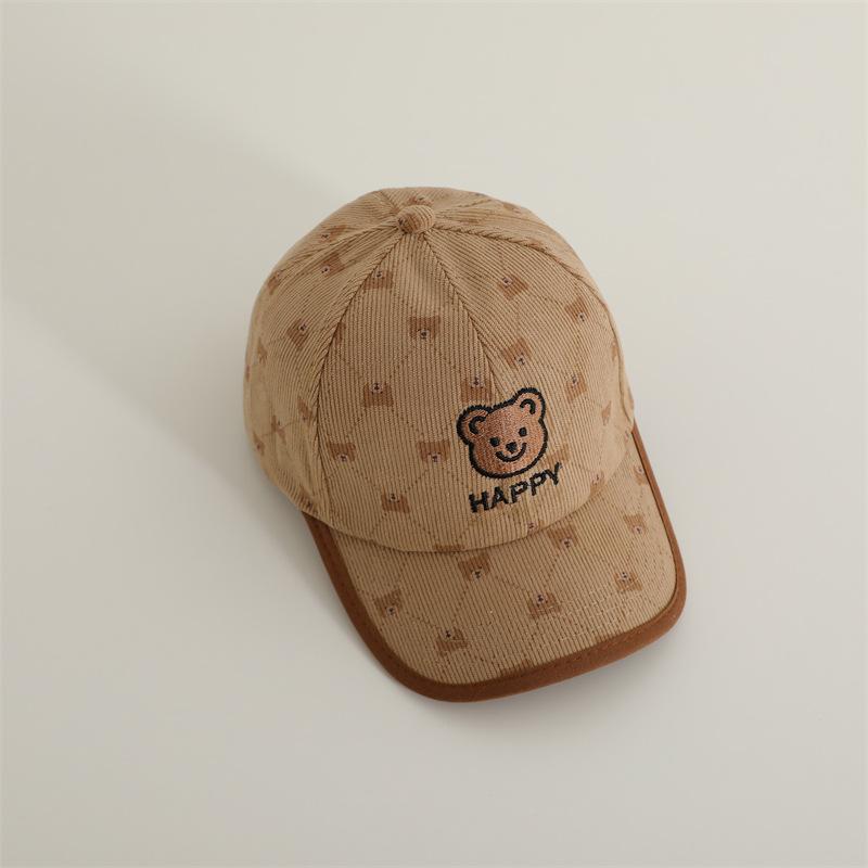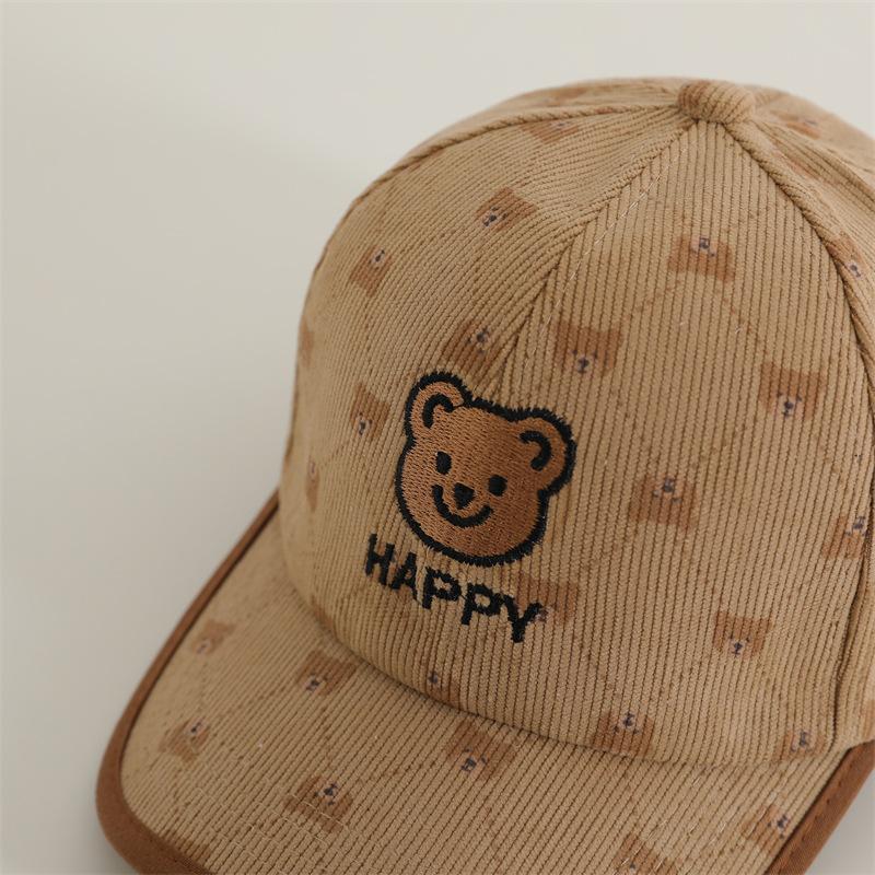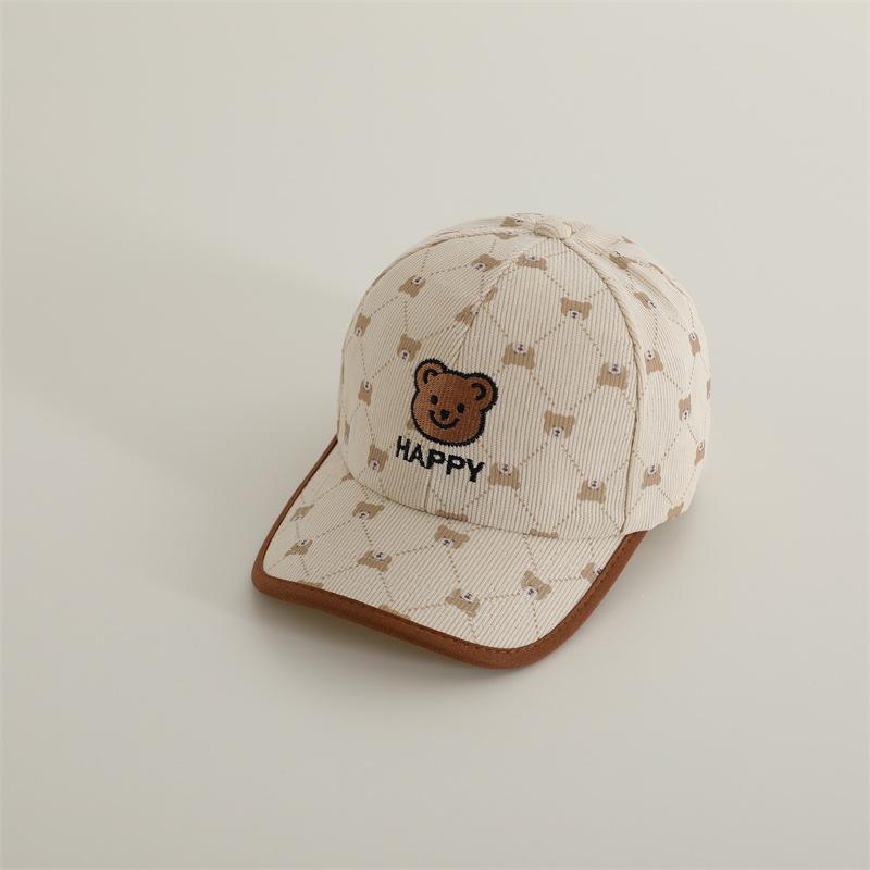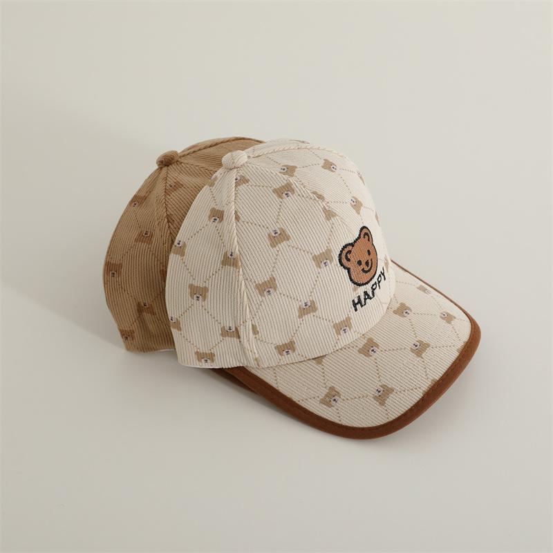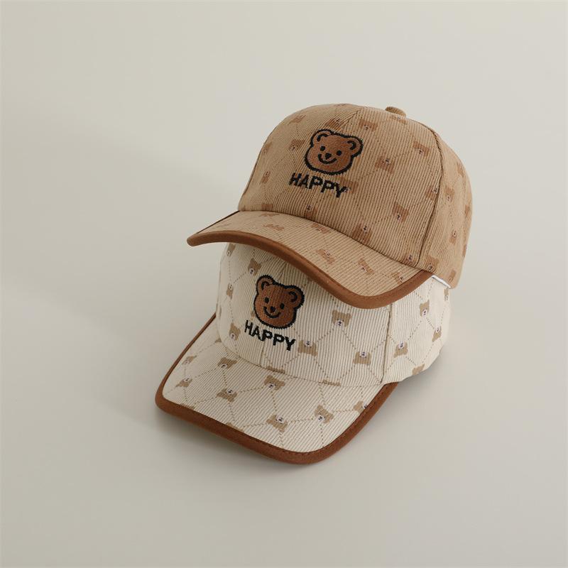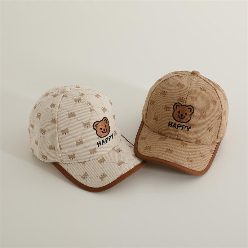 Gorra de béisbol informal para niños, estilo retro, de pana, con bordado de oso, para otoño e invierno de 2024