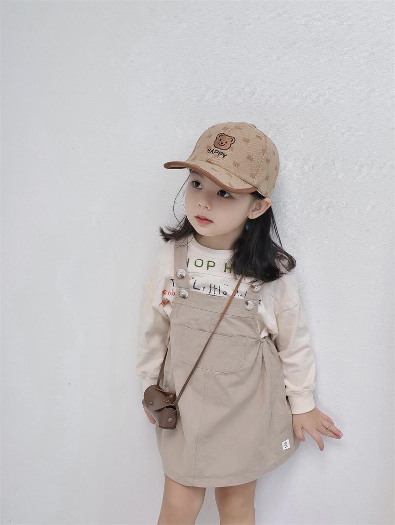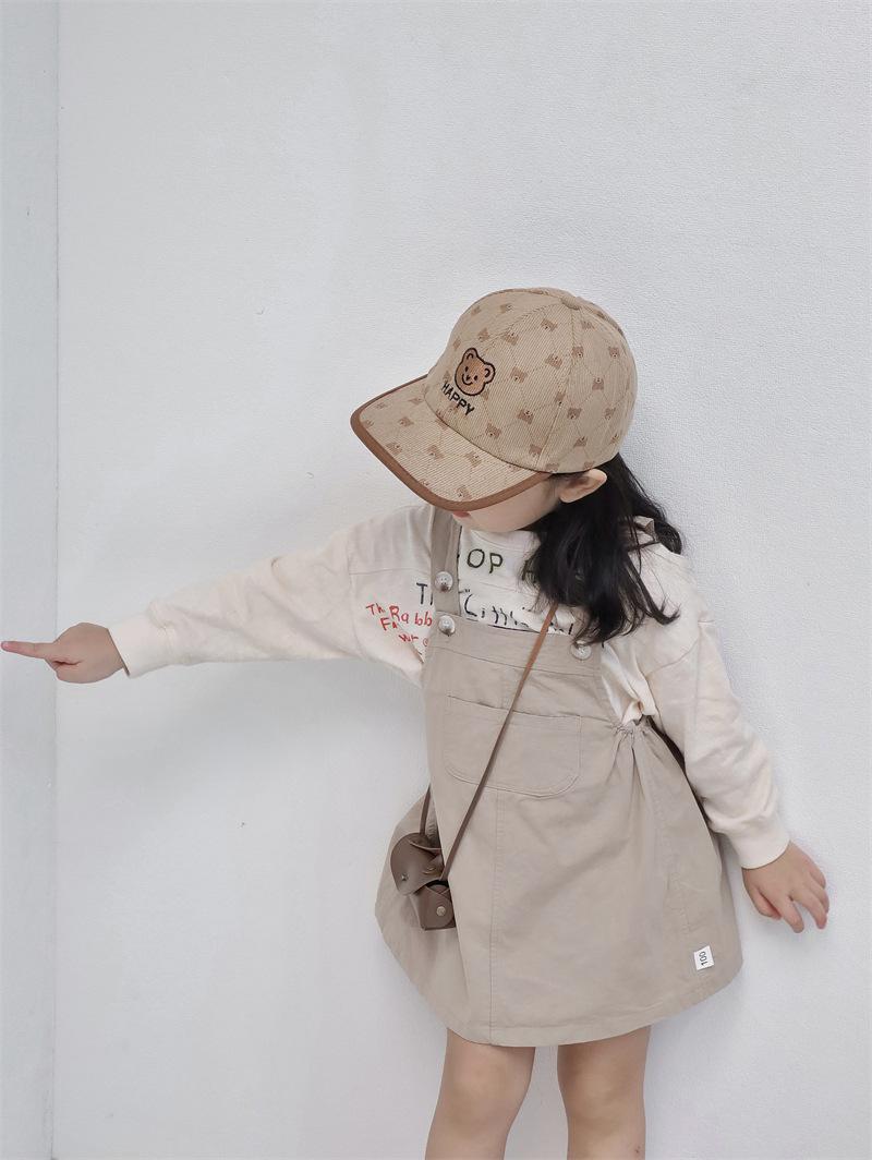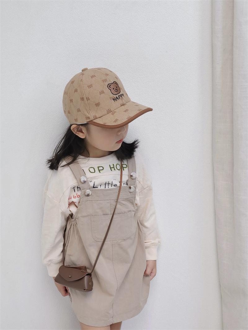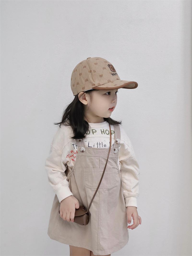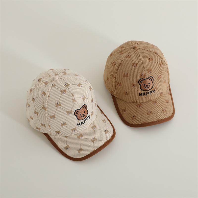 Gorra de béisbol informal para niños, estilo retro, de pana, con bordado de oso, para otoño e invierno de 2024