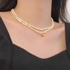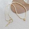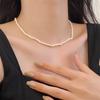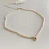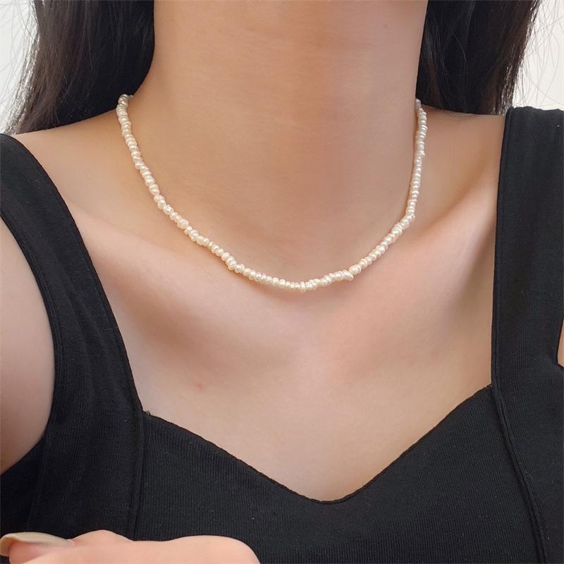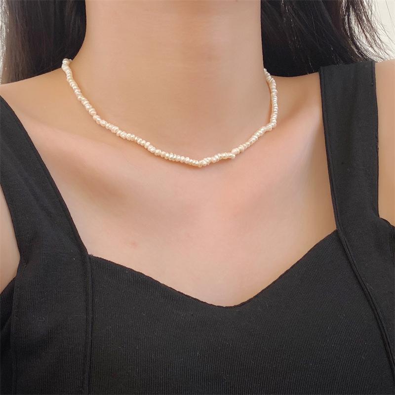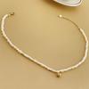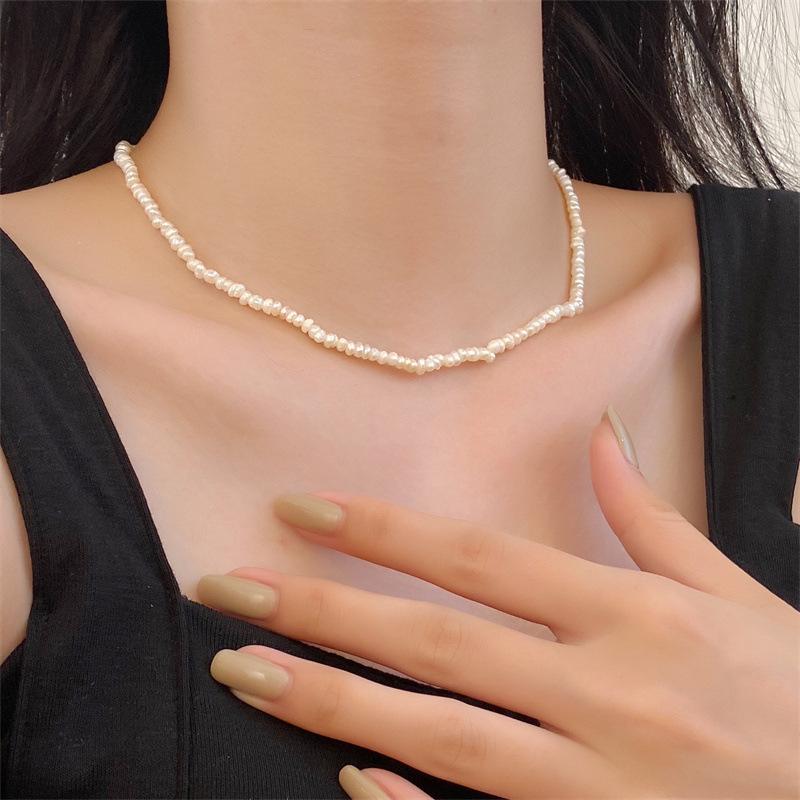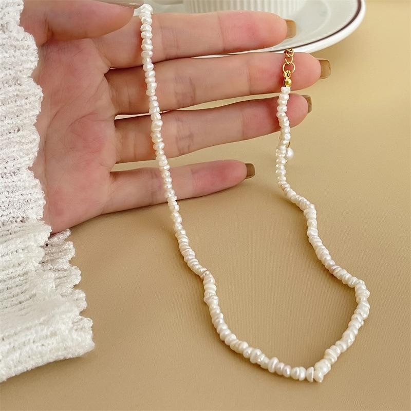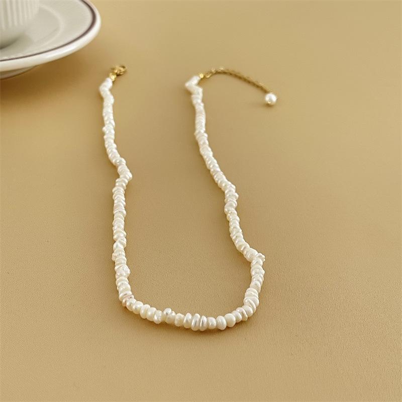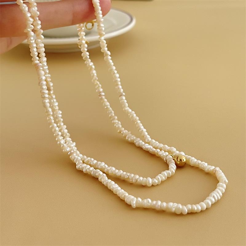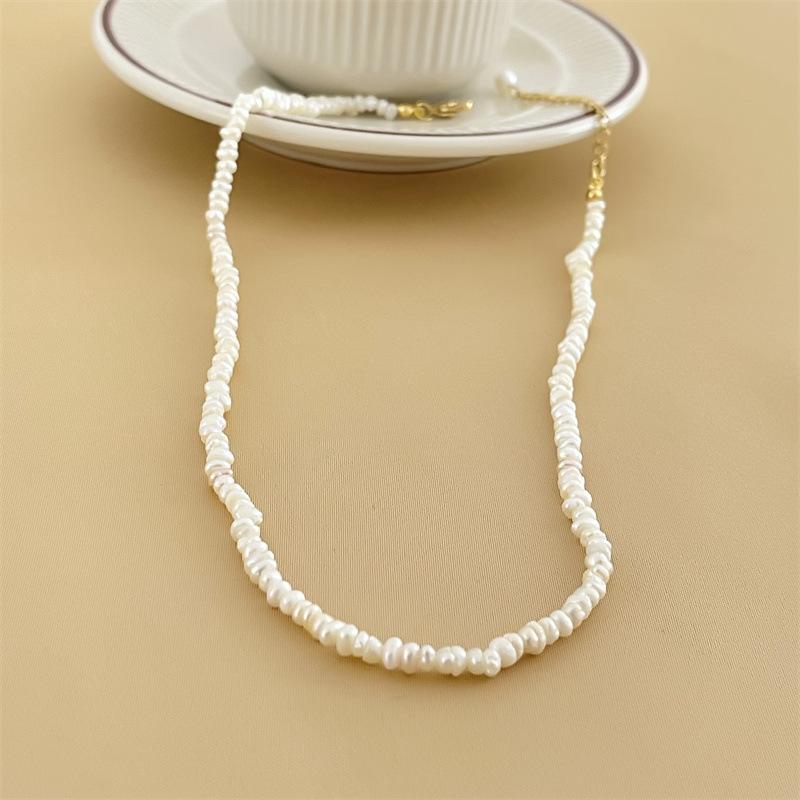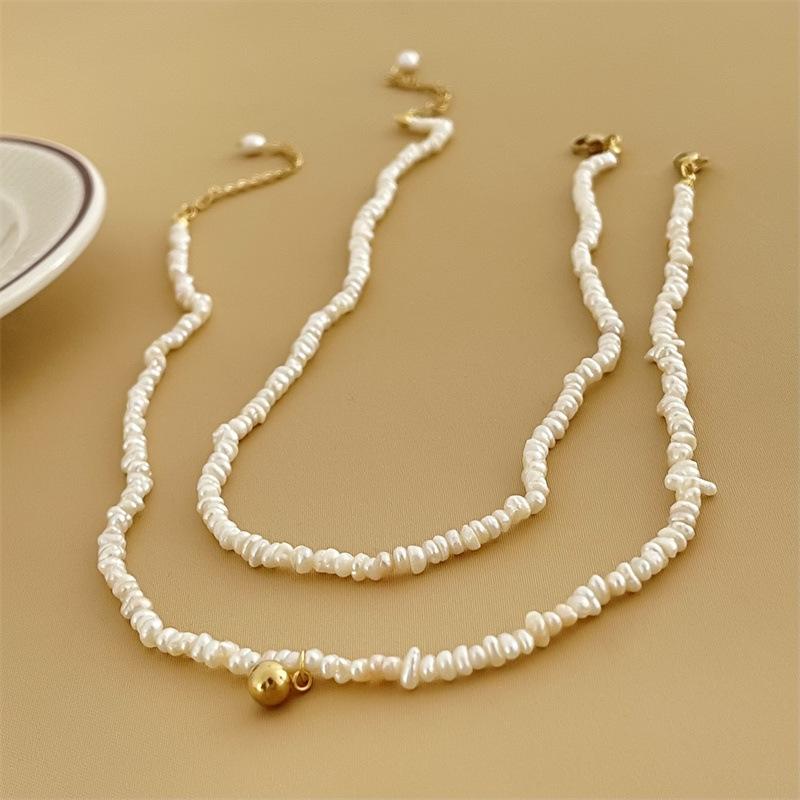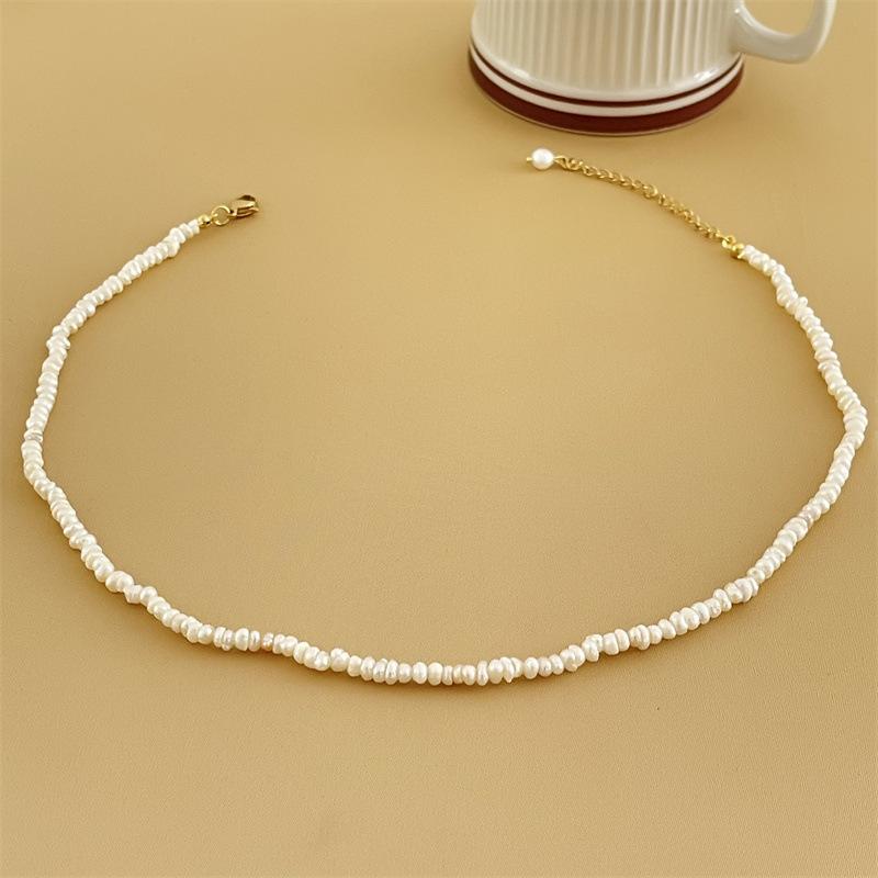 Gargantilla vintage de cuentas de arroz y frijoles dorados, cadena de clavícula de acero de titanio, collar de perlas naturales de agua dulce, collar de bolas de oro pequeñas para mujer