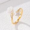 Anillo Camelia de oro arena para mujer, diseño de nicho de moda, anillo de flor, joyería de mano de alto sentido, Accesorios al por mayor Yiwu