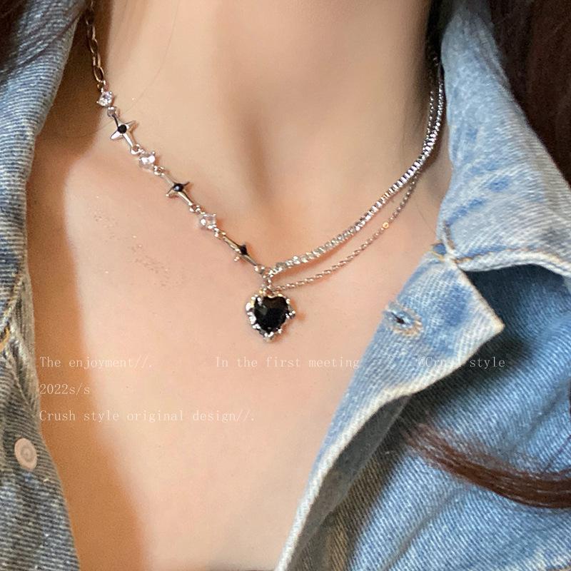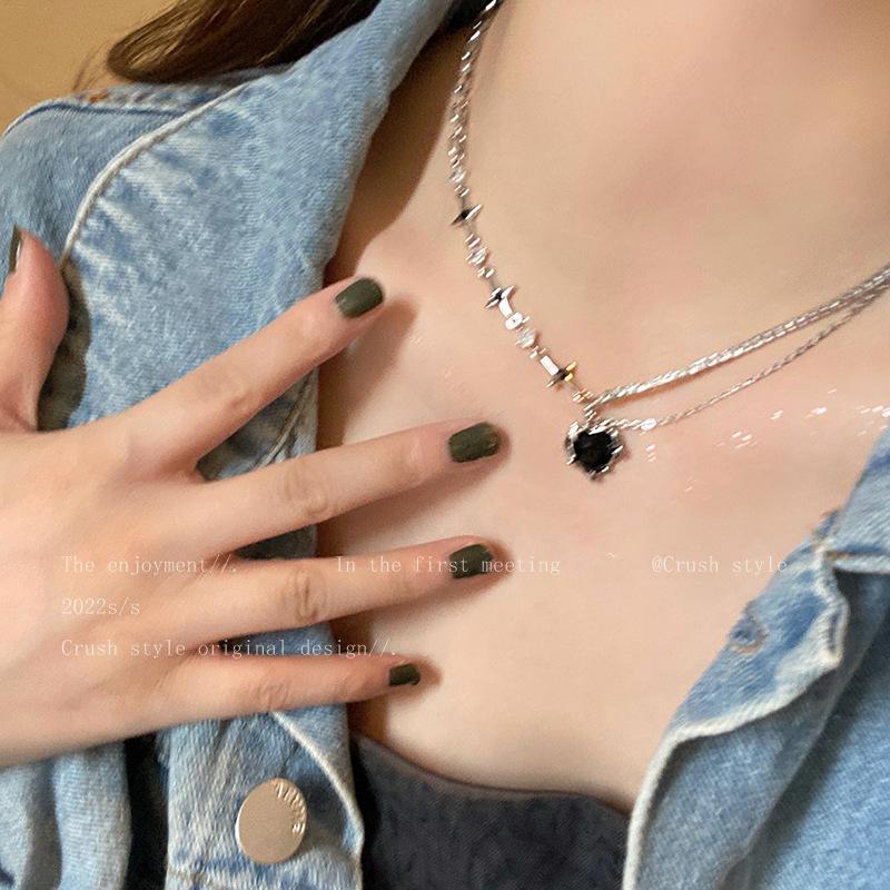 | Collar de doble capa con diseño de galaxia humana, nicho de alta gama, 2023, nuevo y popular collar de clavícula con perla de plata rota. |