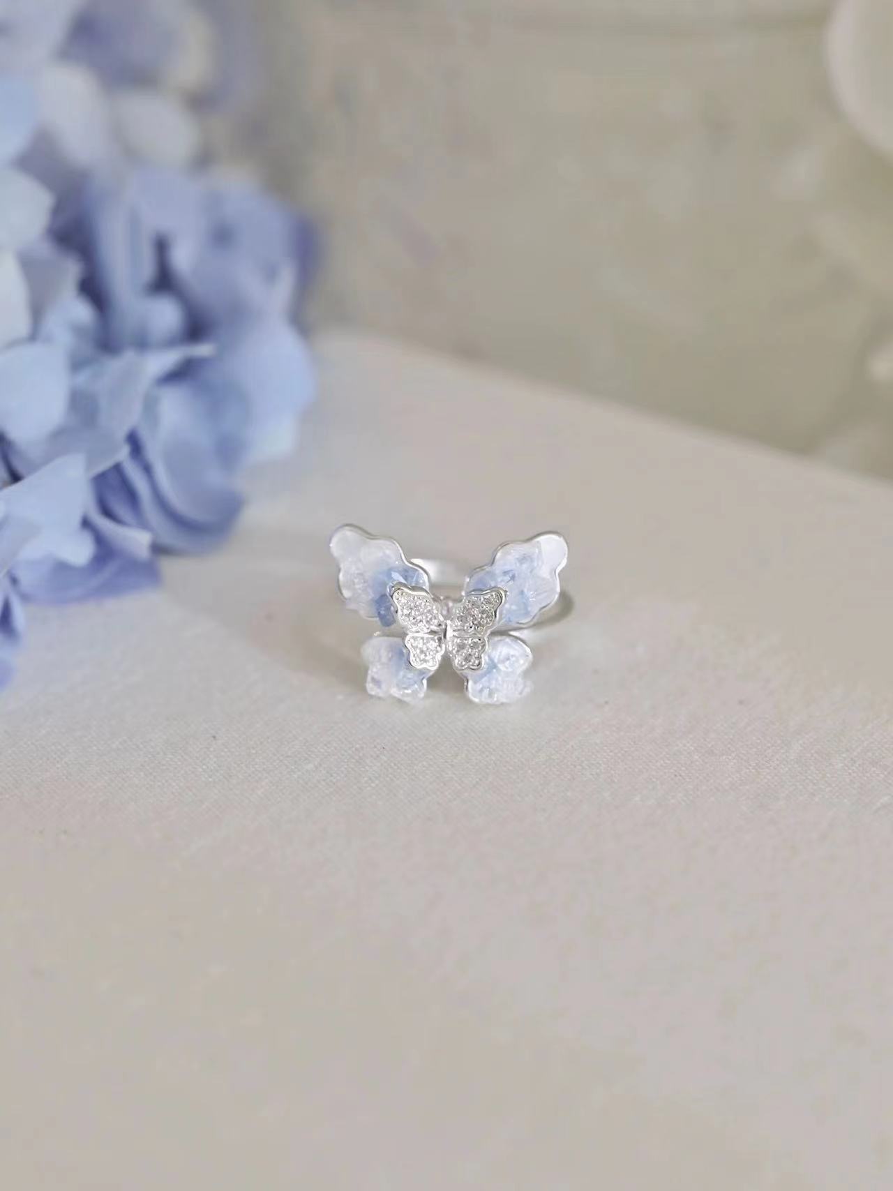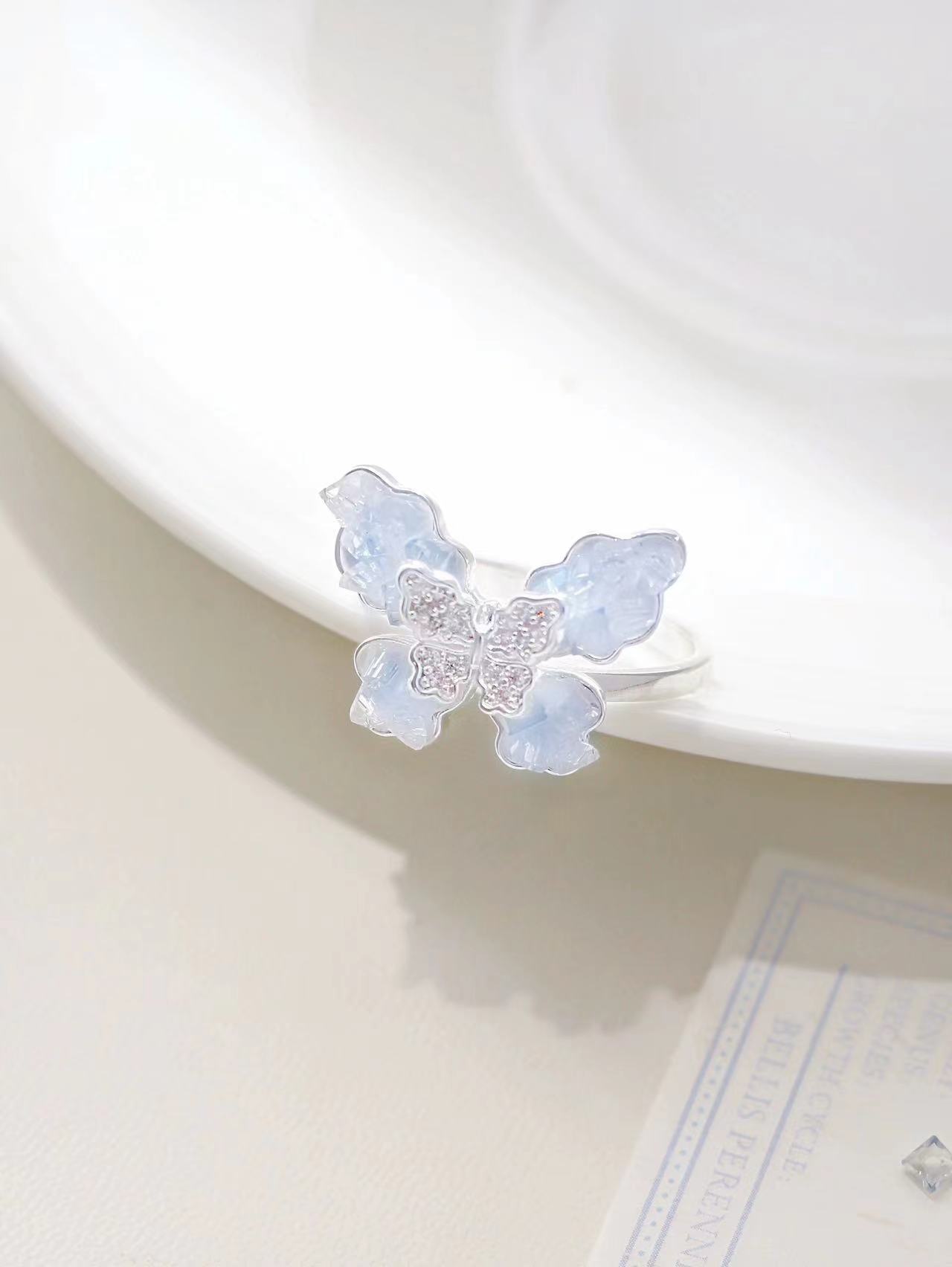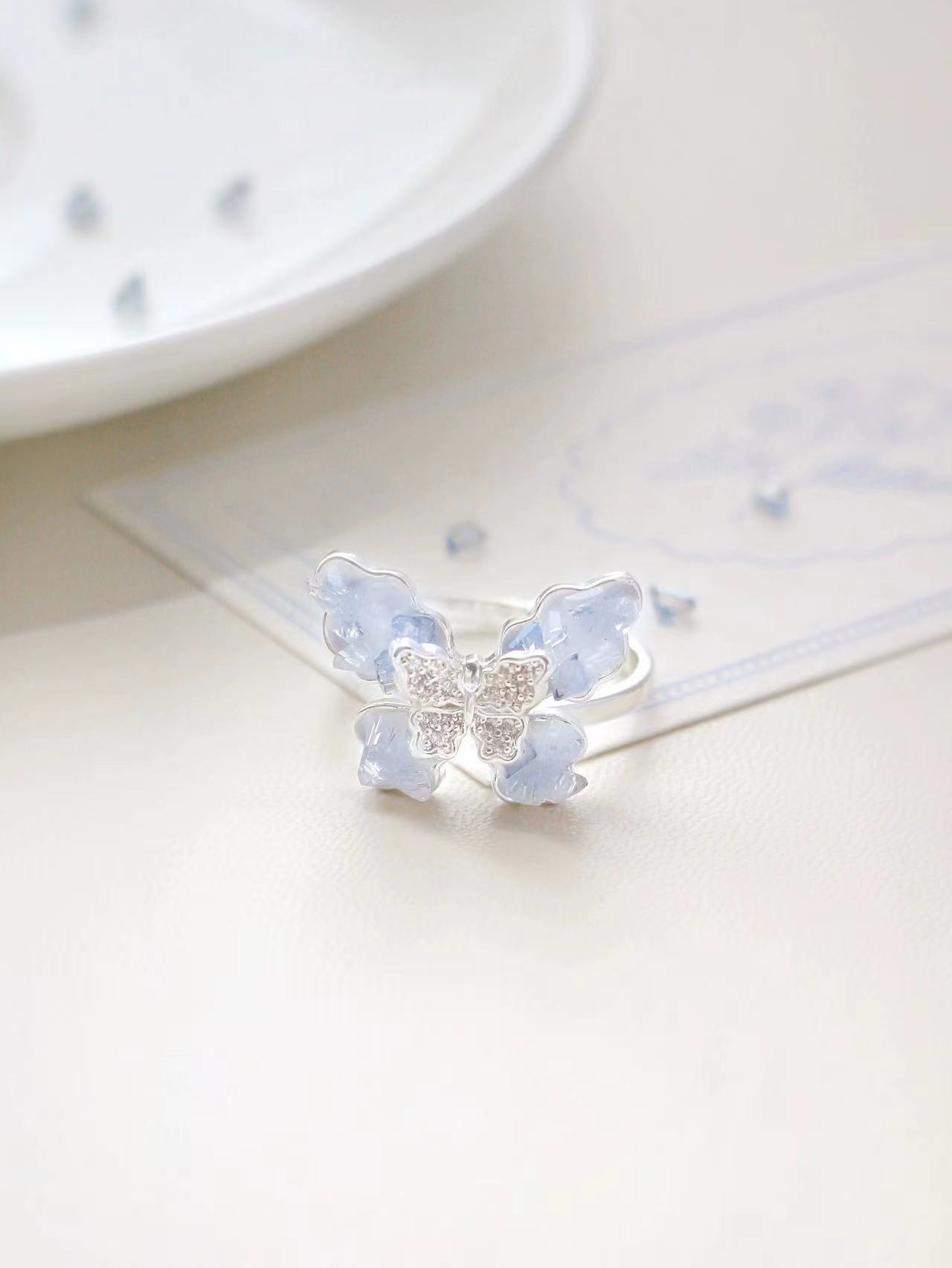 Anillo de Mariposa de Cristal Azul Fresco Pequeño de Moda Verano Nuevo Simple Lujo Ligero Nicho Versátil Ajustable