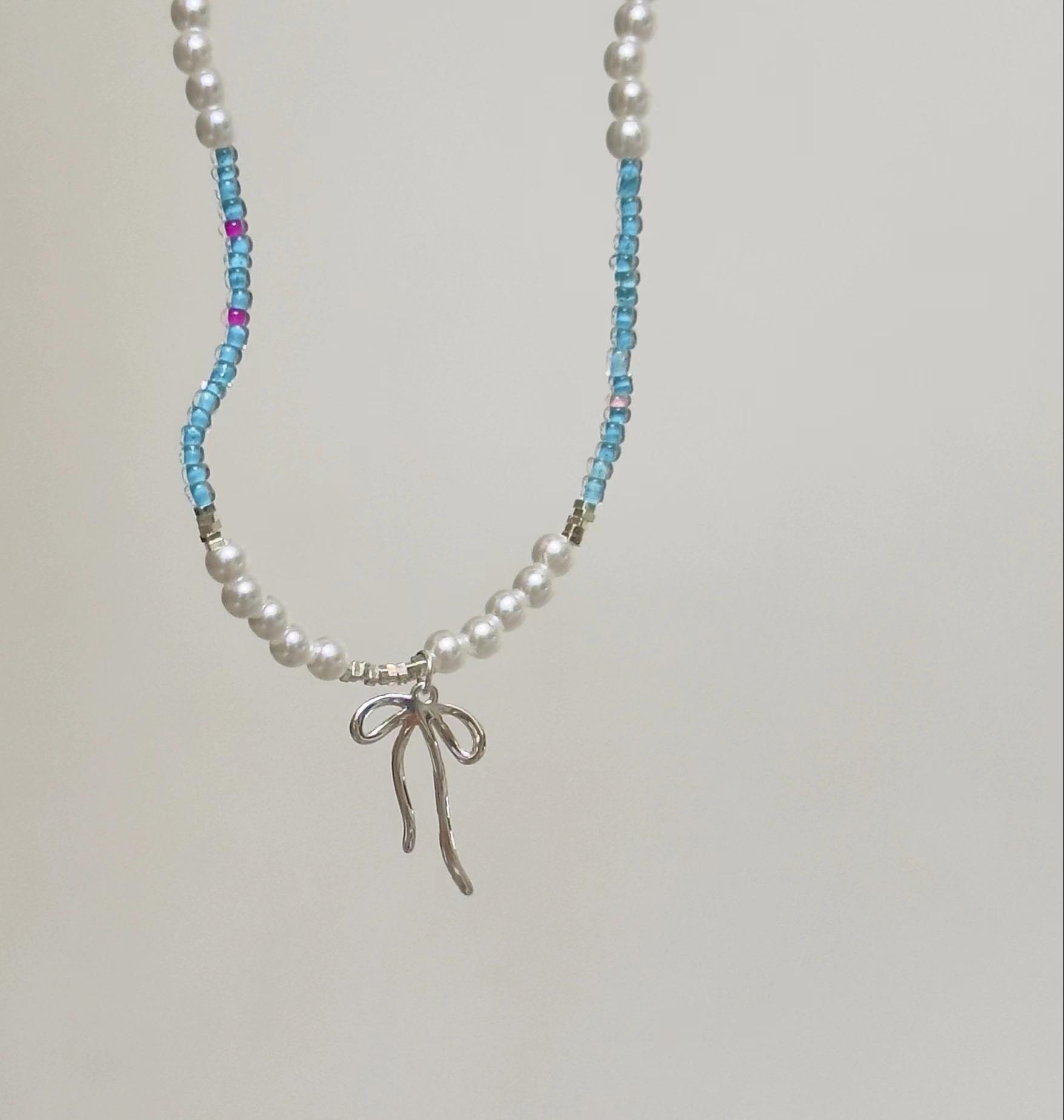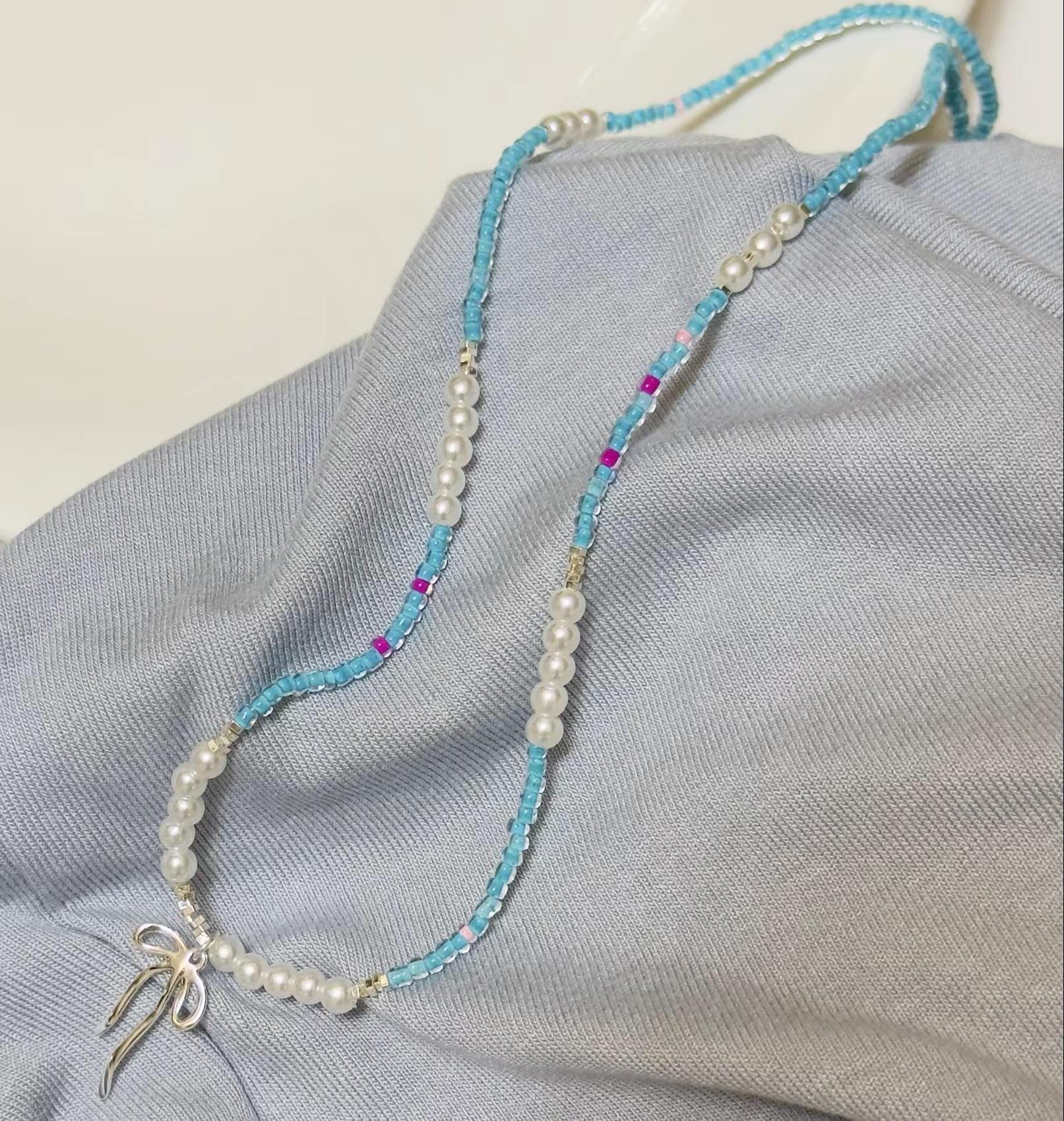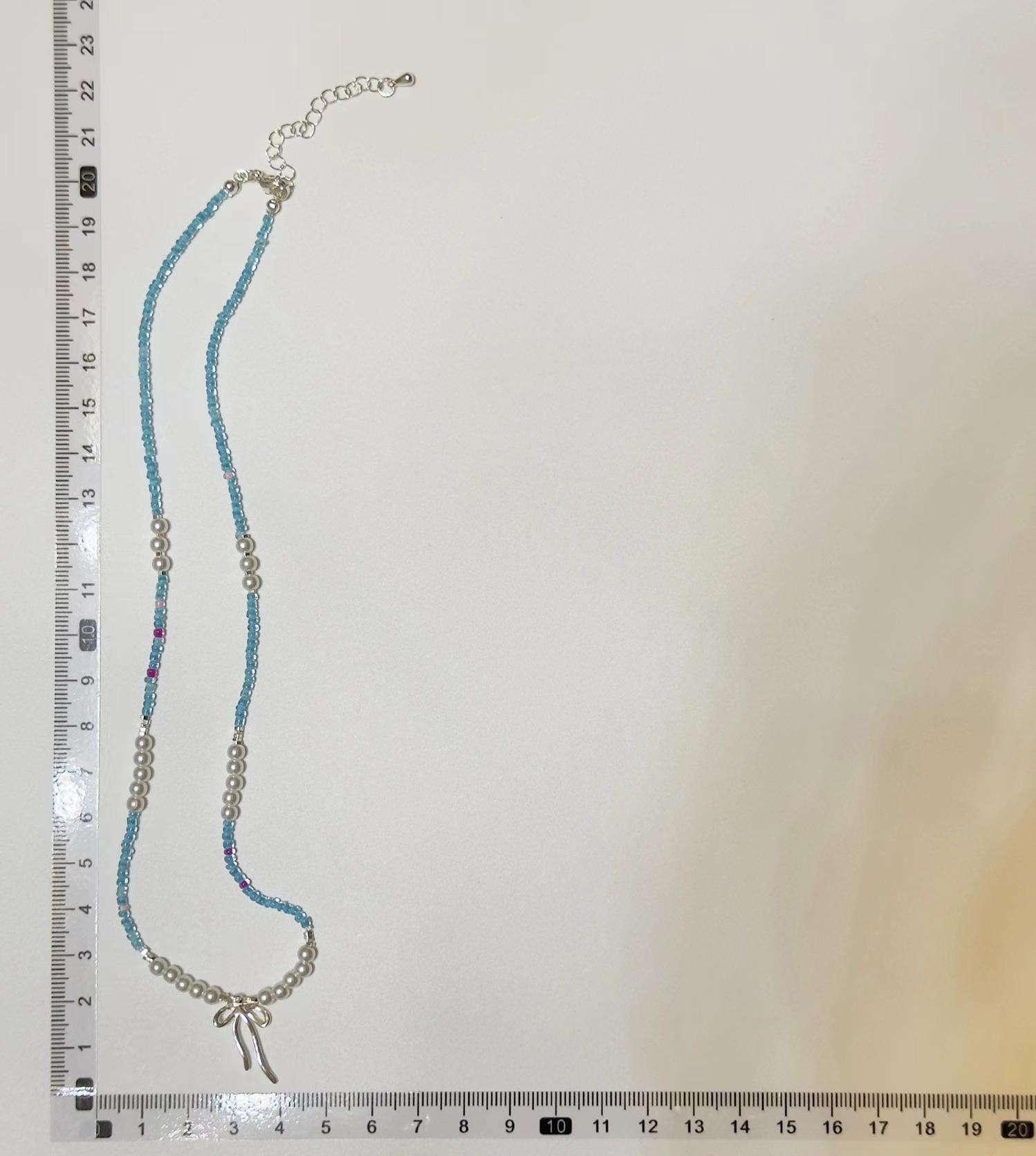 Blue cat's eye beaded EE, Blue Beaded Bow XIXI