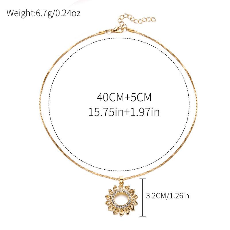 Colgante Incrustado de Diamantes al por Mayor Europeo y Americano Transfronterizo Accesorios para Mujer Joyería Versátil de Moda Aleación Sol Redondo Collar Simple