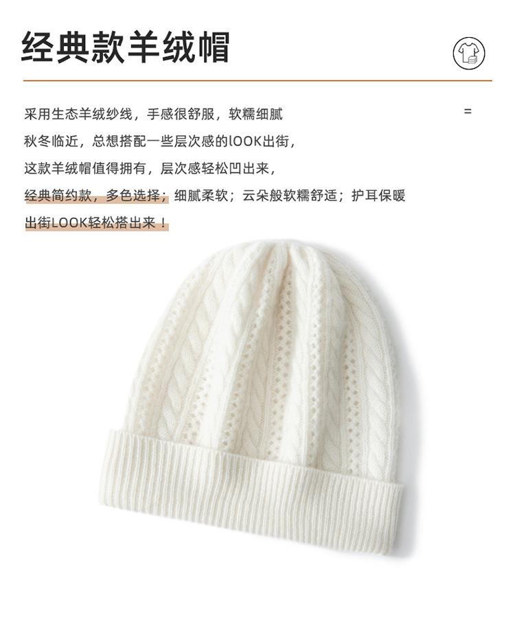 Gorro de cachemira para mujer, de otoño e invierno, suave, cálido, sencillo, elegante, a la moda, combinable, informal, para la cabeza.