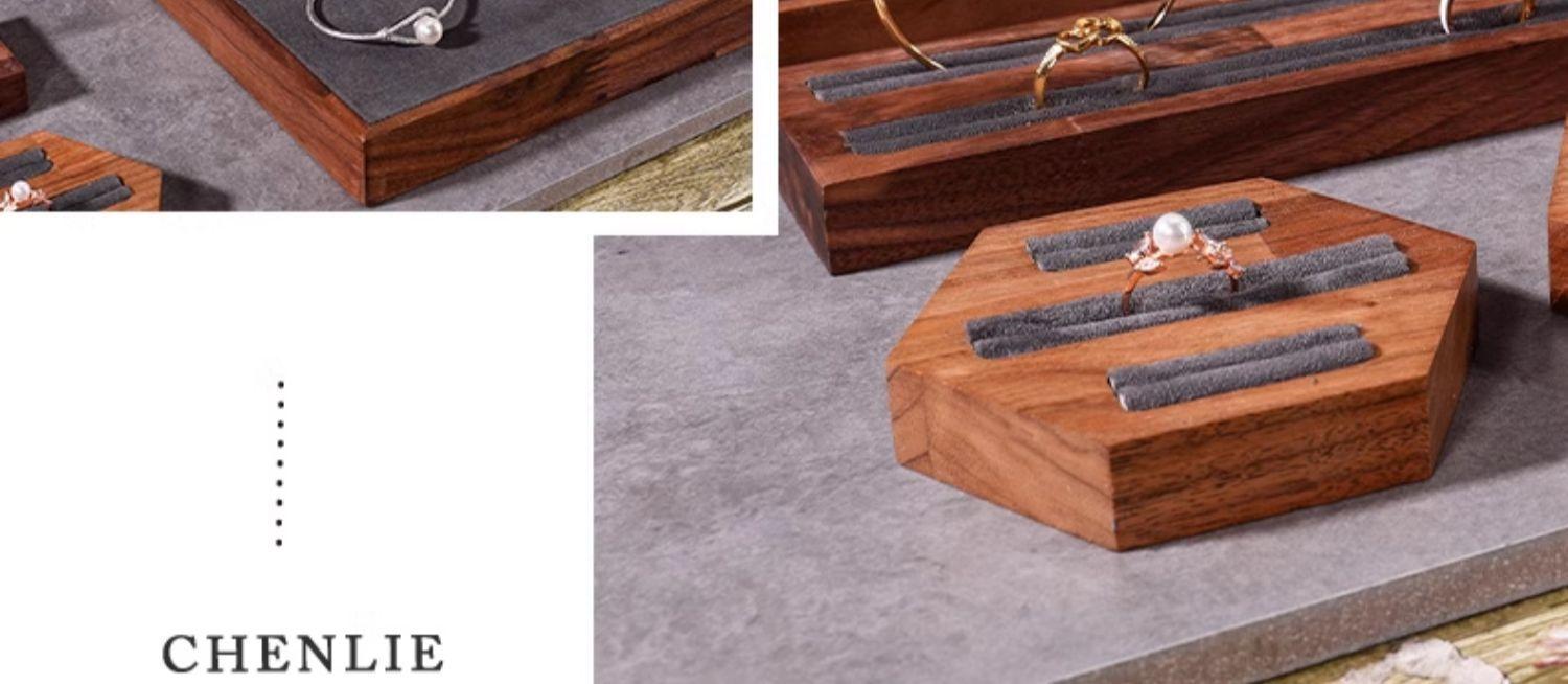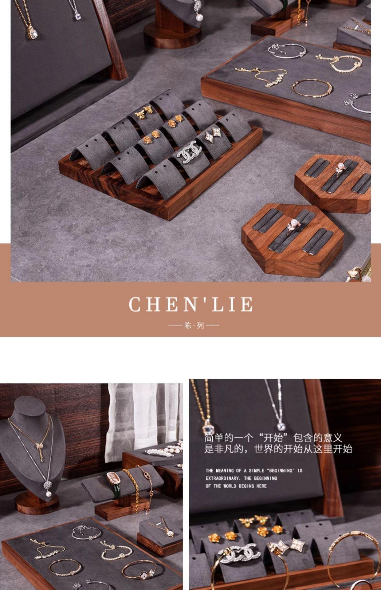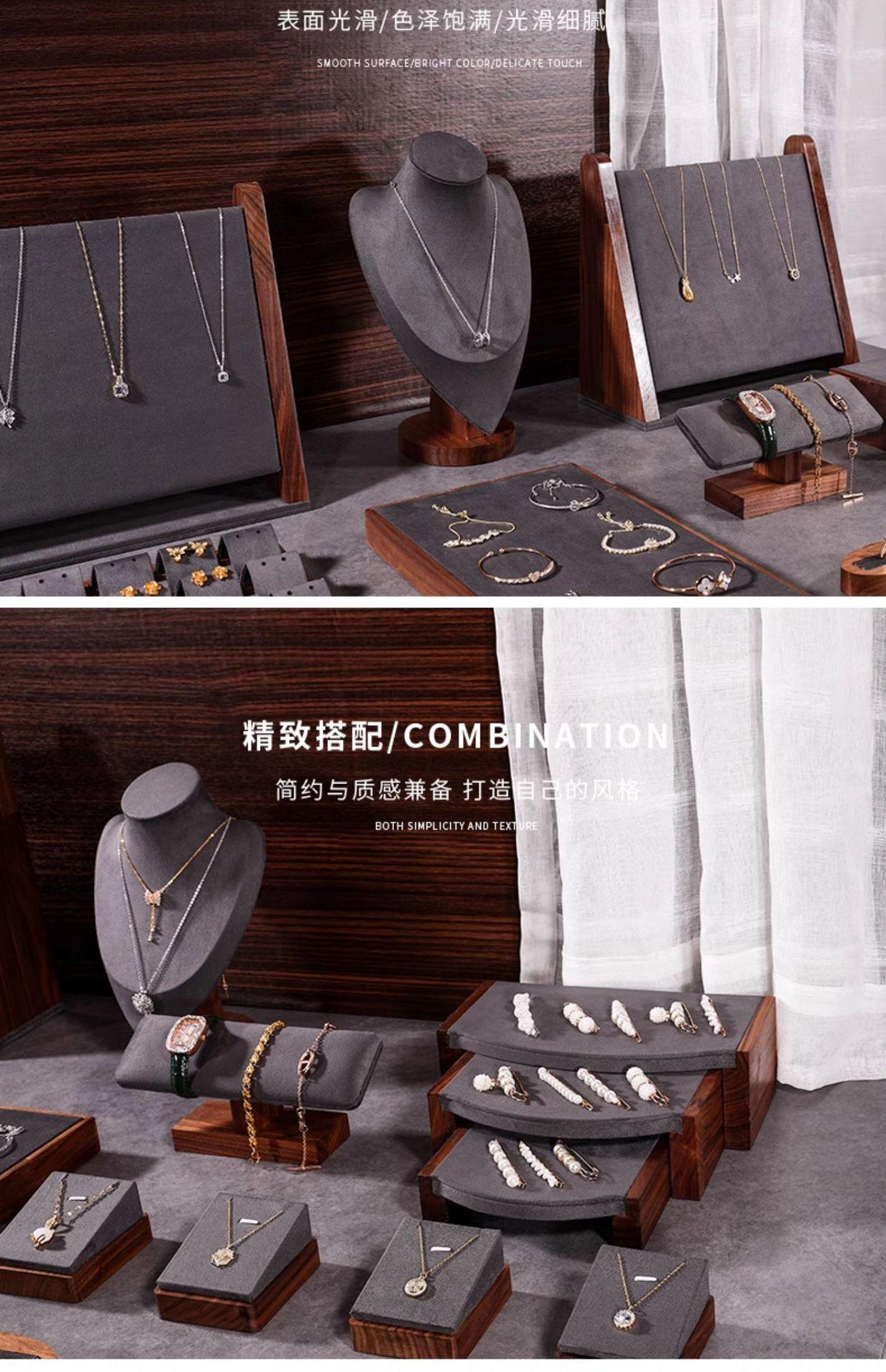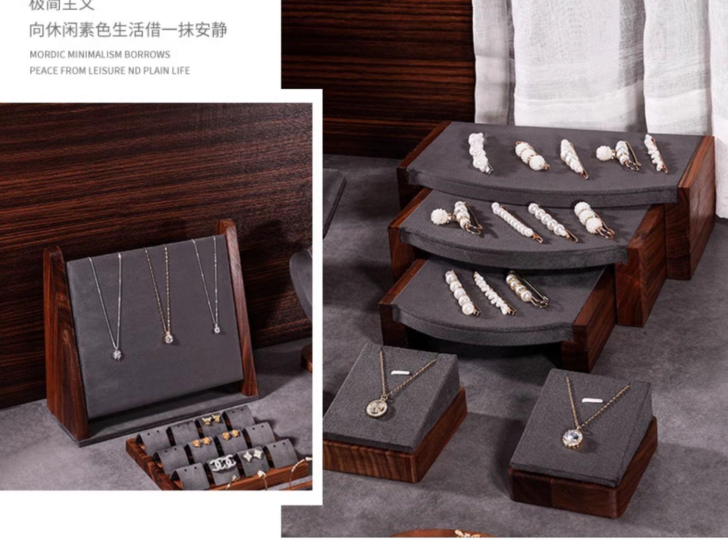 Walnut single bracelet stand dark gray, Walnut beveled necklace stand dark gray, Walnut small model dark gray,...
