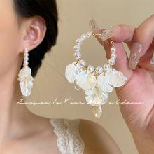 Pendientes de jardín flotantes con diseño de hada francesa retro con borlas de pétalos de perla, ligeros, de lujo y de alta gama.