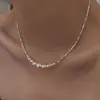 Collar de Perlas Redondas Estilo Fiebre, Gargantilla de Perlas Empalmadas con Fragmentos de Plata, Cadena para Clavícula Tendencia de Lujo Ligero Vintage