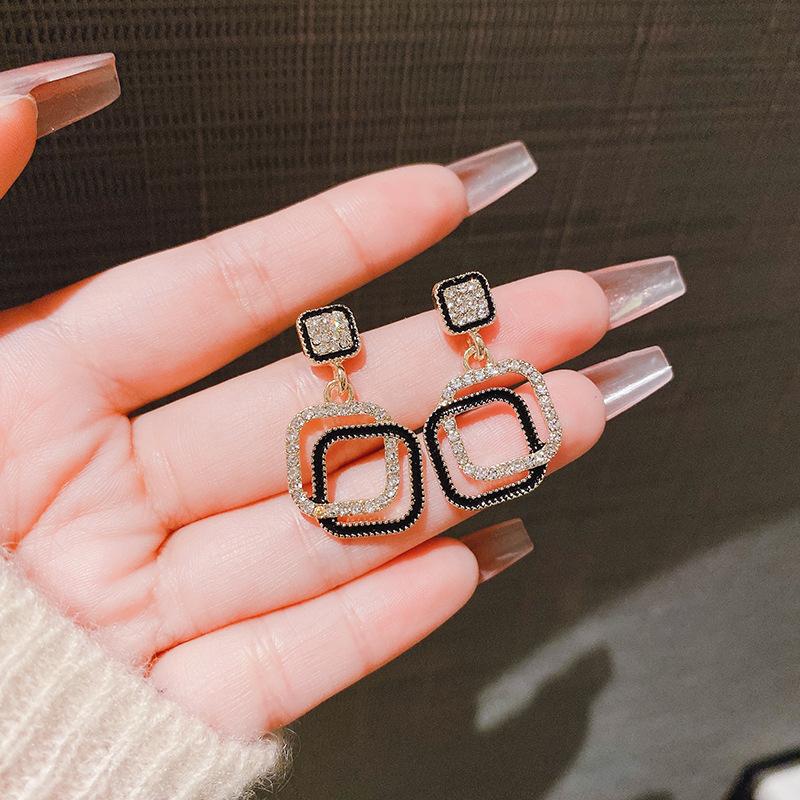 Pendientes de plata S925 con forma de caja geométrica y diamantes para mujer, 2024, nuevos y modernos, de alta gama, ligeros y lujosos, con diseño de nicho.
