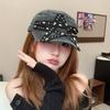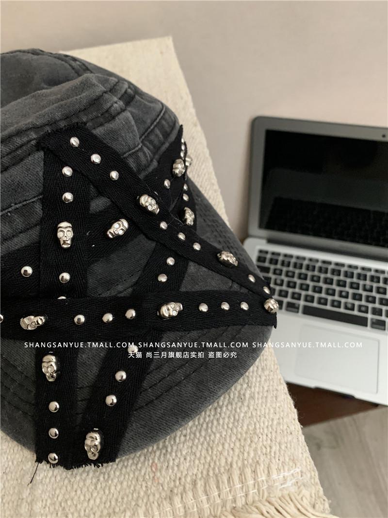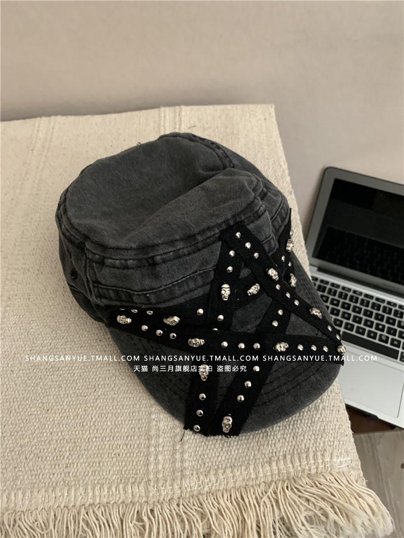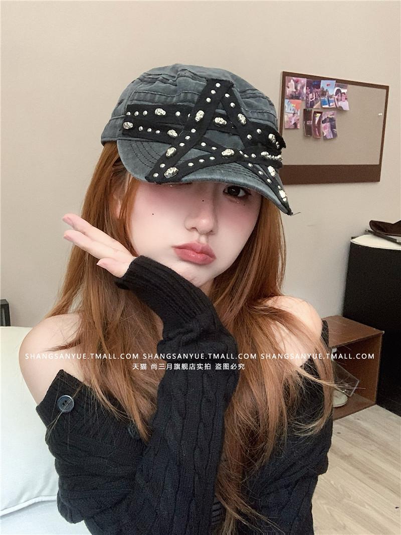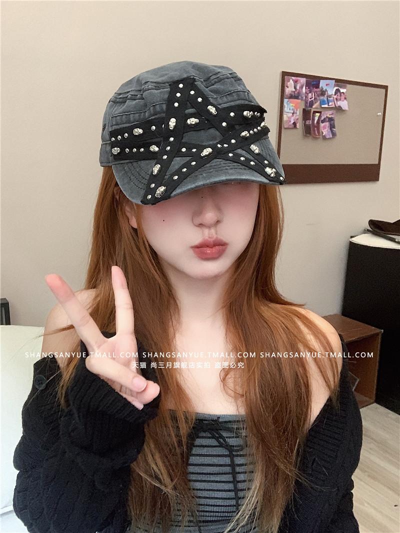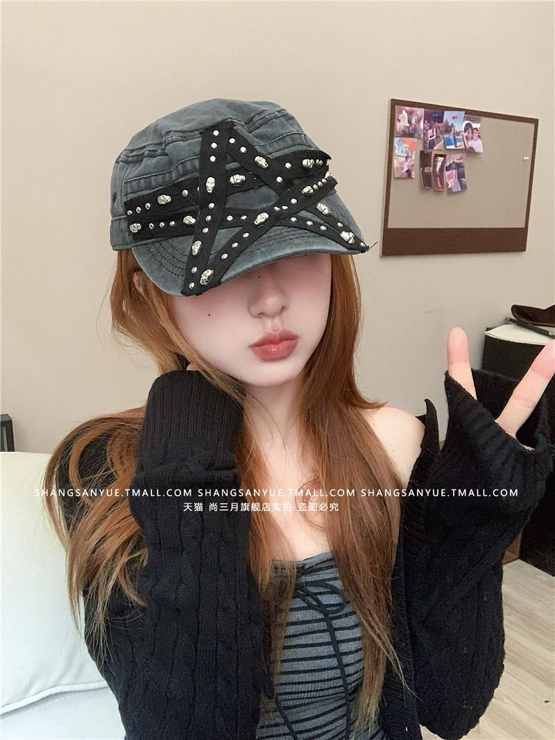 Circunferencia de Cabeza Grande Original Hecho en Casa Gorra Hacia Atrás Otoño para Mujer Que Afina el Rostro Pequeña Subcultura Estrella Vaquero Sombrero Octogonal Sombrero de Sol