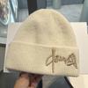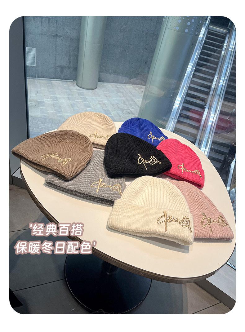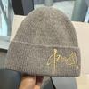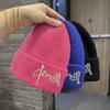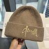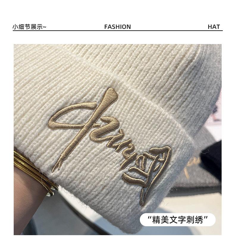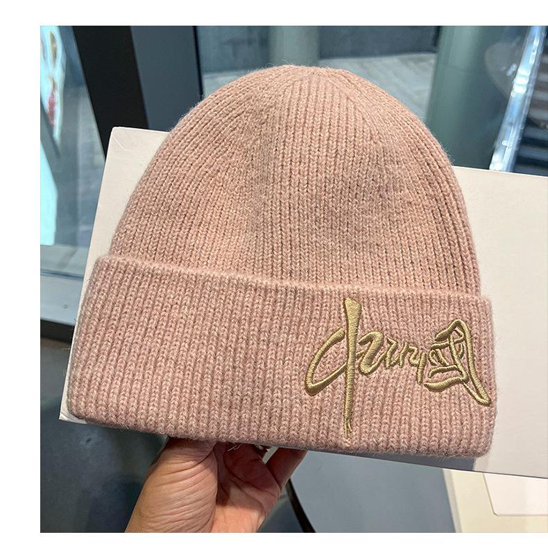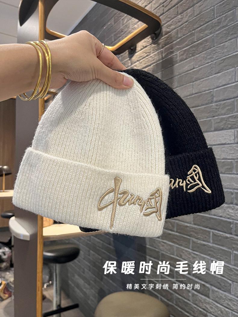 Gorro de Lana para Mujer Nuevo Otoño e Invierno Moda Nacional Bordado Caracteres Chinos Cálido Jersey Gorro Frío para Hombre Personalidad Combinación Versátil Gorro Tejido