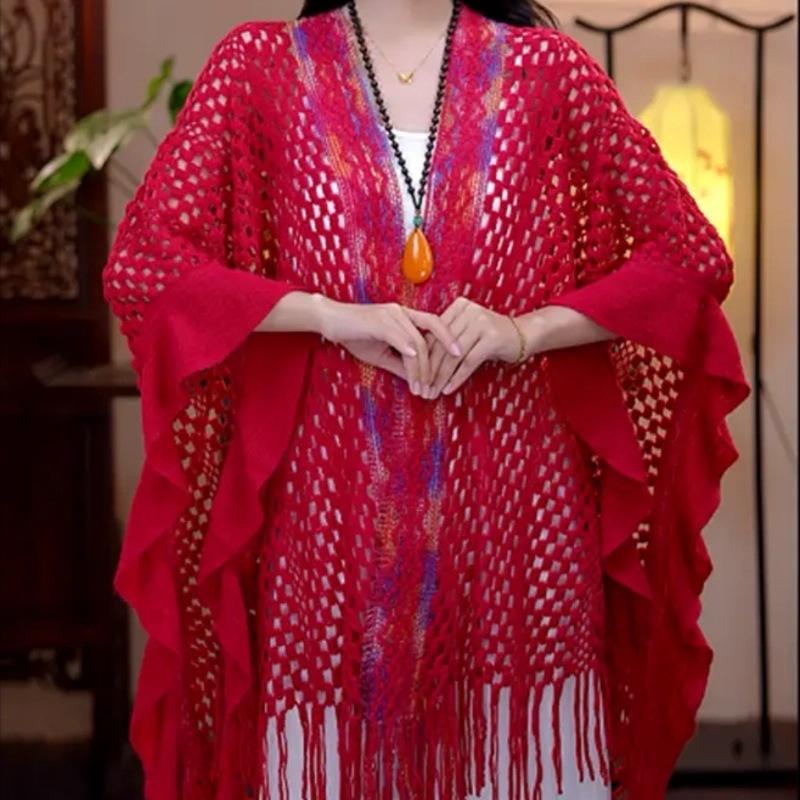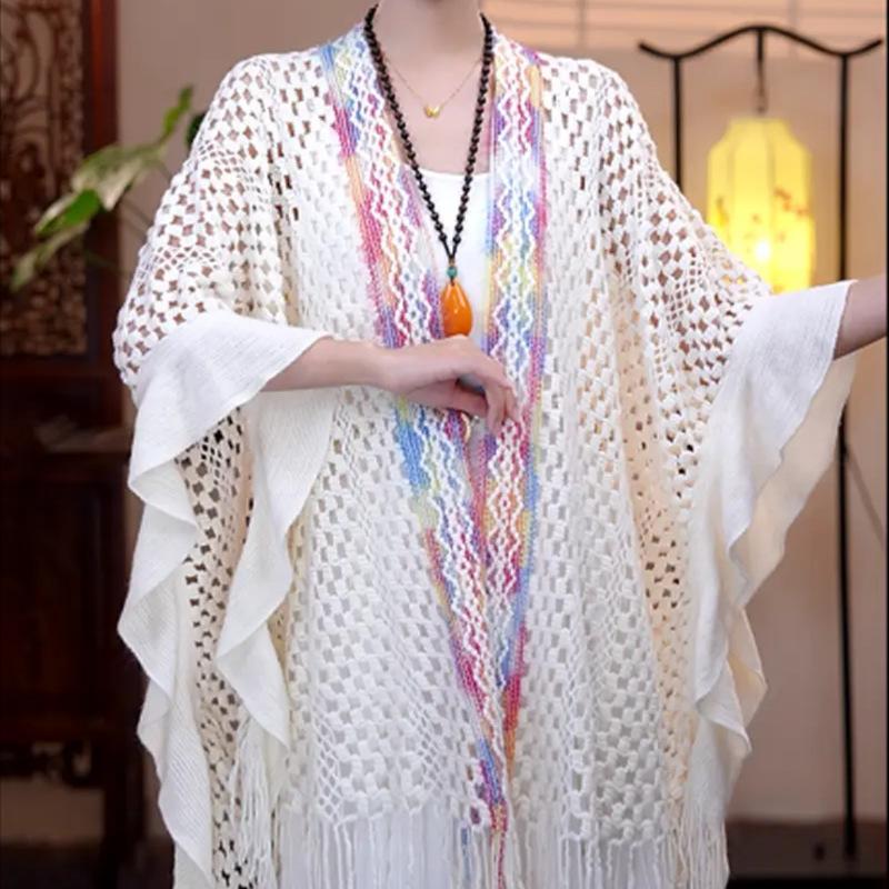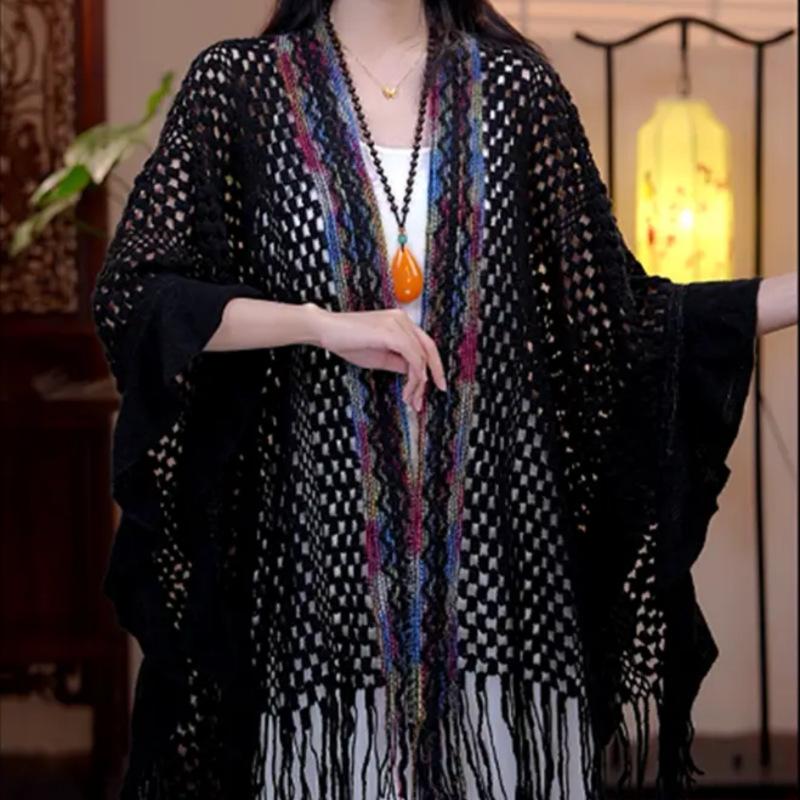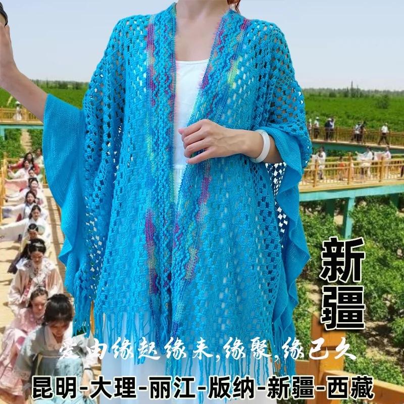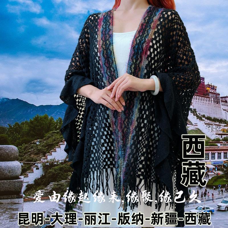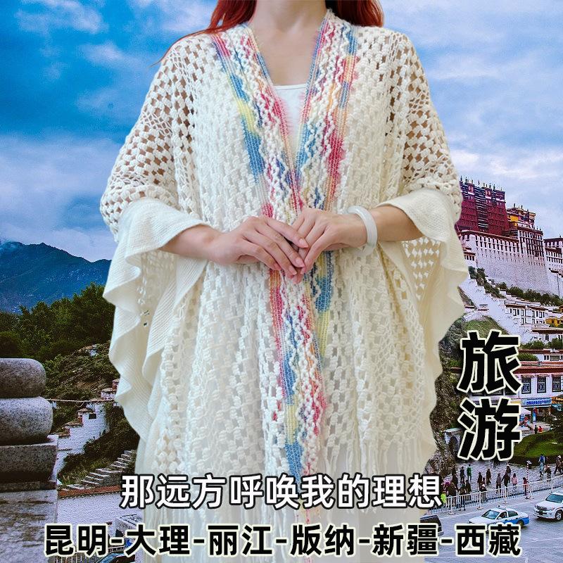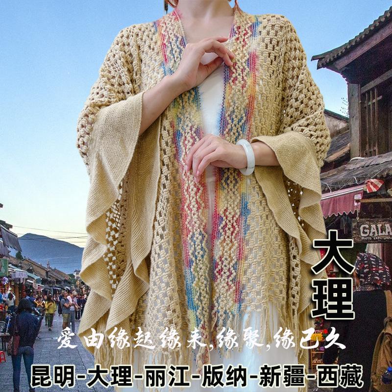 Nuevo cárdigan de viaje de punto étnico calado Yunnan Lijiang, chal fotográfico de viaje con borlas que combina con todo para mujer
