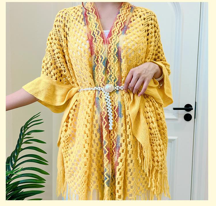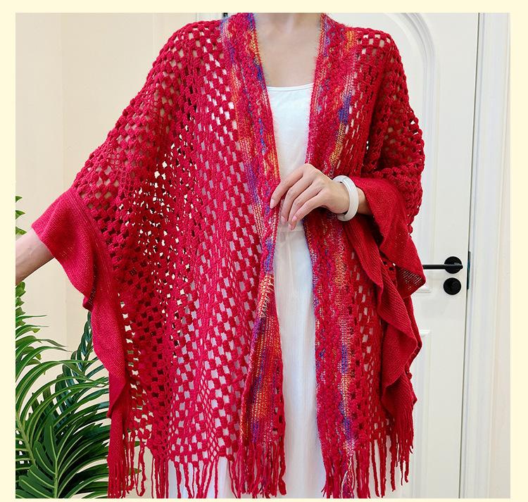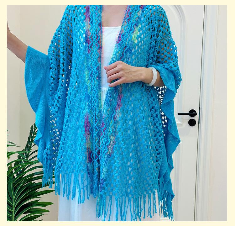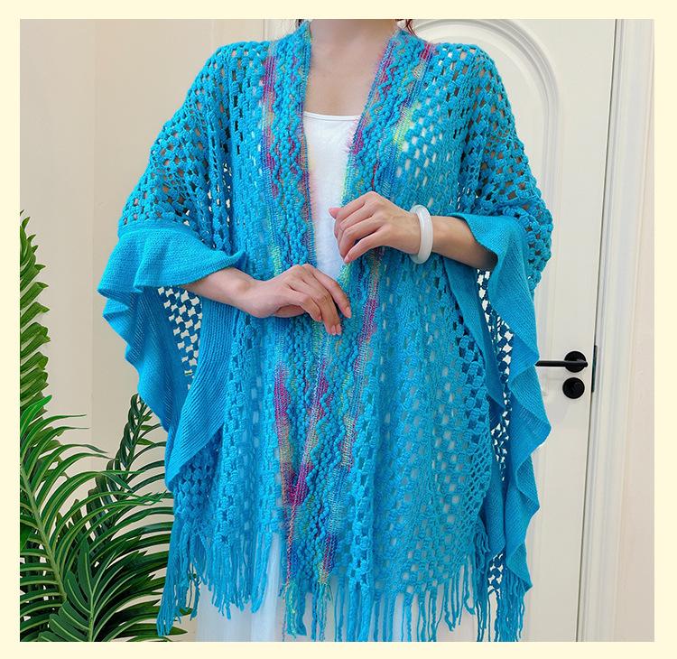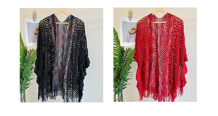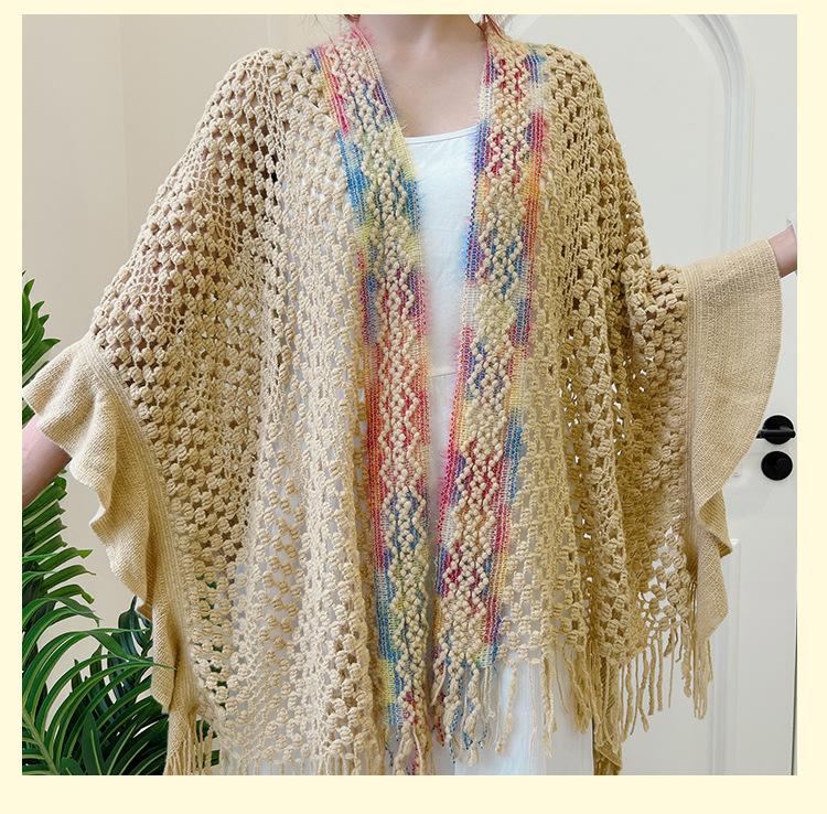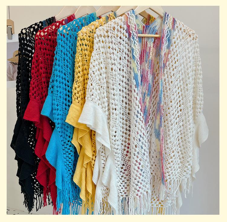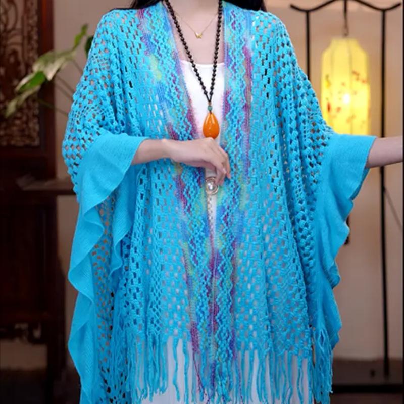 Nuevo cárdigan de viaje de punto étnico calado Yunnan Lijiang, chal fotográfico de viaje con borlas que combina con todo para mujer