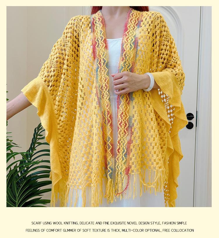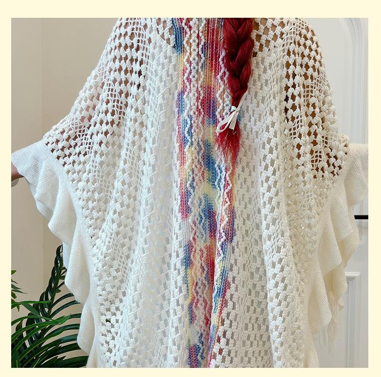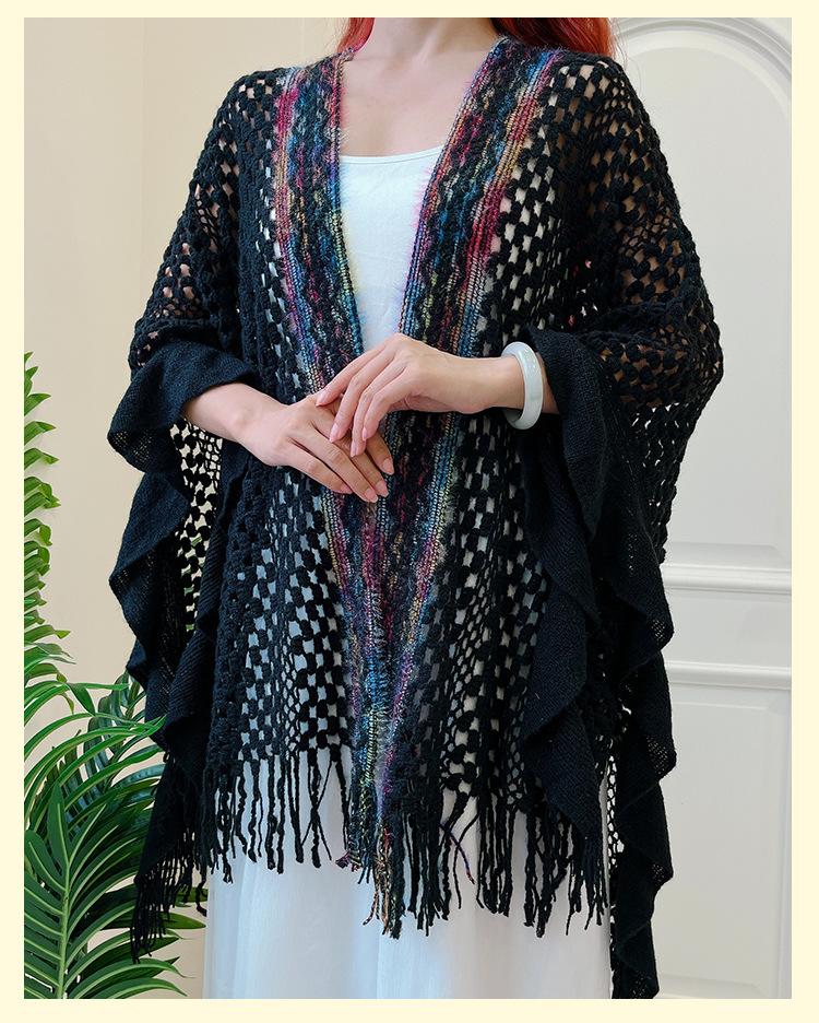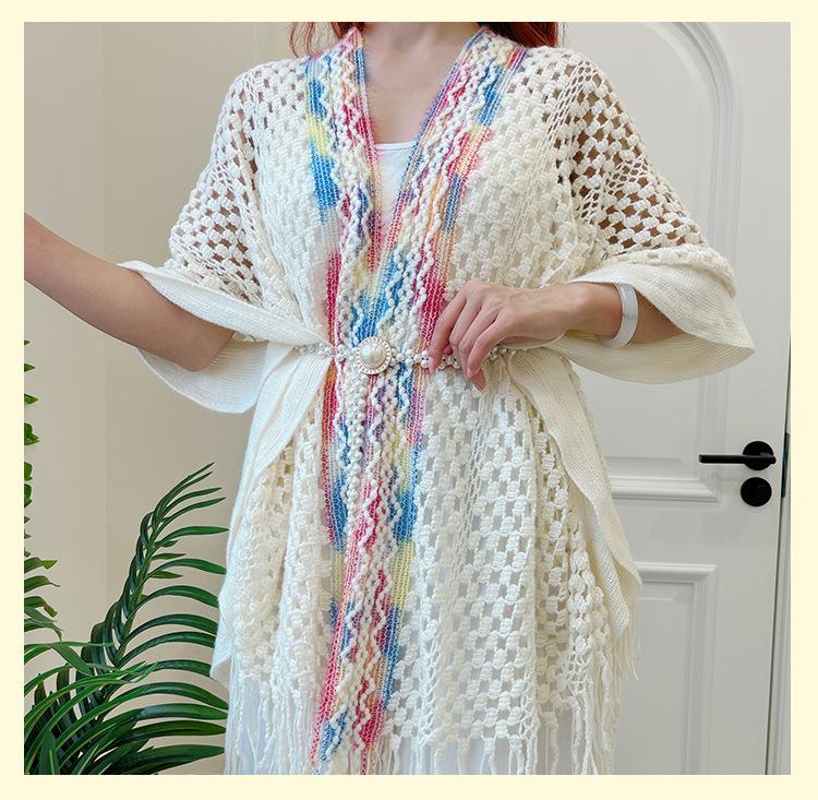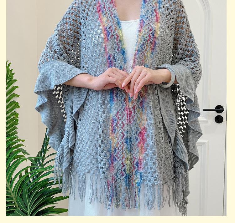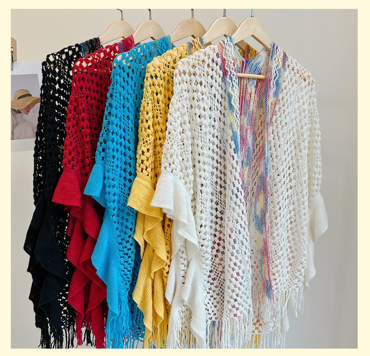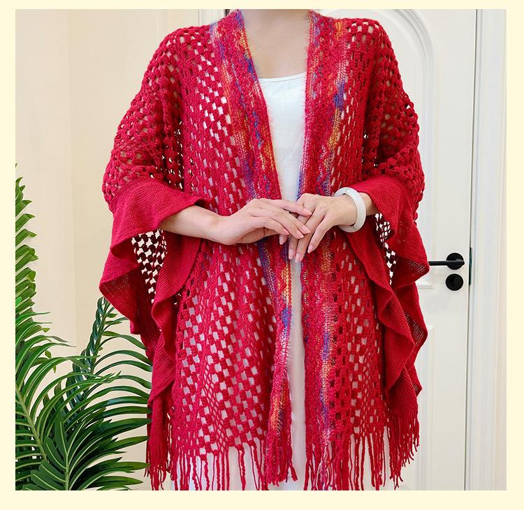 Nuevo cárdigan de viaje de punto étnico calado Yunnan Lijiang, chal fotográfico de viaje con borlas que combina con todo para mujer