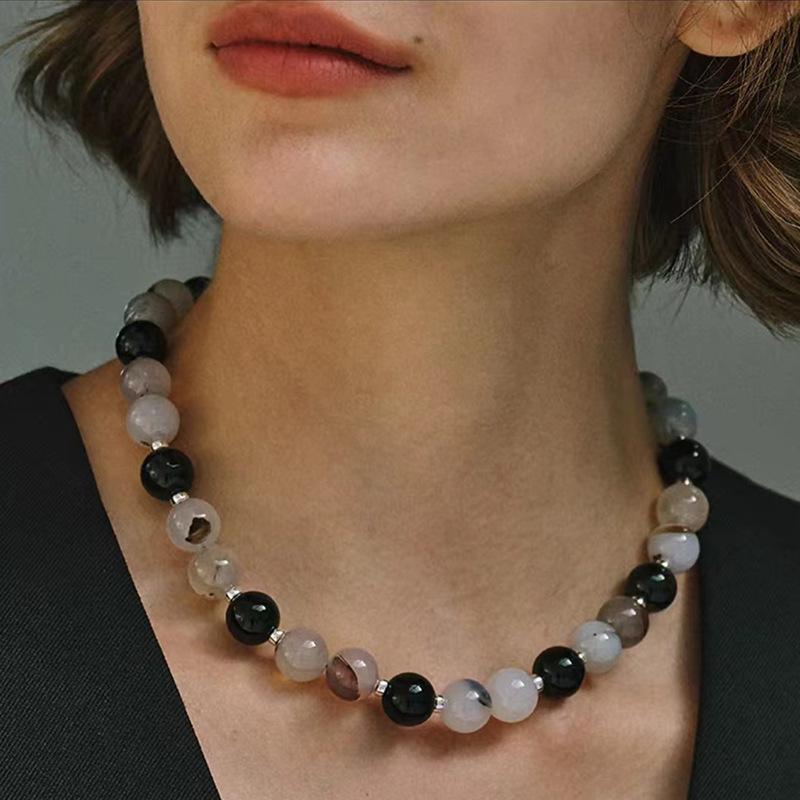 Collar de Cuentas de Gemas de Color para Mujer Collar de Lujo Ligero de Alta Gama Cadena de Clavícula Francesa Simple Elegante Sentido de Diseño de Nicho