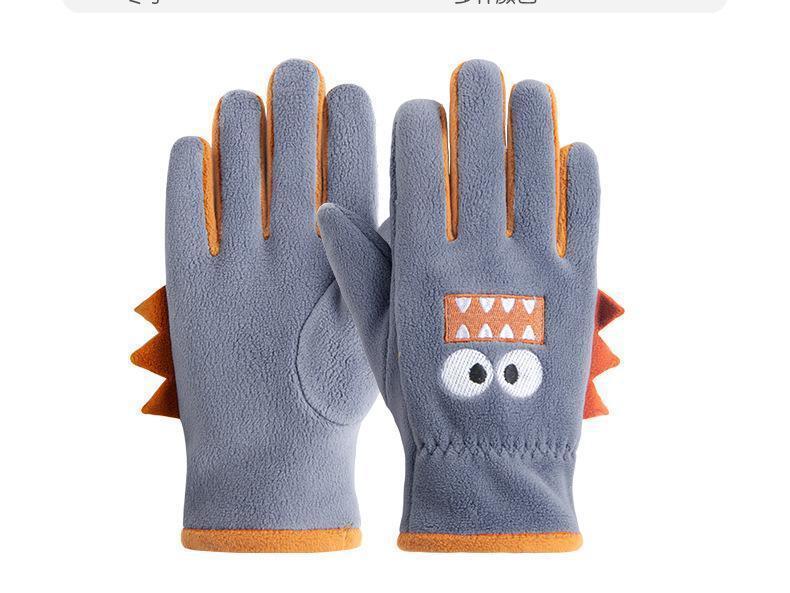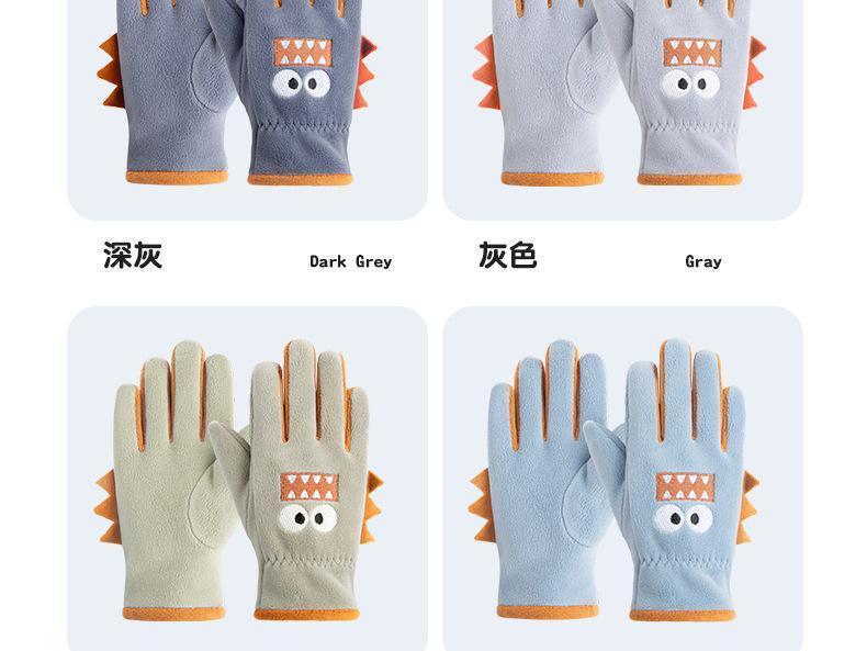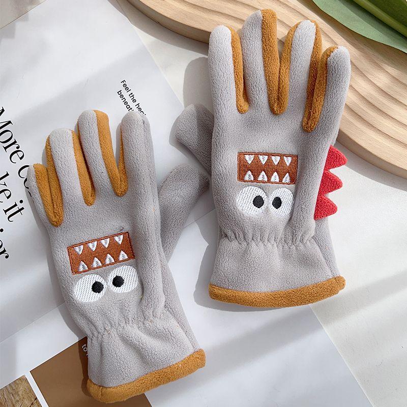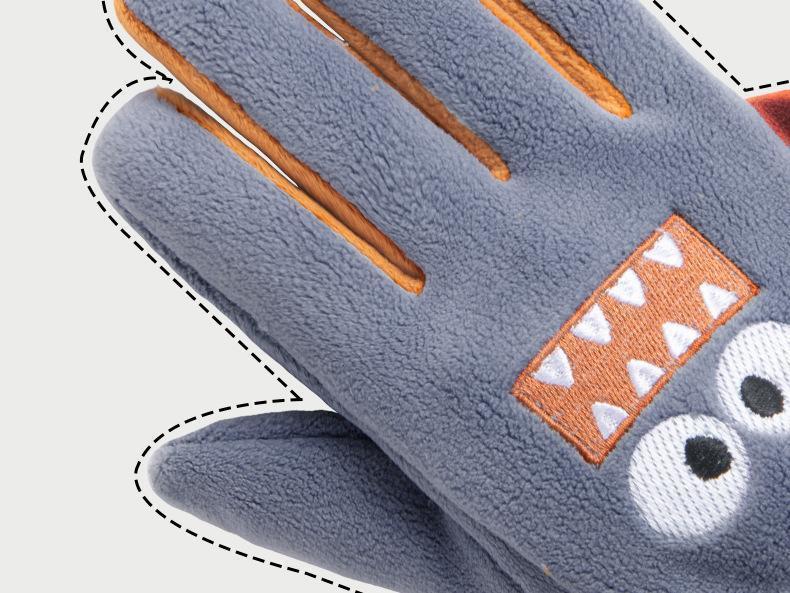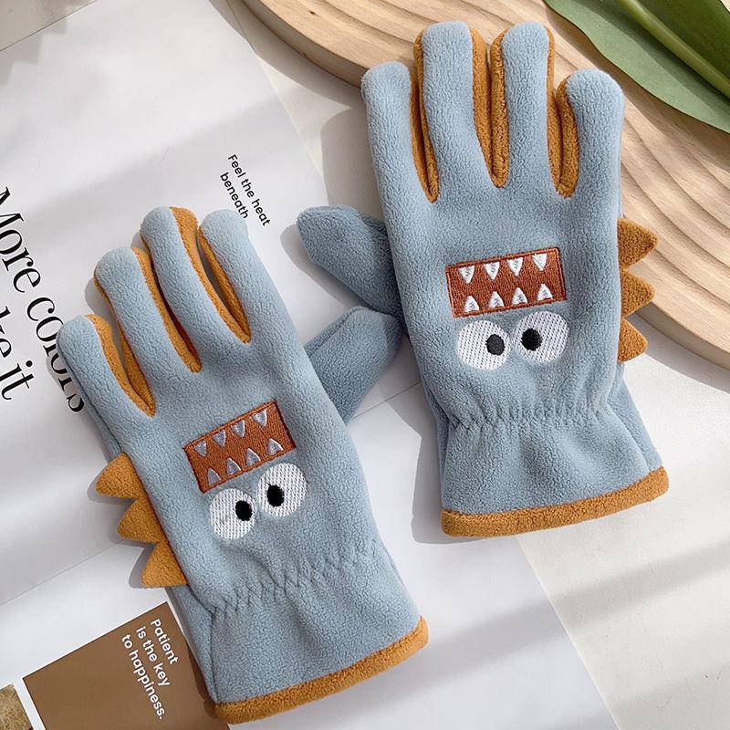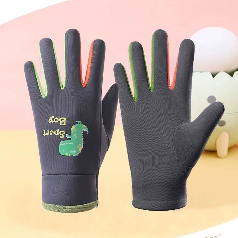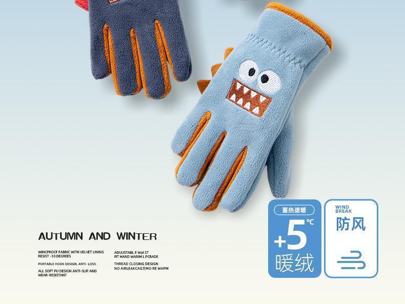 Guantes cálidos de invierno para niños, de cinco dedos, forrados con vellón, resistentes al frío y al viento, con bonitos dibujos animados para estudiantes, para montar al aire libre y nieve.