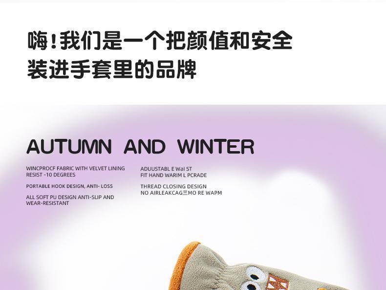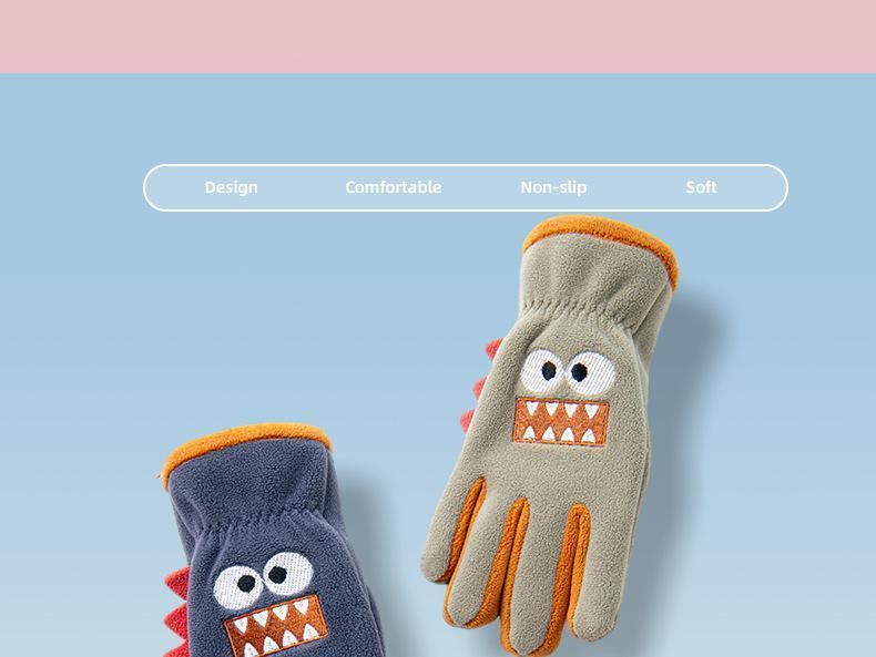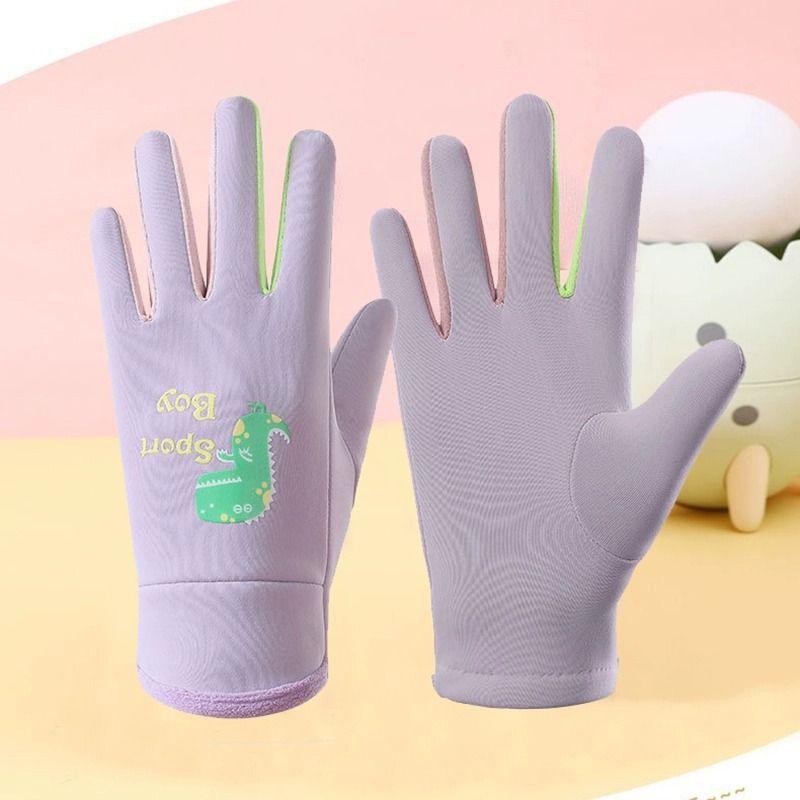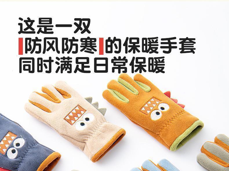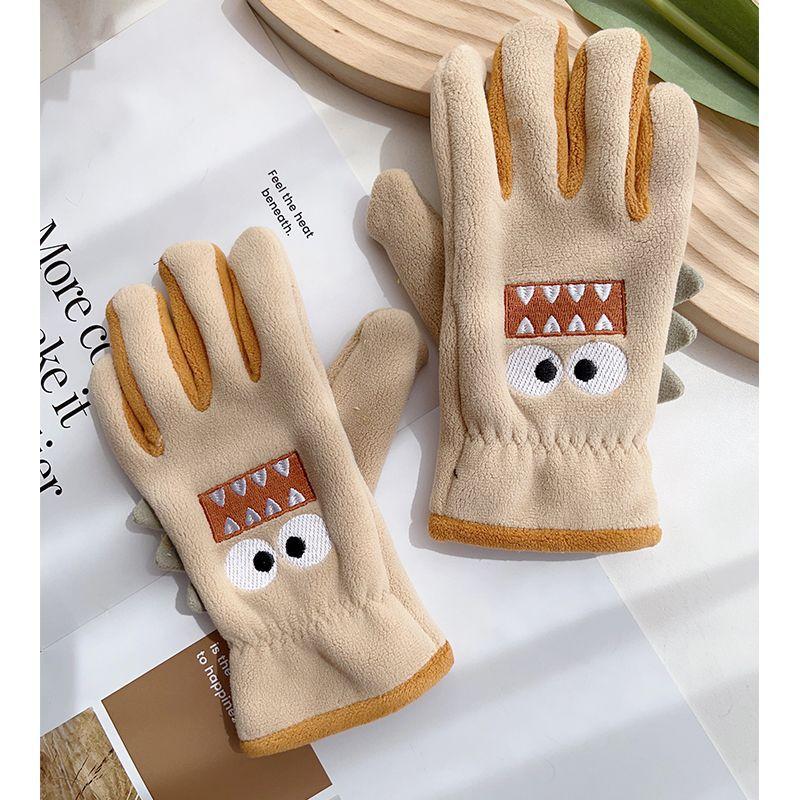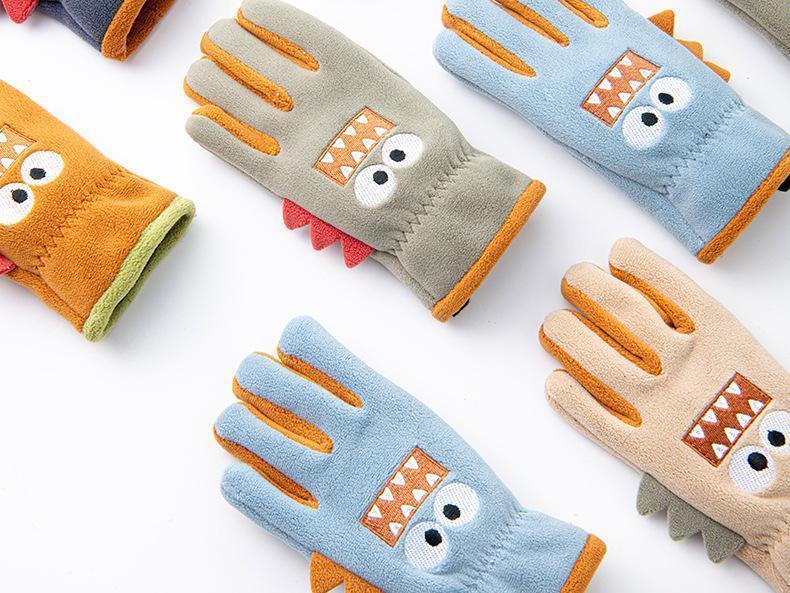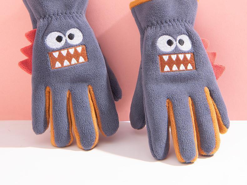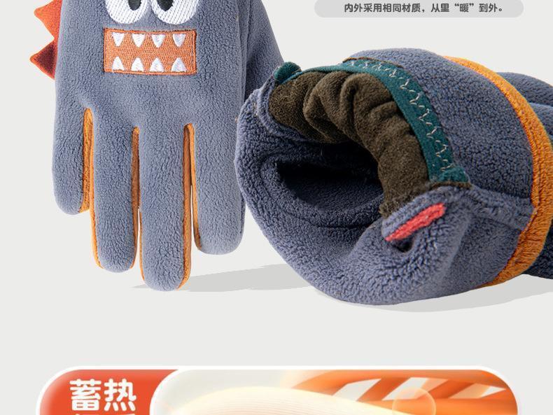 Guantes cálidos de invierno para niños, de cinco dedos, forrados con vellón, resistentes al frío y al viento, con bonitos dibujos animados para estudiantes, para montar al aire libre y nieve.