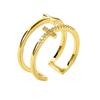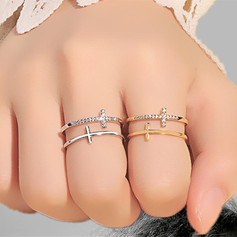 Anillo Cruz Doble Capa con Incrustaciones de Diamantes de Moda Europea y Americana para Mujer, Estilo Coreano Distintivo y Moderno, Esmaltado Abierto