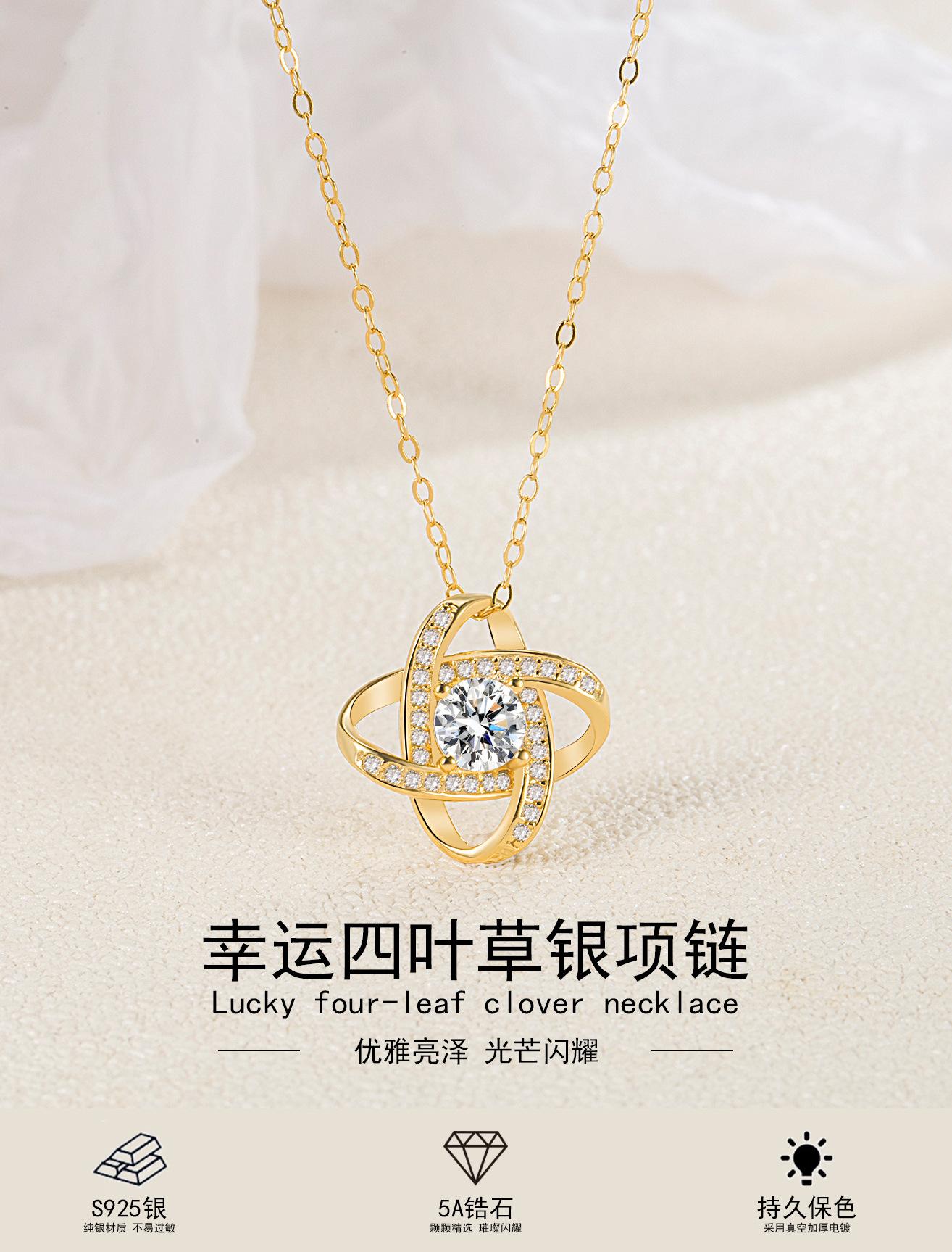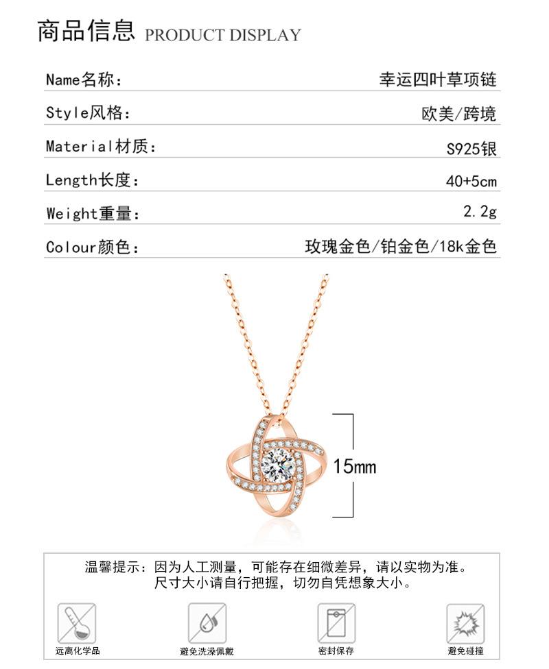 Collar de plata esterlina S925 trébol de cuatro hojas de la suerte mujer exportación Amazon oro de 18K venta caliente clavícula circón colgante ins