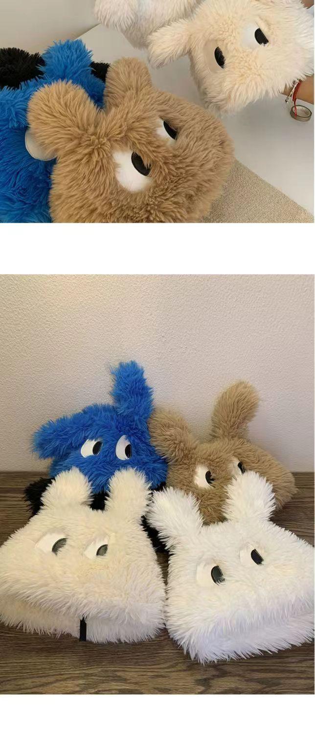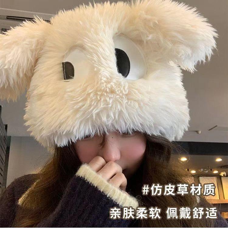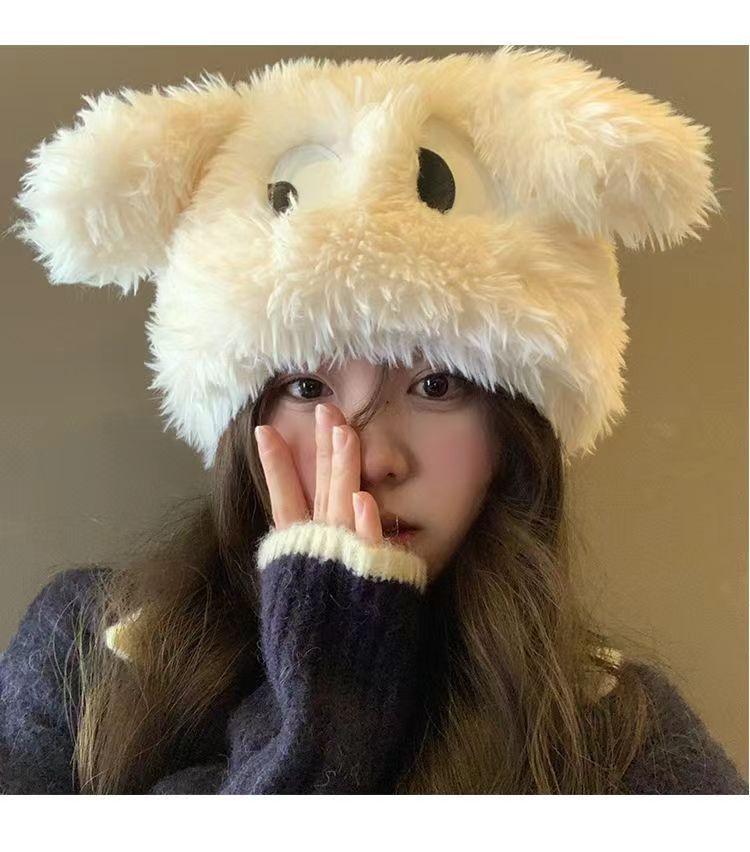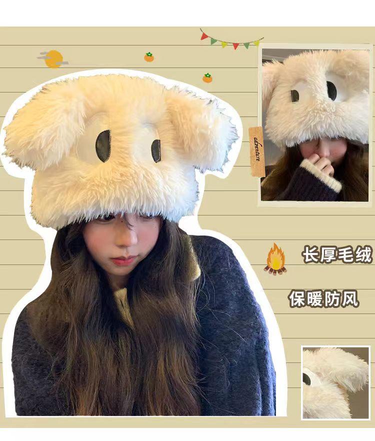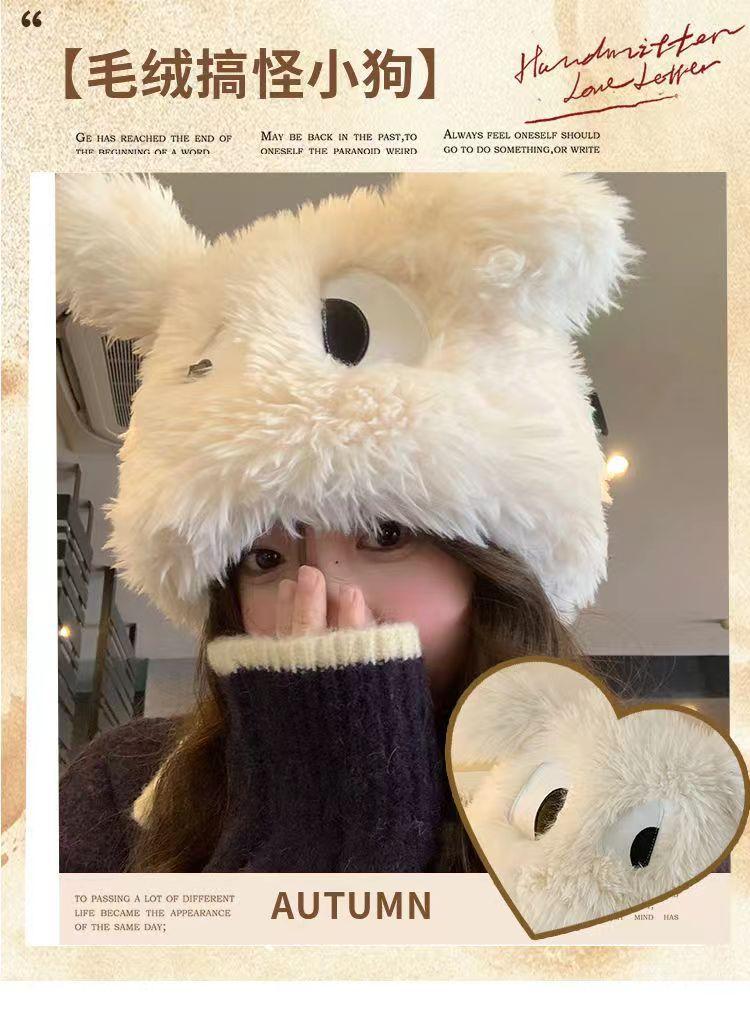 Otoño e Invierno Gorro de Cachorro Esponjoso para Mujer Cálido Engrosado Lindo Gorro con Protección para las Orejas Dibujos Animados de Ojos Grandes Gorro Lei Feng Transfronterizo