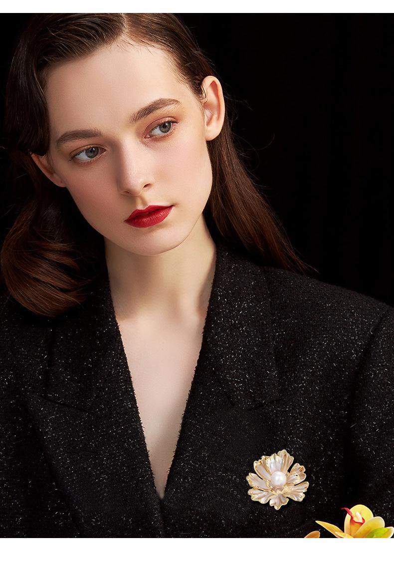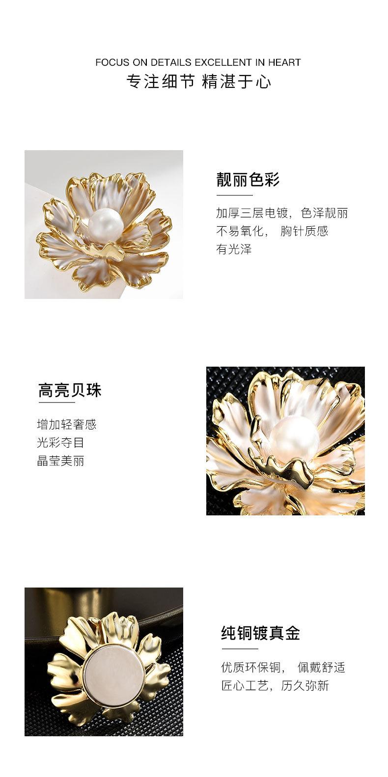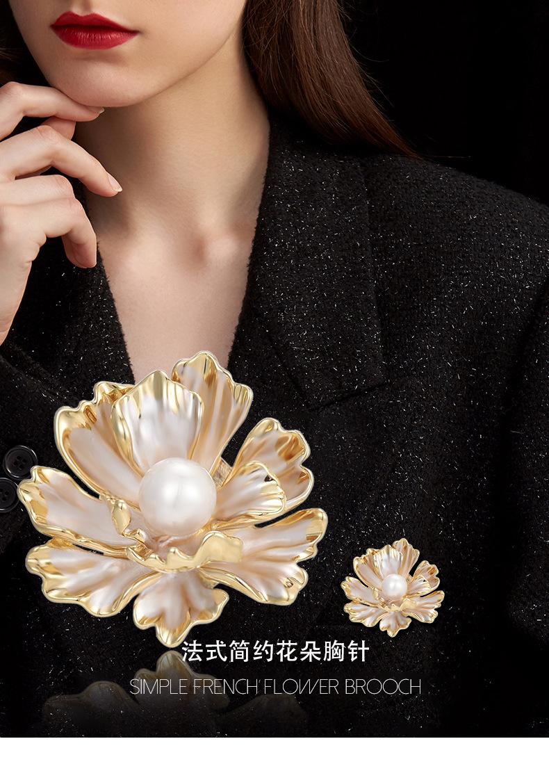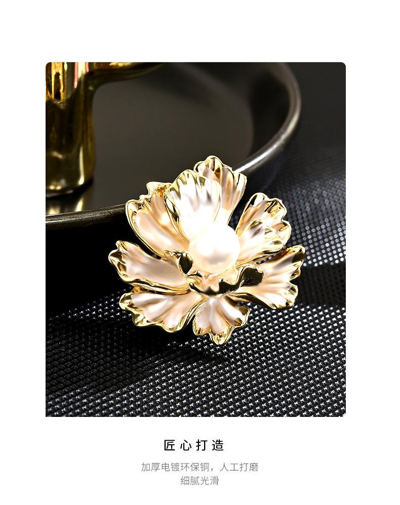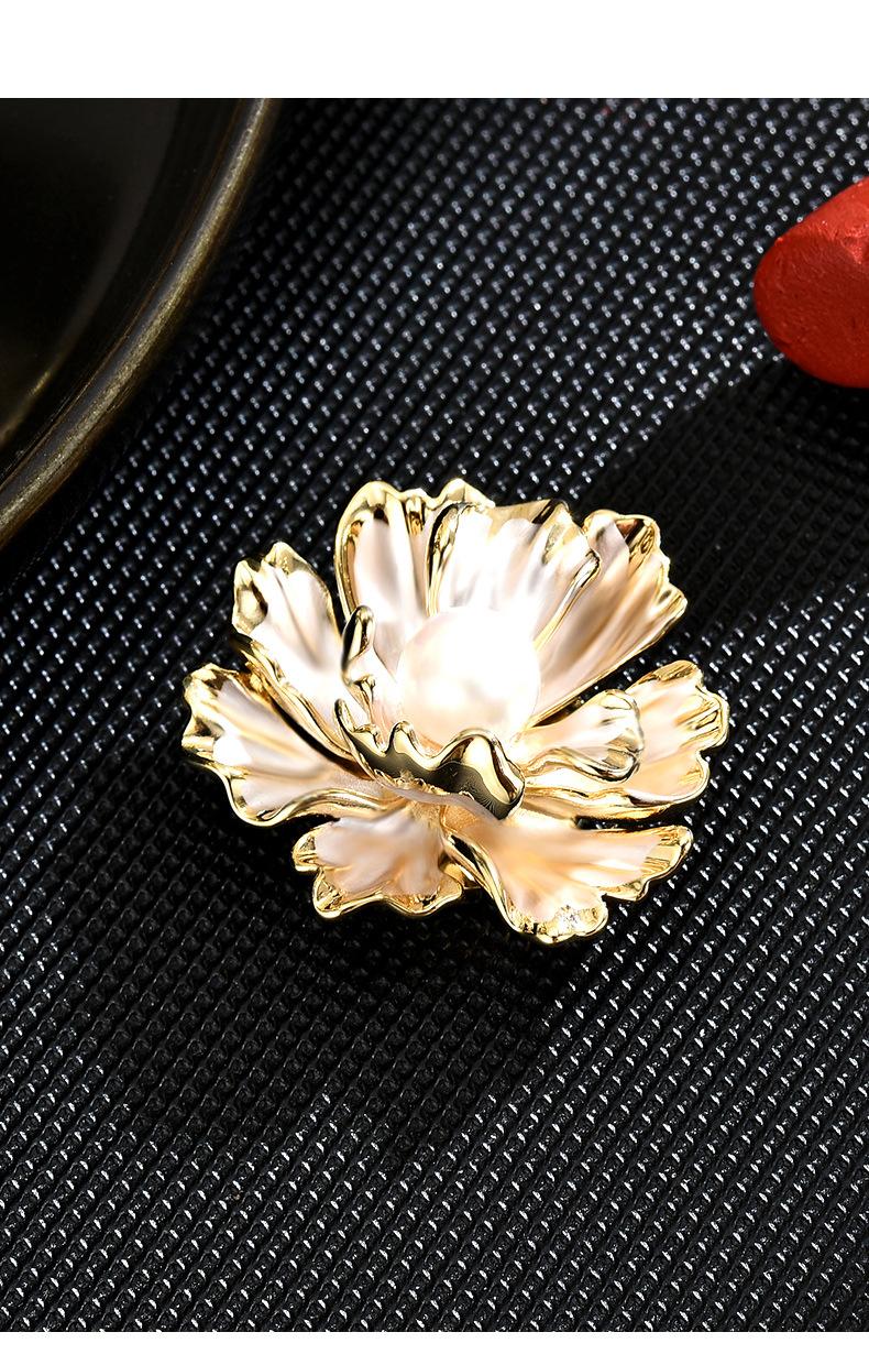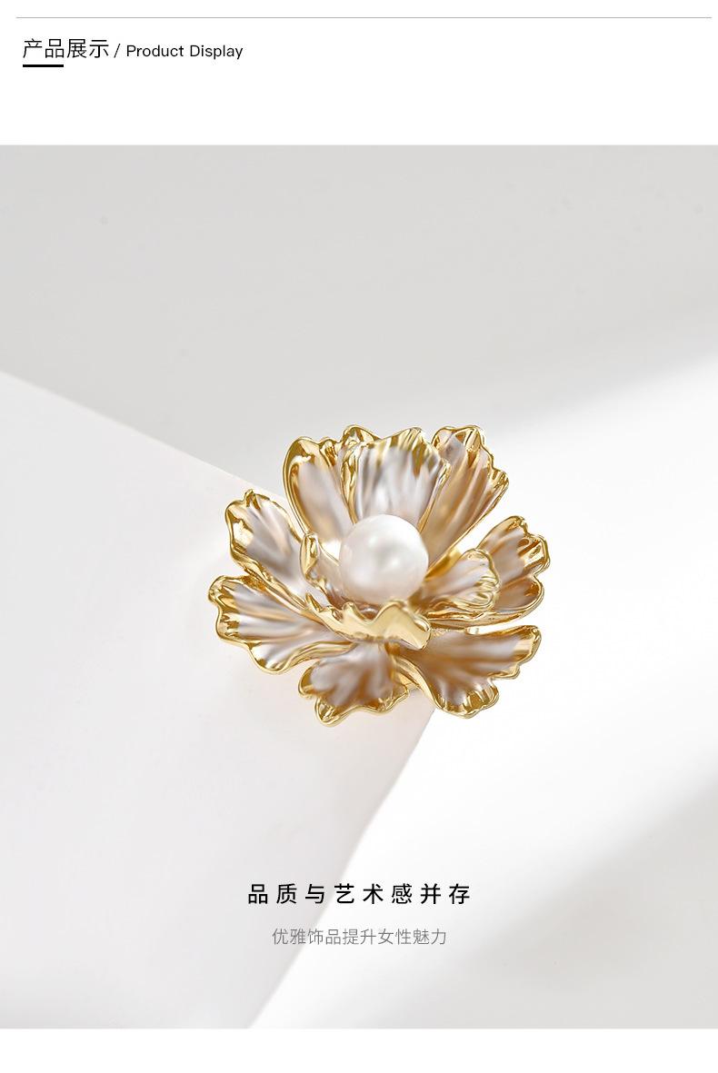 Broche Pequeño de Hebilla Magnética de Flor de Peonía de Perla Simple Fresca Estilo Francés para Mujer Exquisito Elegante Combinable Ramillete para Vestido