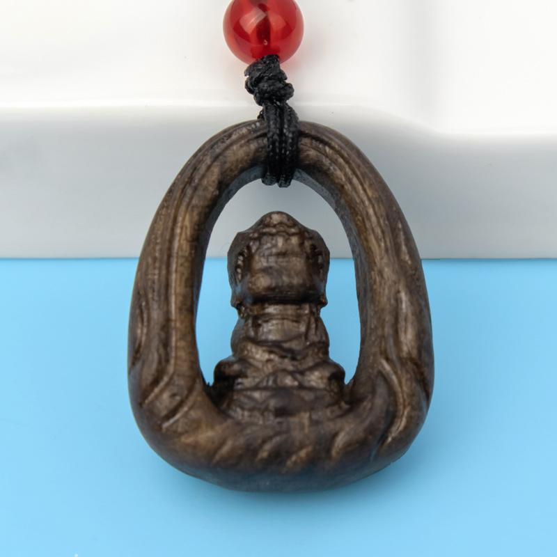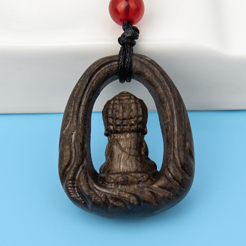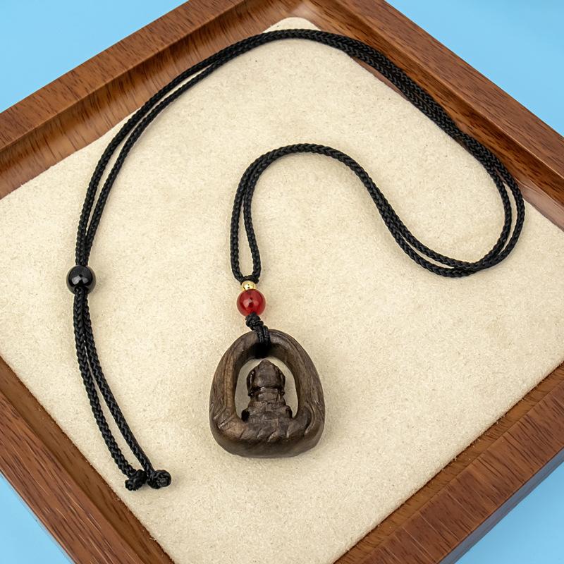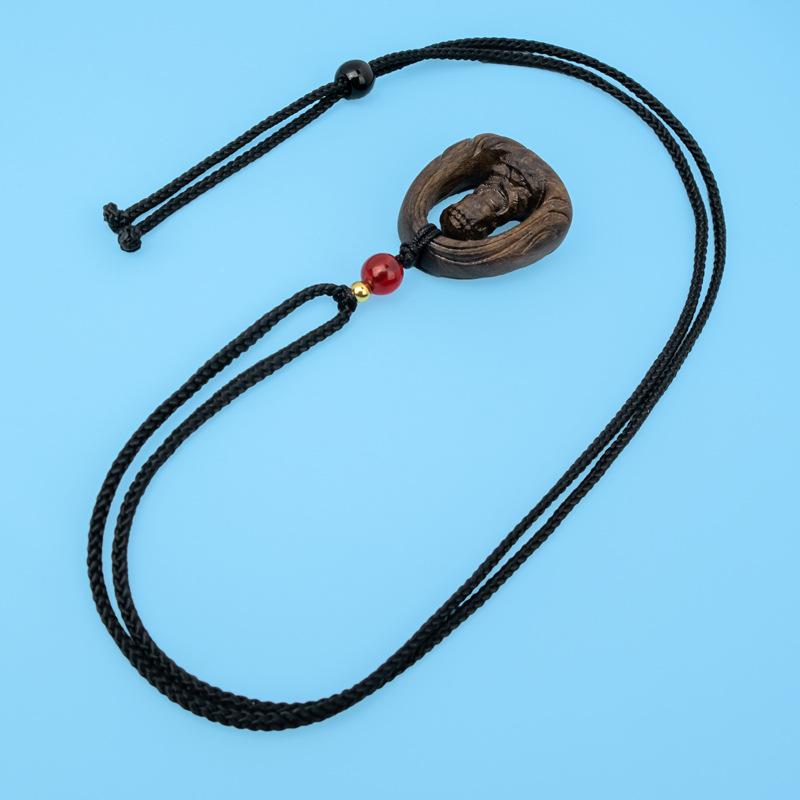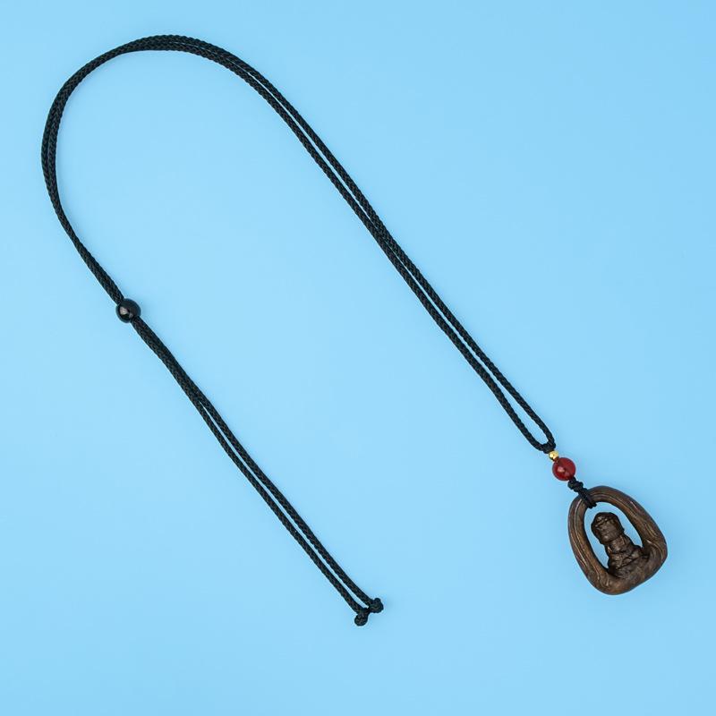 Colgante de Buda de madera de agar sin fase, colgante de madera para mujer, collar de juego con texto, cadena de clavícula, cadena de suéter tejida, suministro al por mayor