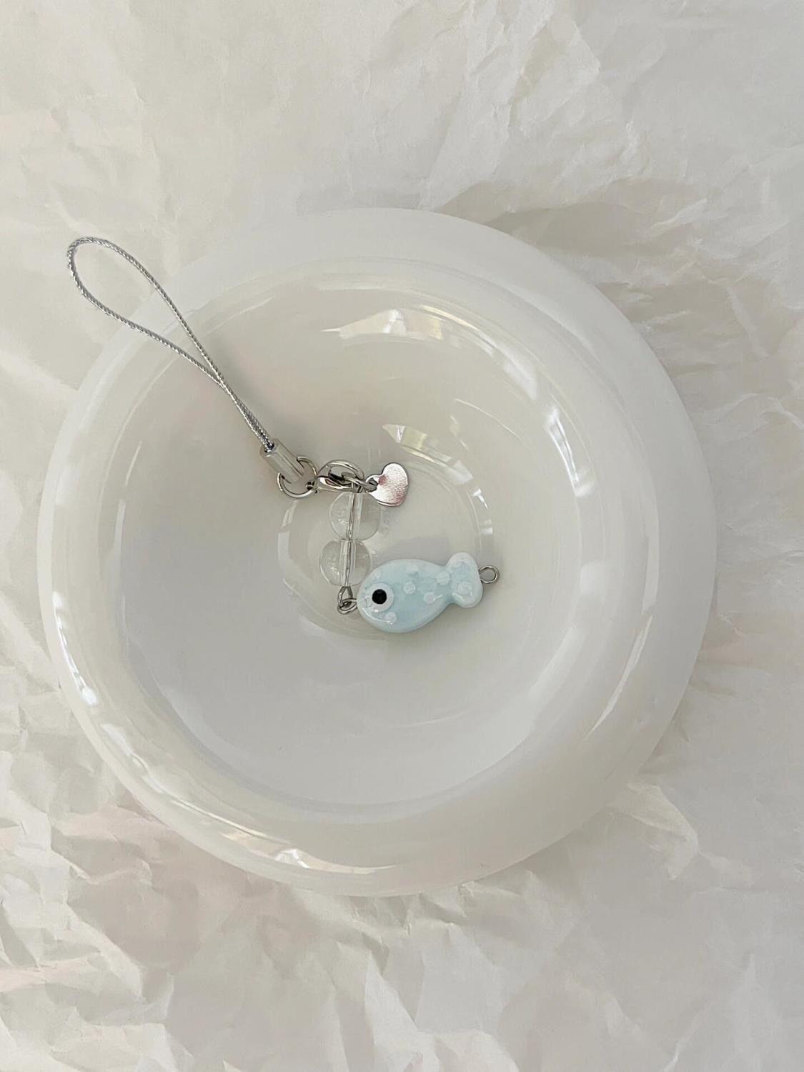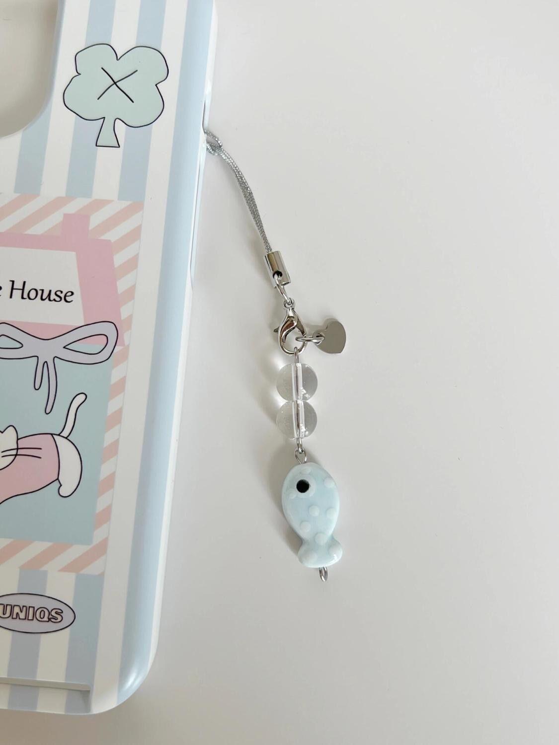 [Amor Pequeño Pez Burbuja] Cadena para Teléfono Móvil con Cuentas Hecha a Mano Corazón de Niña Estilo Ins Cadena para Teléfono Colgante Cadena Goo-Ben